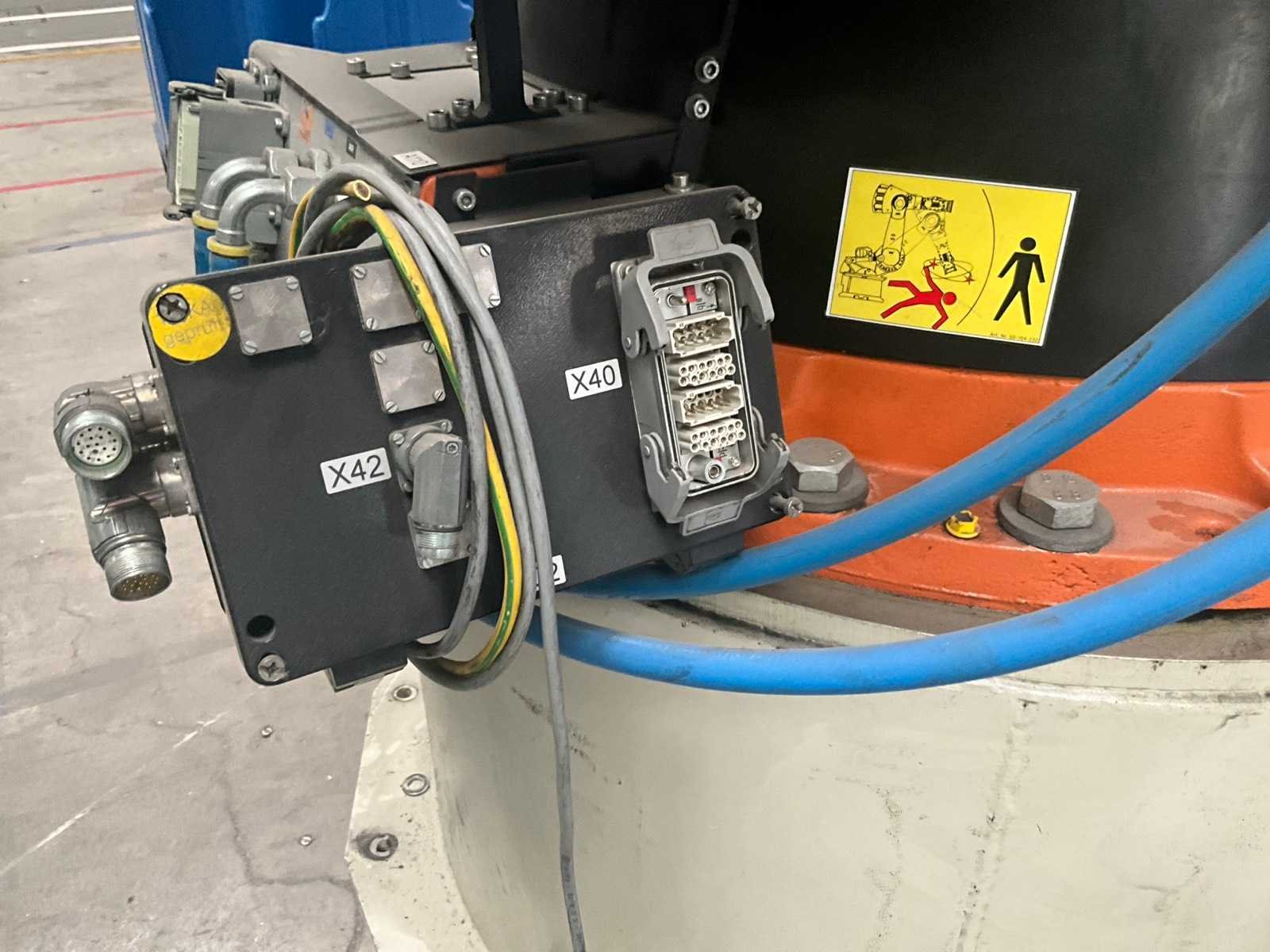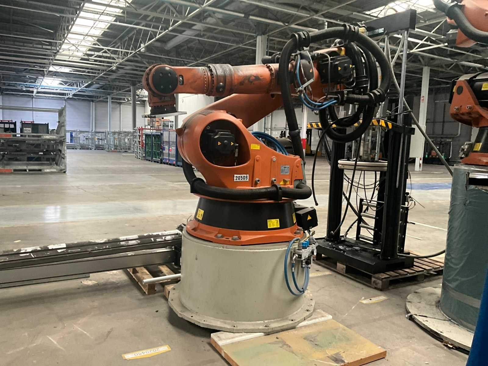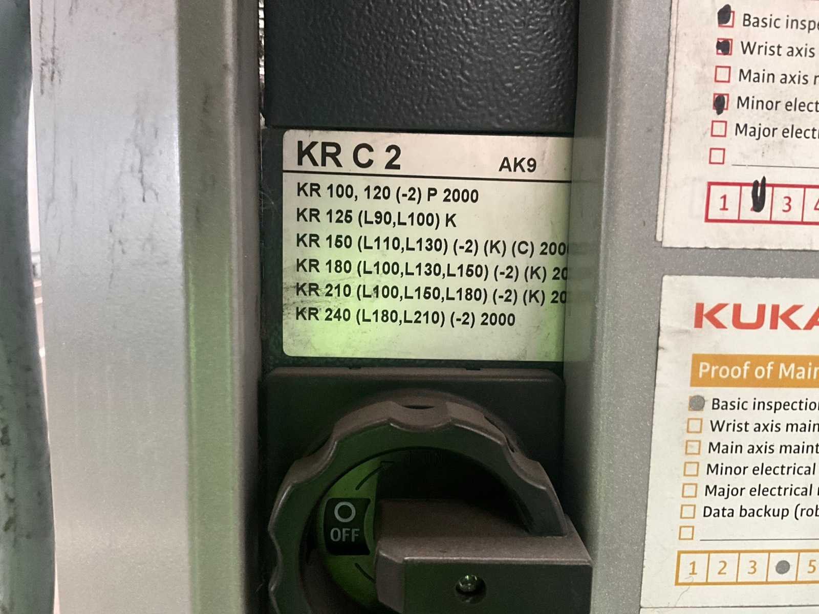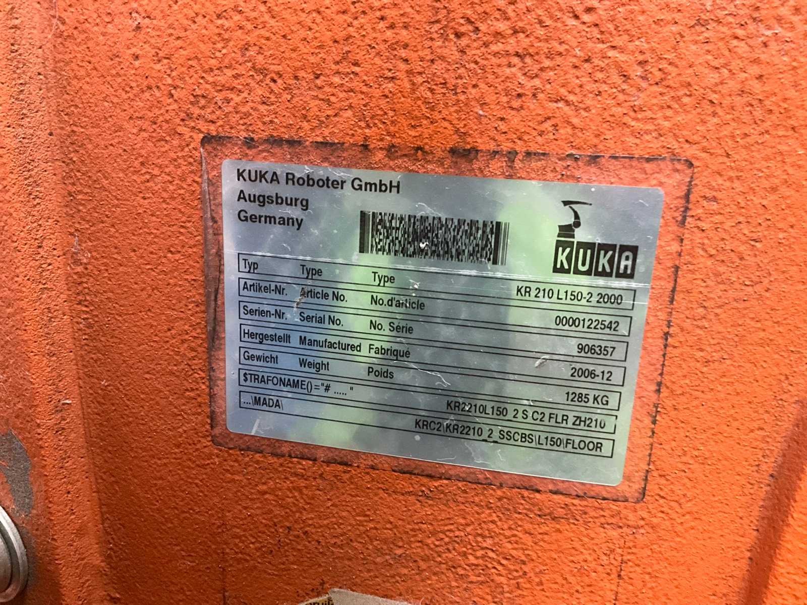 Model type KR210 L150-2 2000. Sturingskast KR C 2 AK9 en bekabeling. Op zwaar metalen onderstel van circa 61 cm hoog, met diameter 100 cm en voetblad 120 cm diameter, met aftakkingsmodule unit Festo. Nee Merk: KUKA Model: KR210 Bouwjaar: 2006 Gewicht: 1285000g Lengte: 205cm Breedte: 90cm Hoogte: 180cm