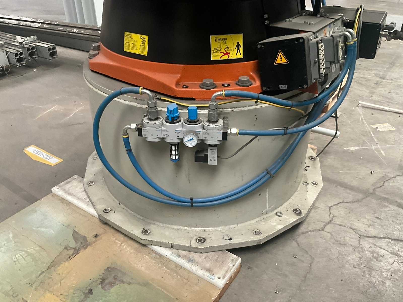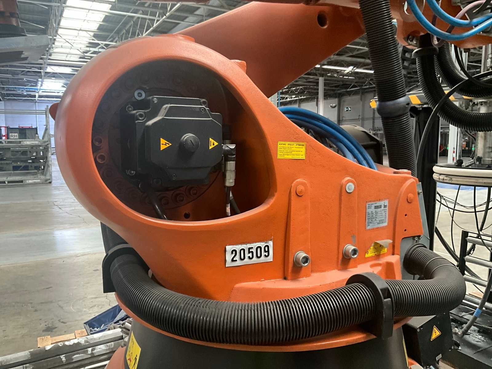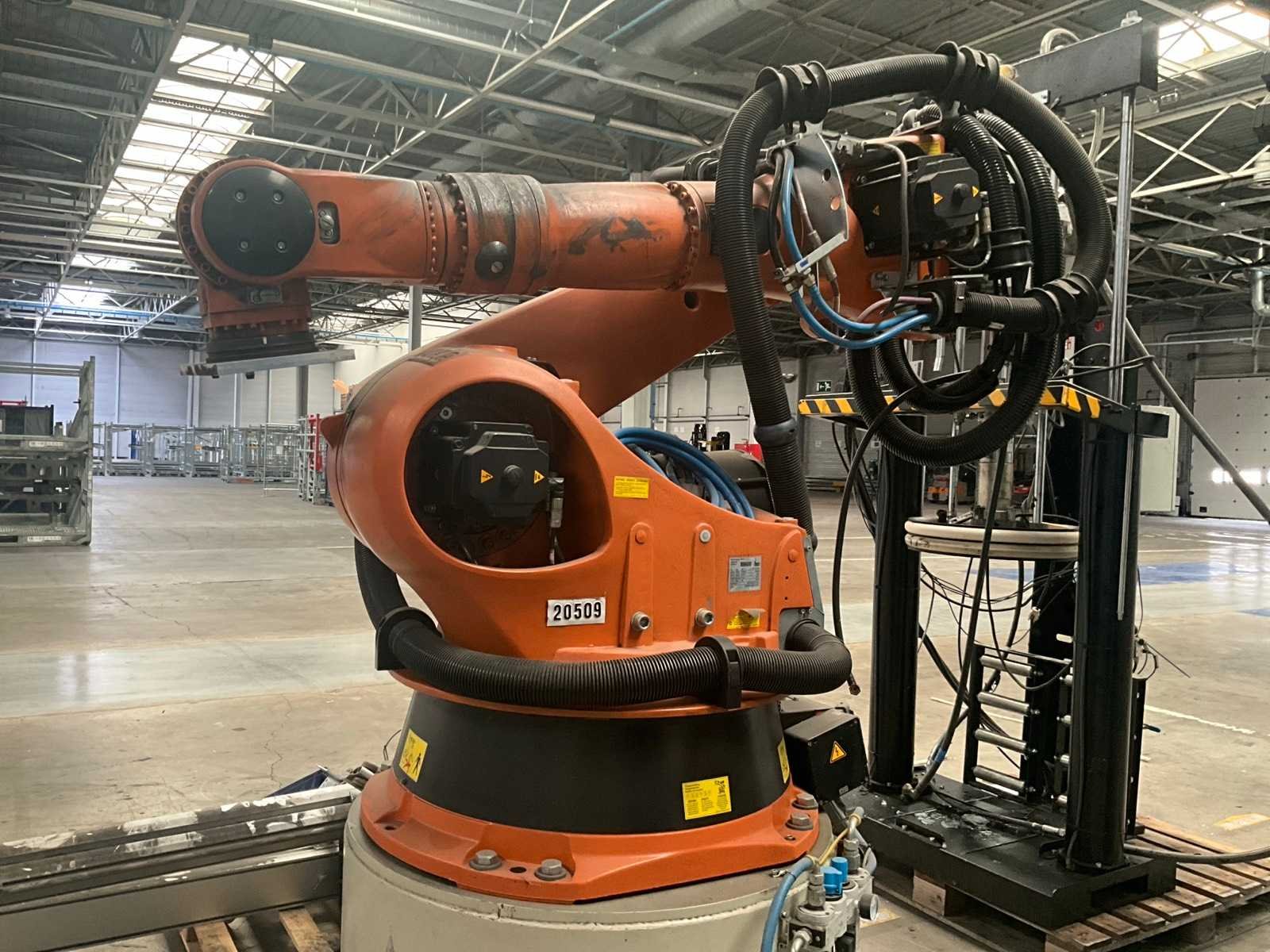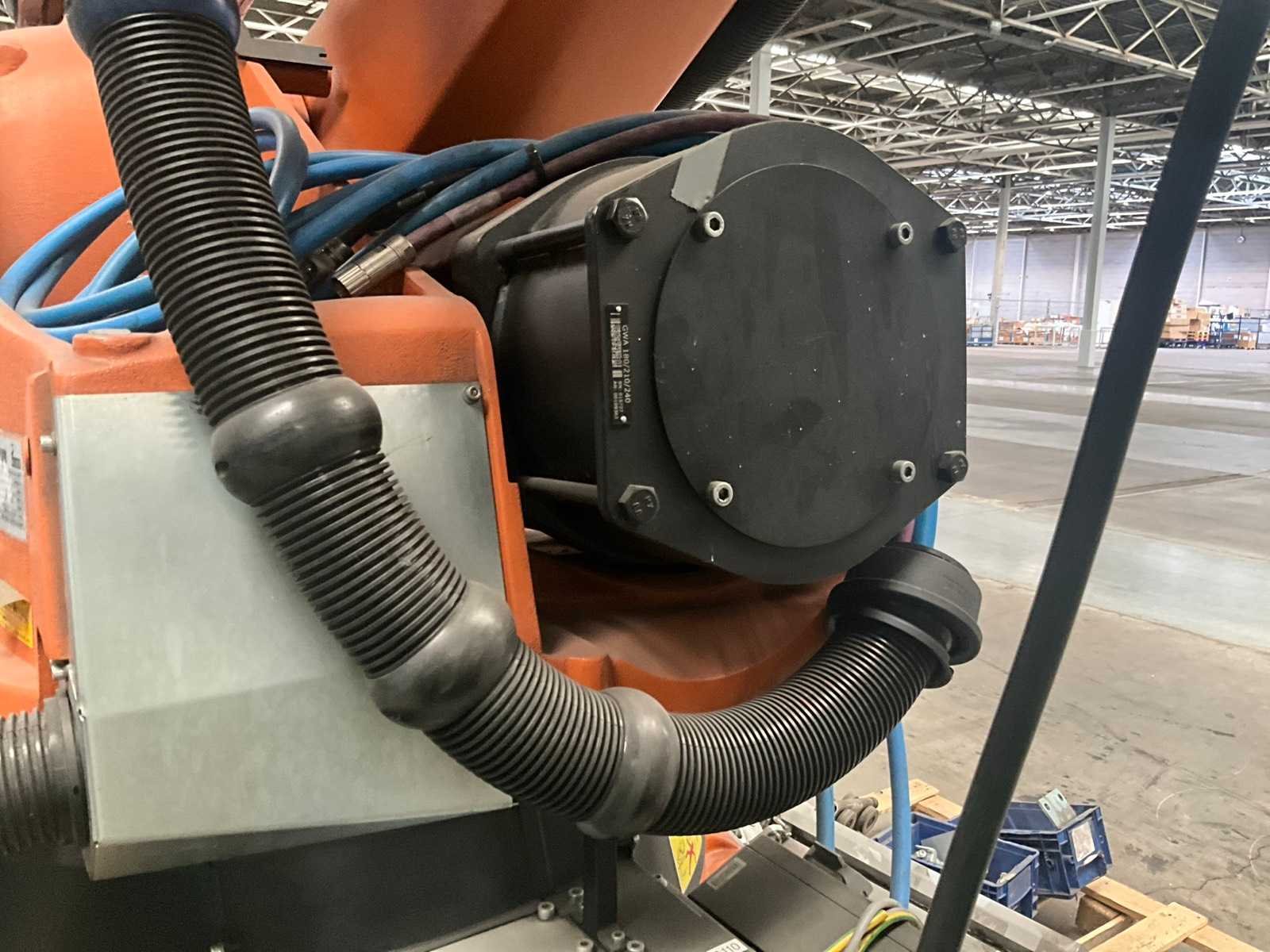 Model type KR210 L150-2 2000. Sturingskast KR C 2 AK9 en bekabeling. Op zwaar metalen onderstel van circa 61 cm hoog, met diameter 100 cm en voetblad 120 cm diameter, met aftakkingsmodule unit Festo. Nee Merk: KUKA Model: KR210 Bouwjaar: 2006 Gewicht: 1285000g Lengte: 205cm Breedte: 90cm Hoogte: 180cm
