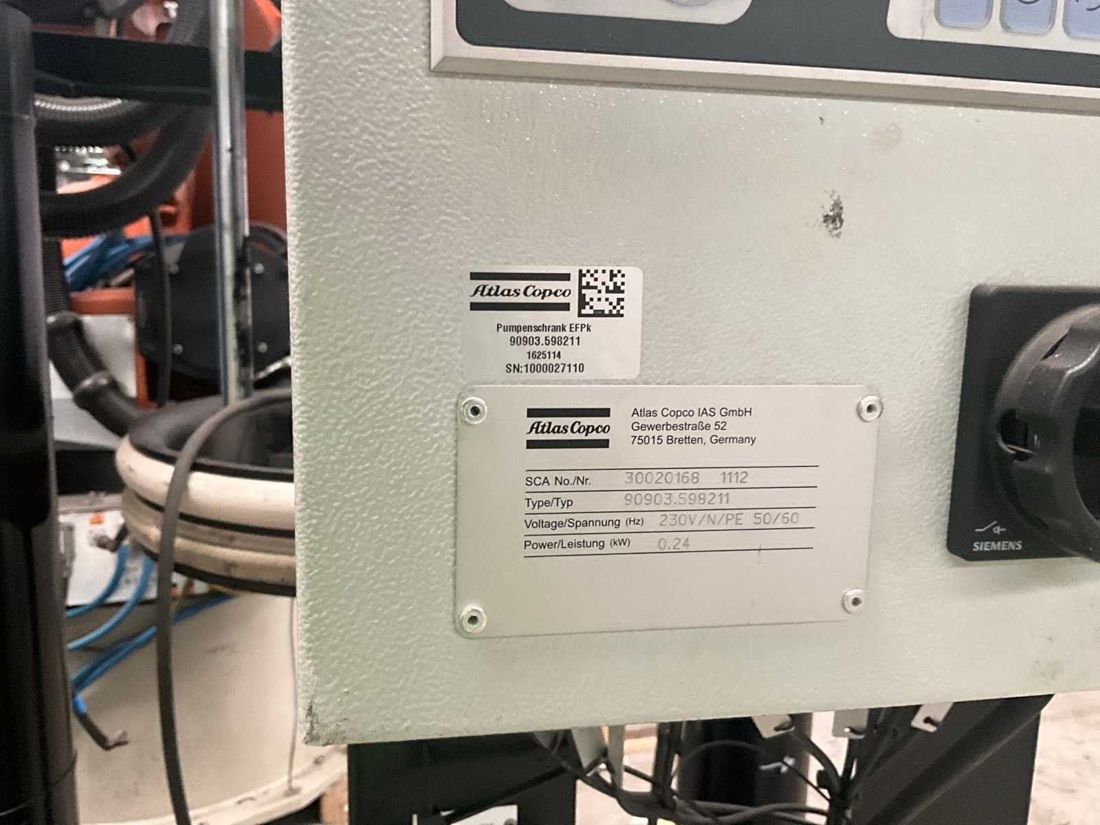 Compleet met sturings/schakelkast Atlas Copco 90903.598211 op metalen frame/voet en voorzien van persluchtmodules. Nee Merk: Atlas Coco Aansluiting: 230V Digitale besturing: true Totale afmeting Hoogte: 2700mm Totale afmeting L: 1600mm Totale afmeting Breedte: 700mm Type: PPK57 571P16-1000 Bouwjaar: 2021