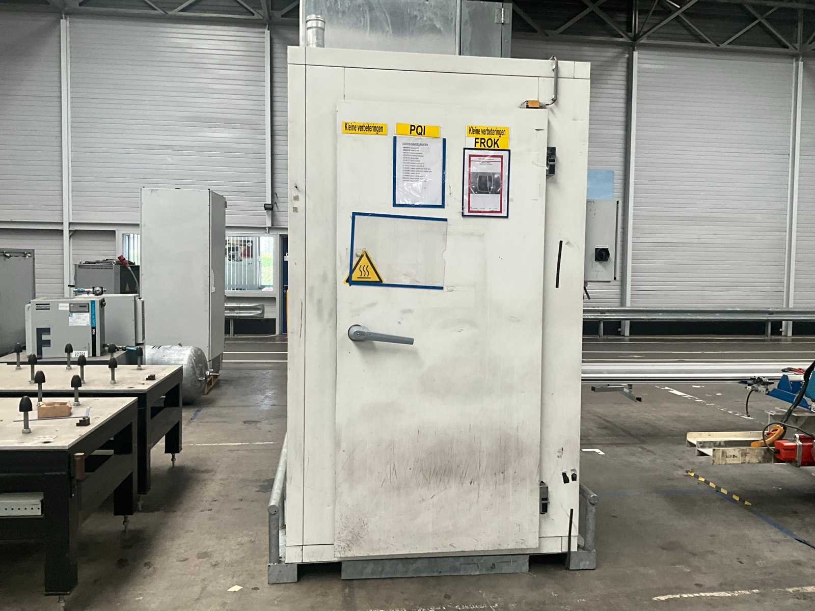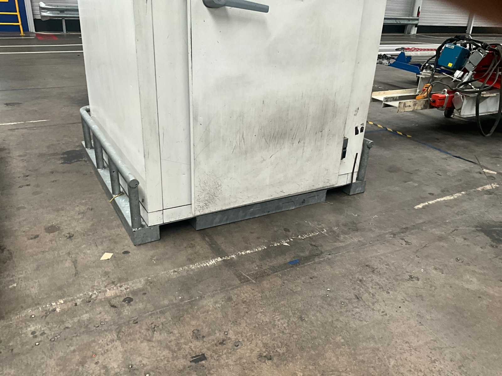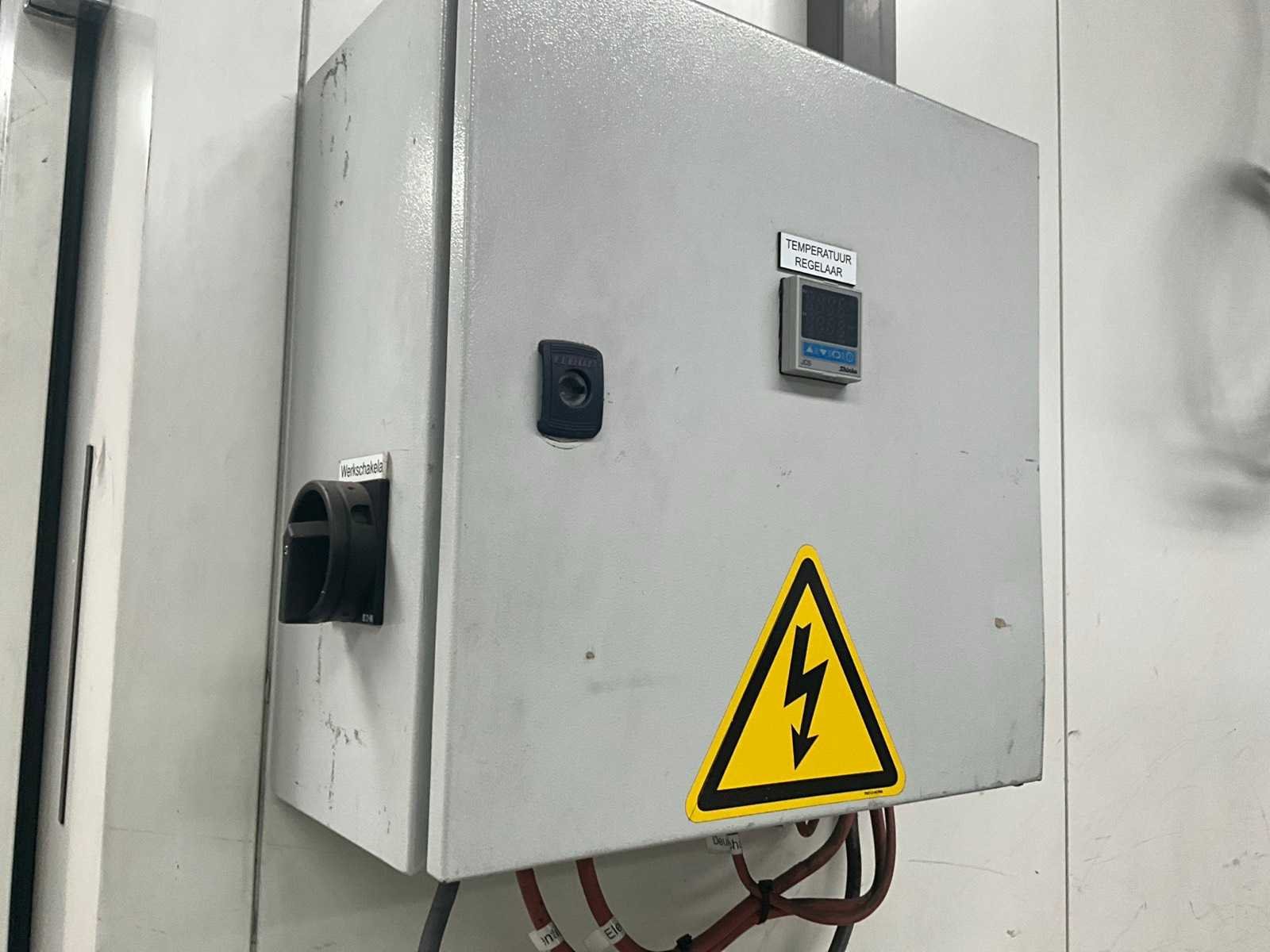 Compleet met compressor bovenop de cabine (deze werd niet mee gemeten met afmetingen van de cabine !). Voorzien van schakelkast met temperatuur regelaar. Binnenin met vast gemonteerde rvs stand om rubberdichtingen aan te hangen voorzien van diverse houders. Nee Totale afmeting L: 1600mm Totale afmeting Breedte: 1500mm Totale afmeting Hoogte: 2450mm