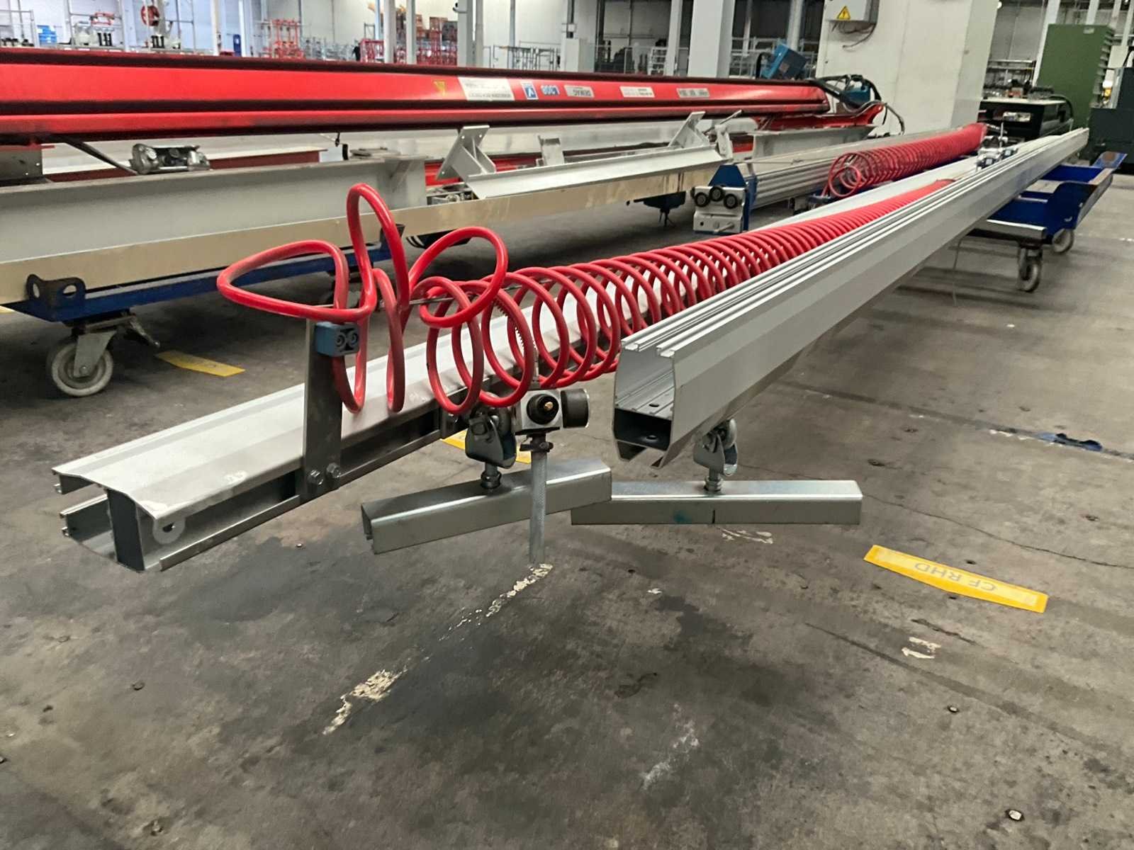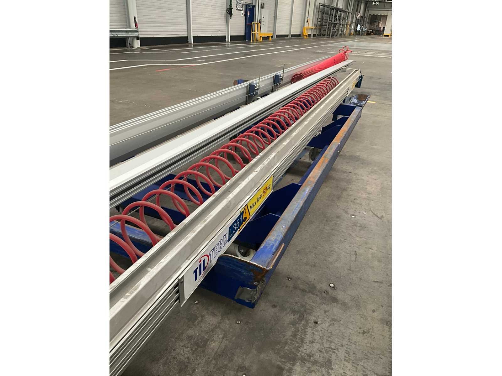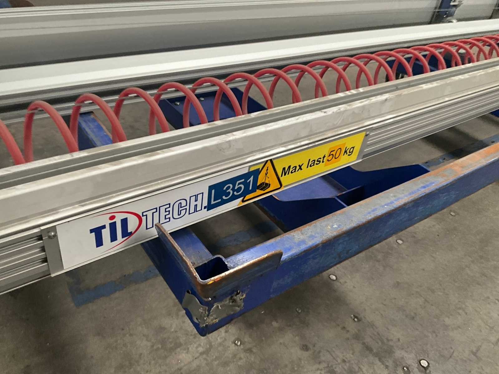 Voorzien van 2 alu railgeleiders, elk van ongeveer 825 en 880 cm lang, compleet met hefarm van circa 470 cm (max last 50 kg) en deurengrijper Tiltech, bouwjaar 2017, en balancer toestel Bal-trol PV06/4. Nee Merk: Tiltech Type: L351