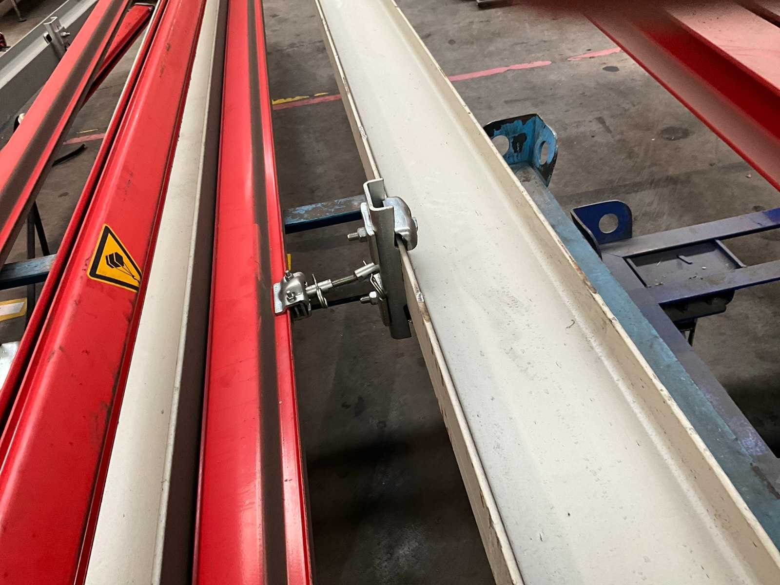 Kraanbaan van circa 400 cm breed x 600 cm bereik (voorzien van 2 geleiders met die lengte). Compleet met 2 diverse poutrels (elk van ongeveer 560cm lang - 16x8 cm) Nee Merk: KBK Type: L321