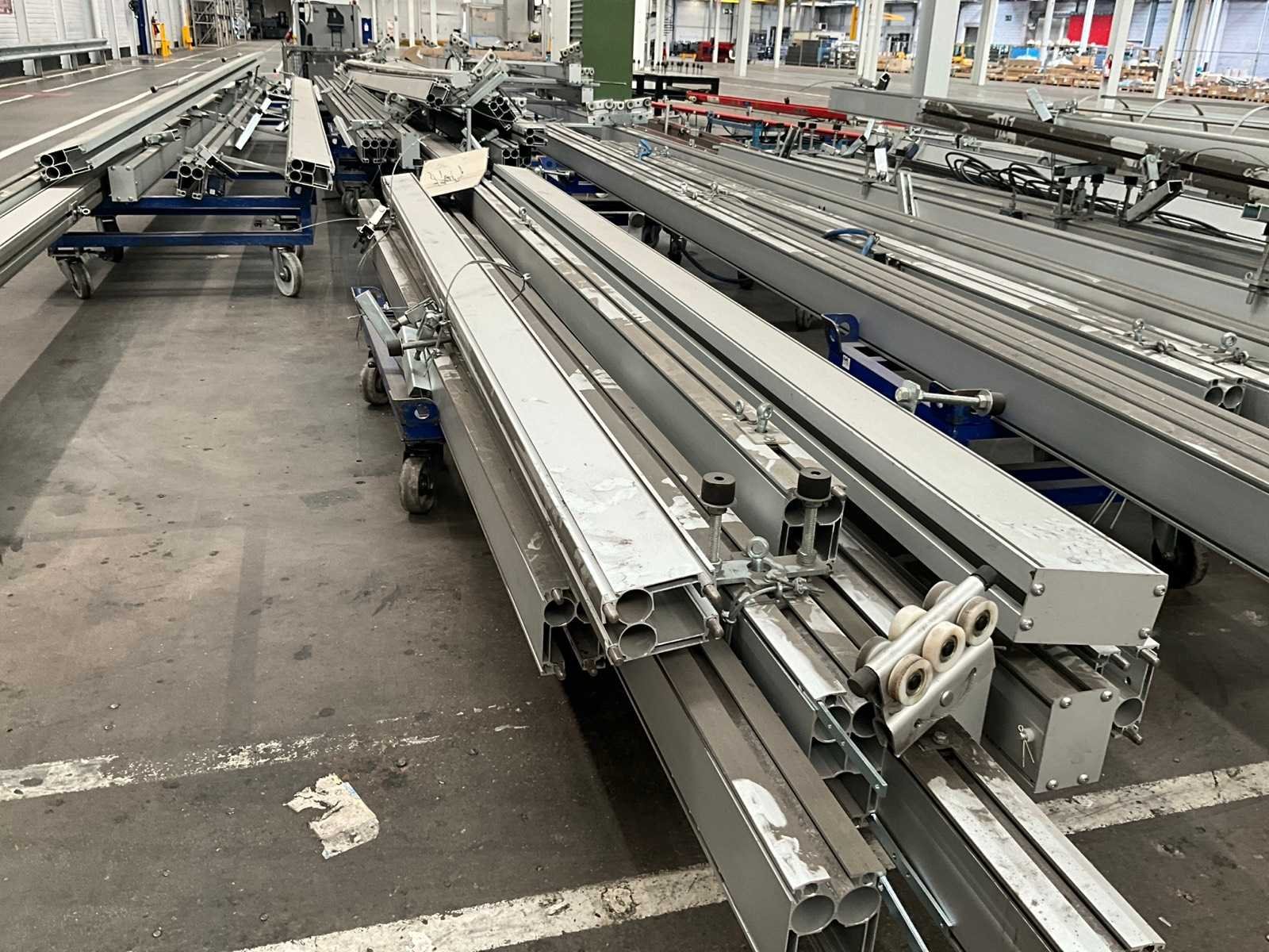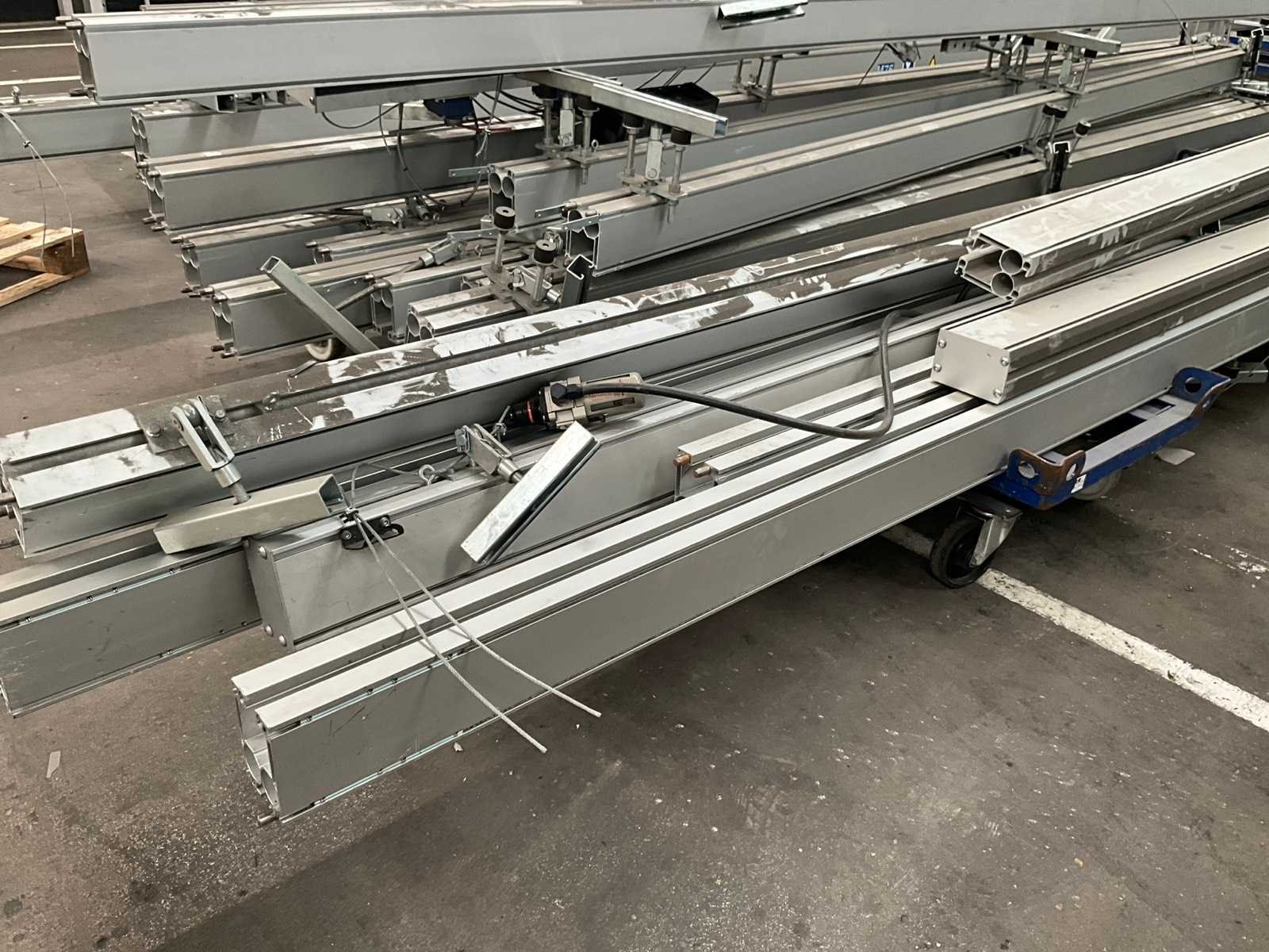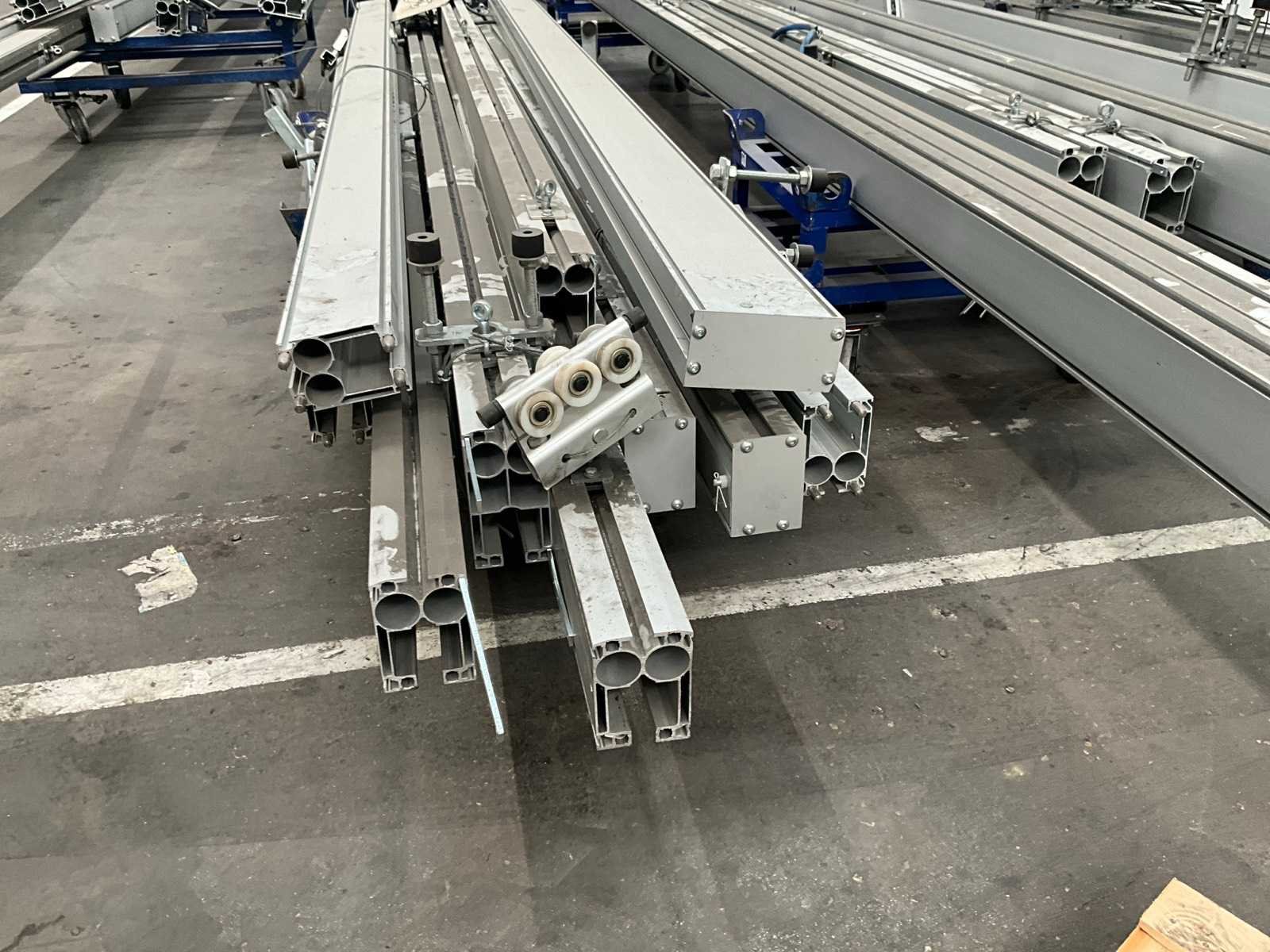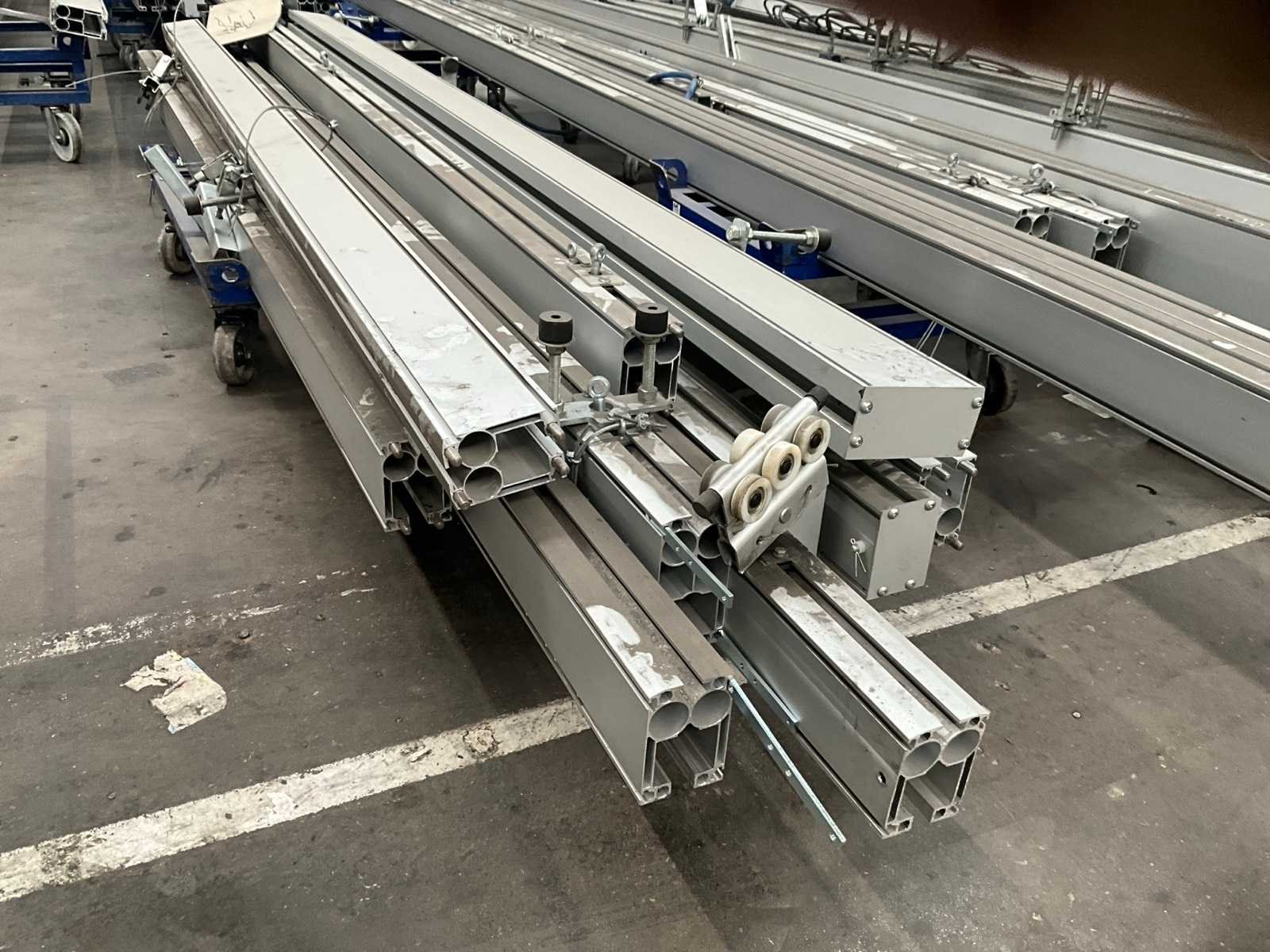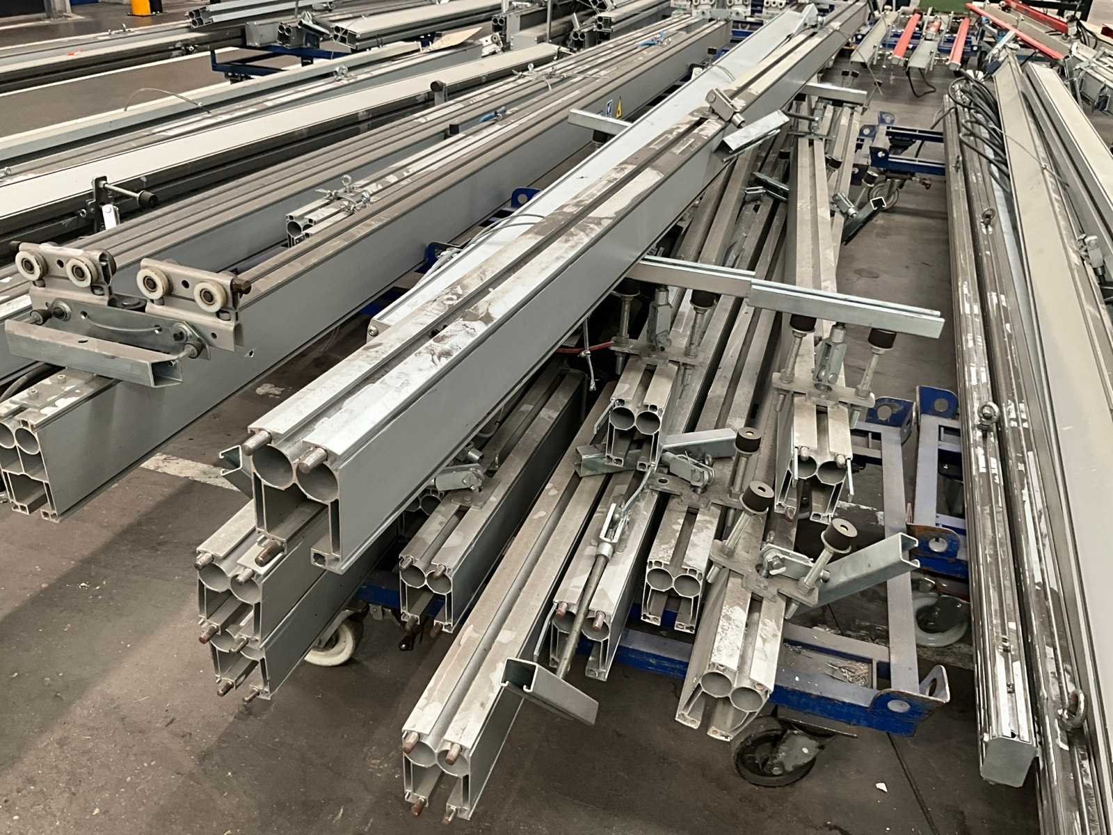 Waaronder van 3 tot 14 lopende meter lengte, in diverse uitvoeringen, en waarvan enkele voorzien van steunen/bevestigingen/houders en/of loopwieltjes. Dit zijn allemaal enkele geleiders, TOTAAL circa 55 stuks ! Nee Merk: Rollyx