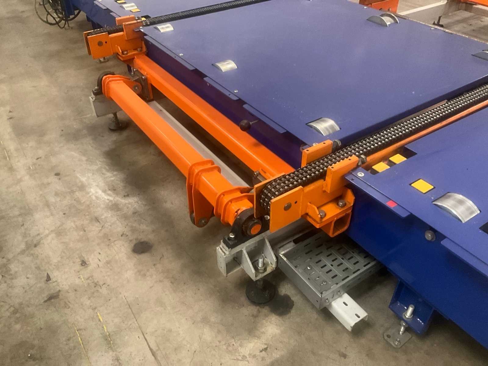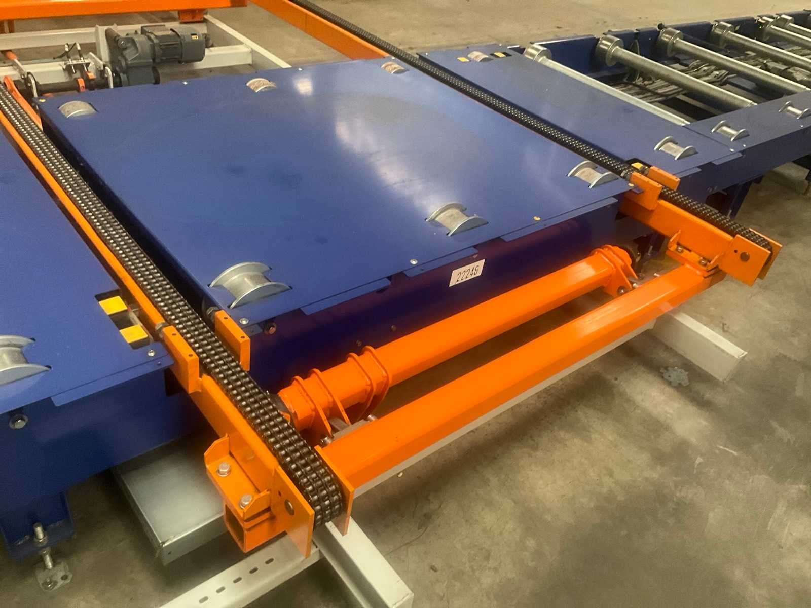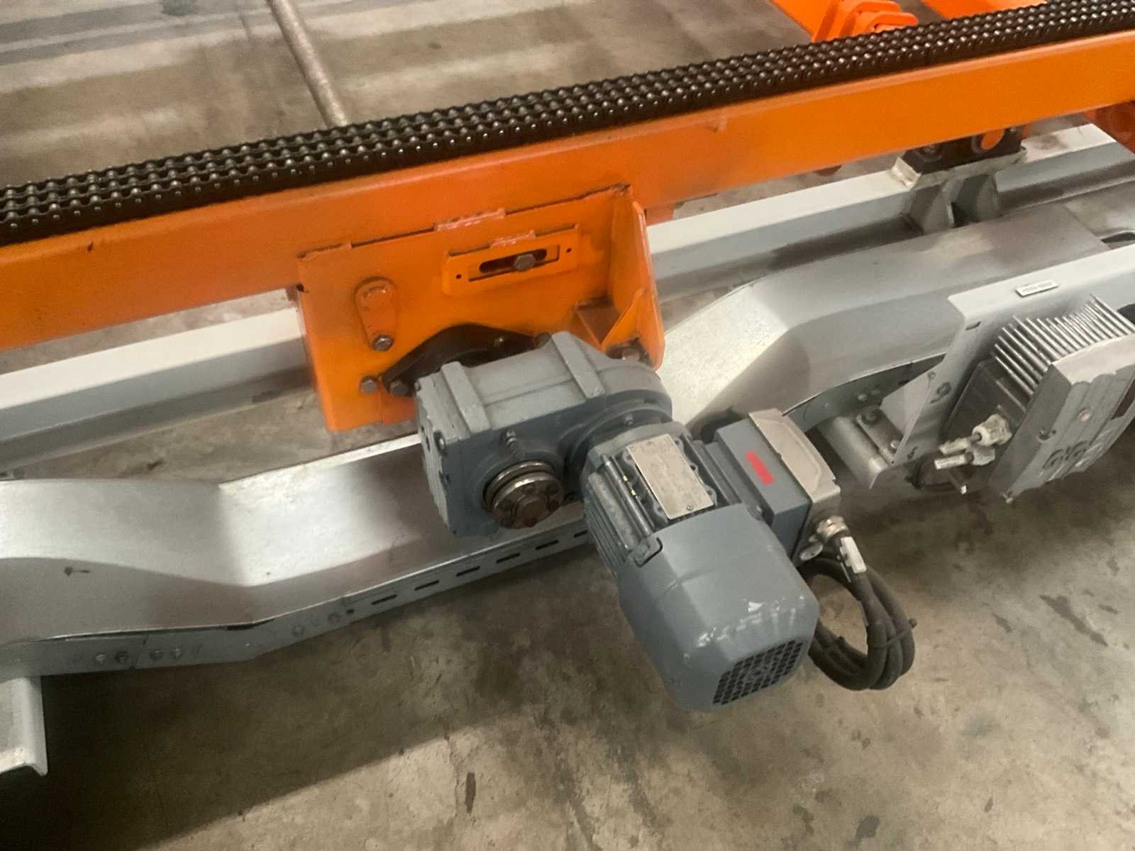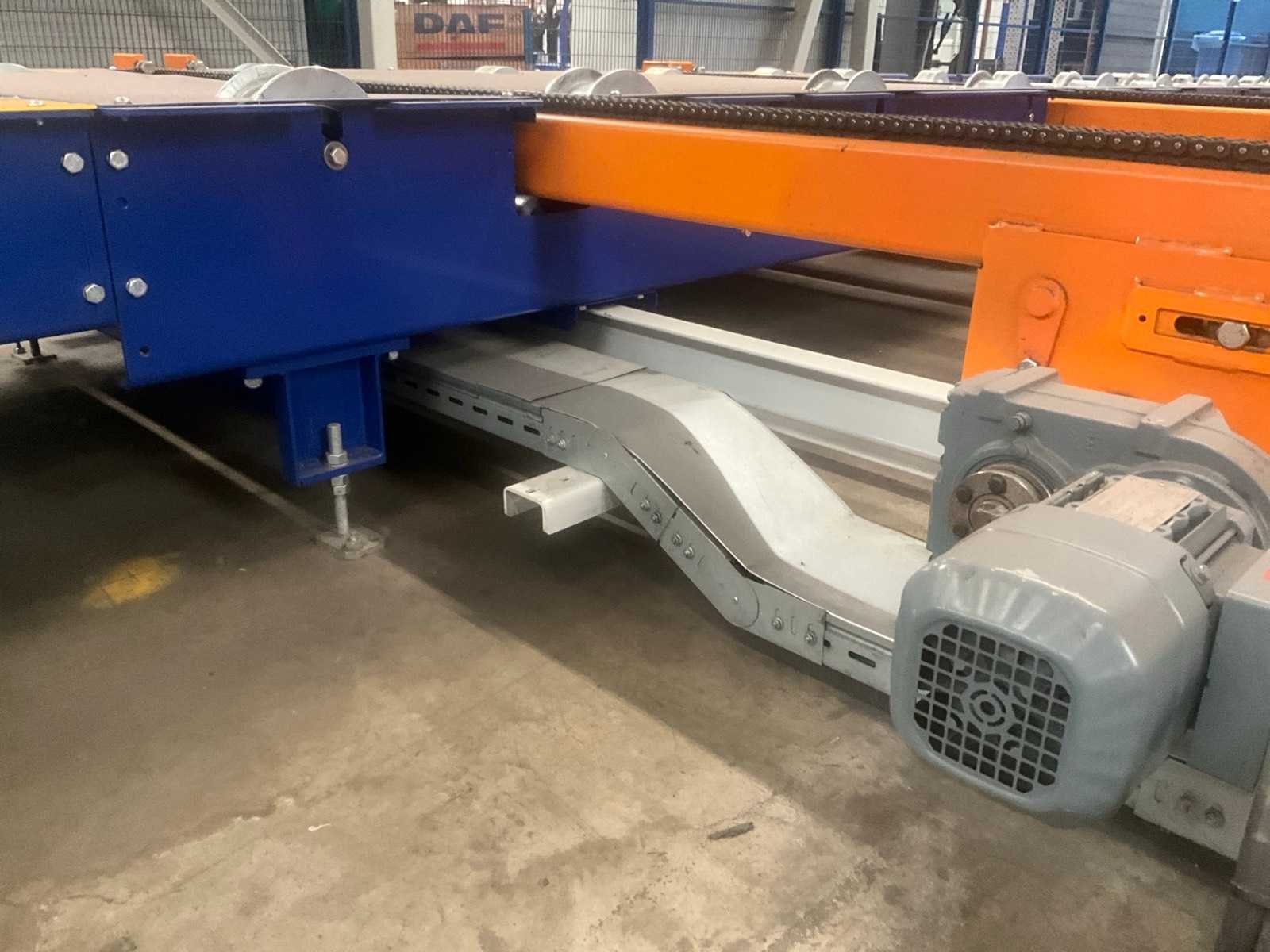 Voorzien van 2 diverse aandrijfmotoren SEW Eurodrive FH37 en kettinglijn/band langs beide zijden over de hele lengte. Nee Elektrisch aangedreven: true Totale afmeting L: 6500mm Totale afmeting Breedte: 2000mm Totale afmeting Hoogte: 570mm