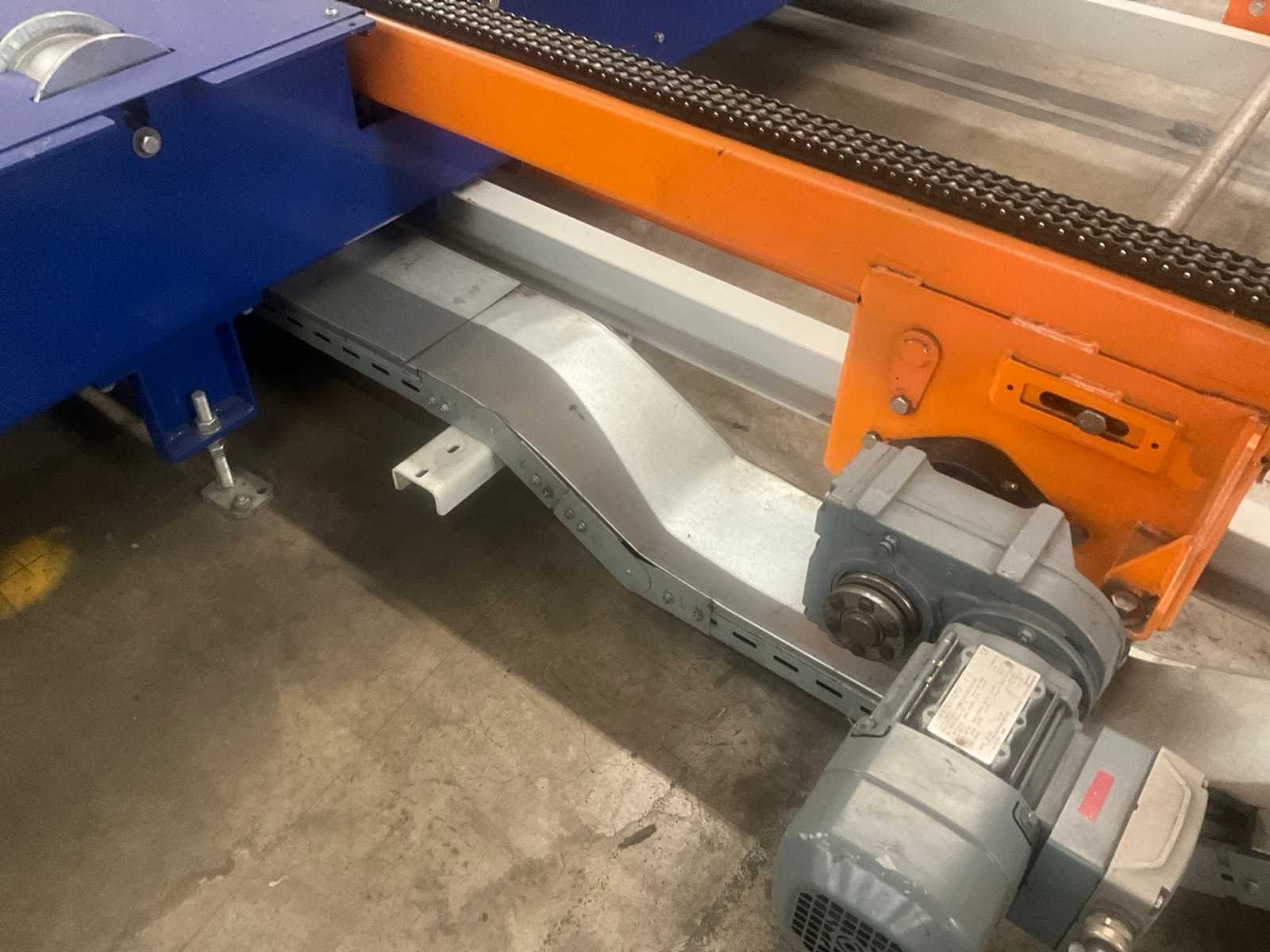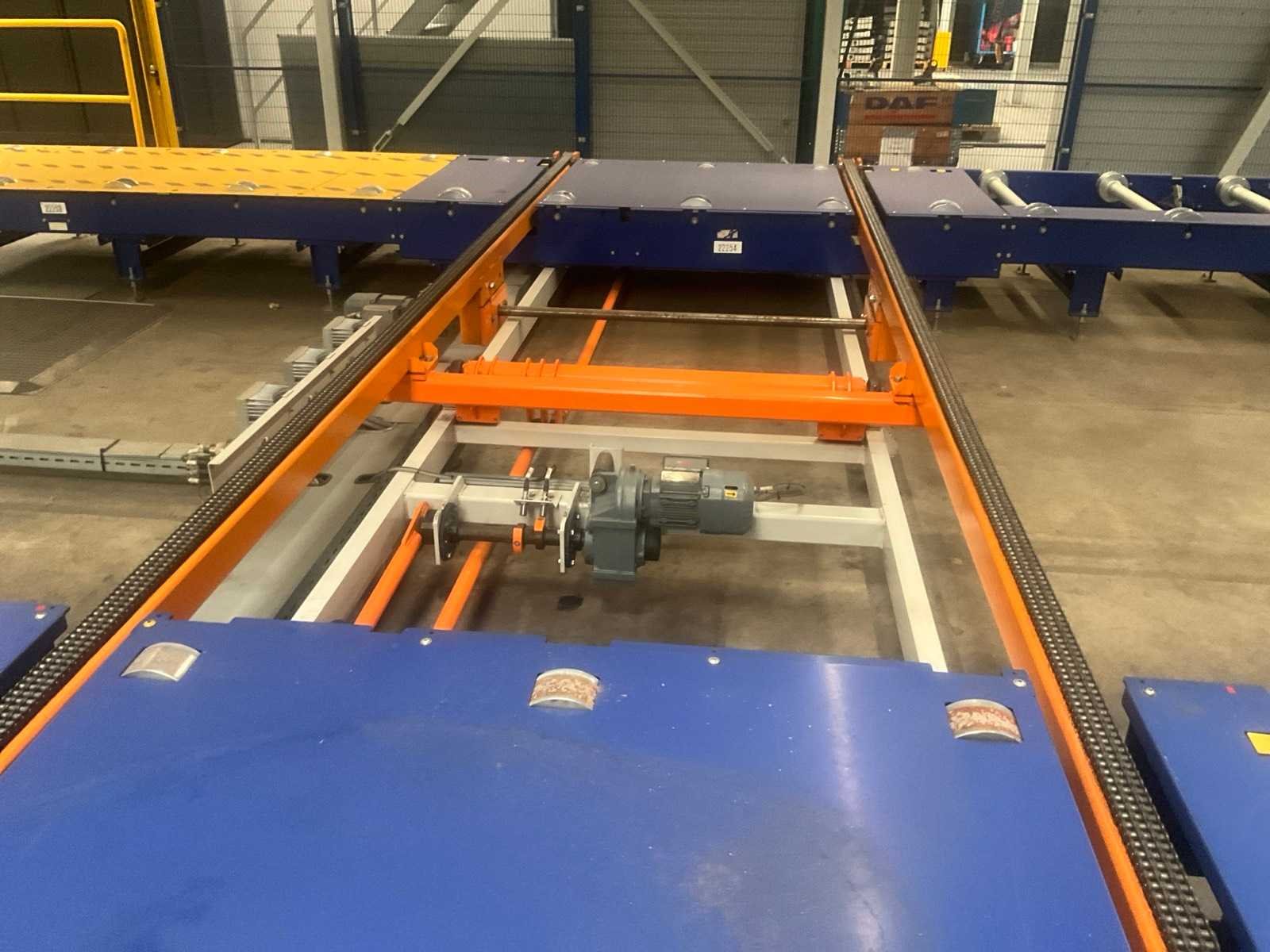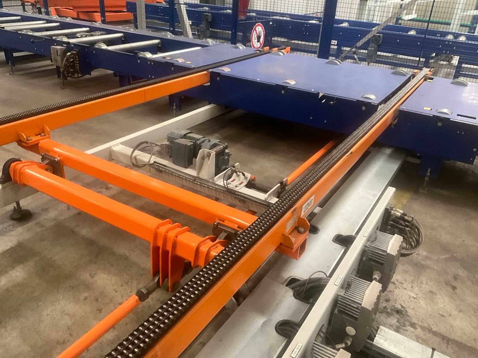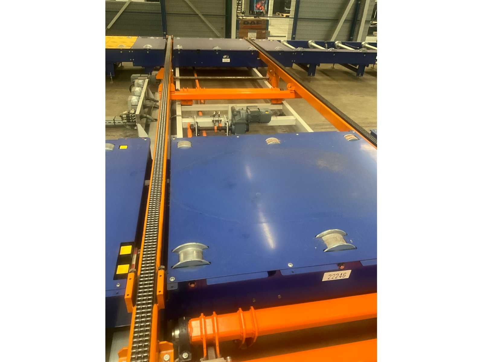 Voorzien van 2 diverse aandrijfmotoren SEW Eurodrive FH37 en kettinglijn/band langs beide zijden over de hele lengte. Nee Elektrisch aangedreven: true Totale afmeting L: 6500mm Totale afmeting Breedte: 2000mm Totale afmeting Hoogte: 570mm