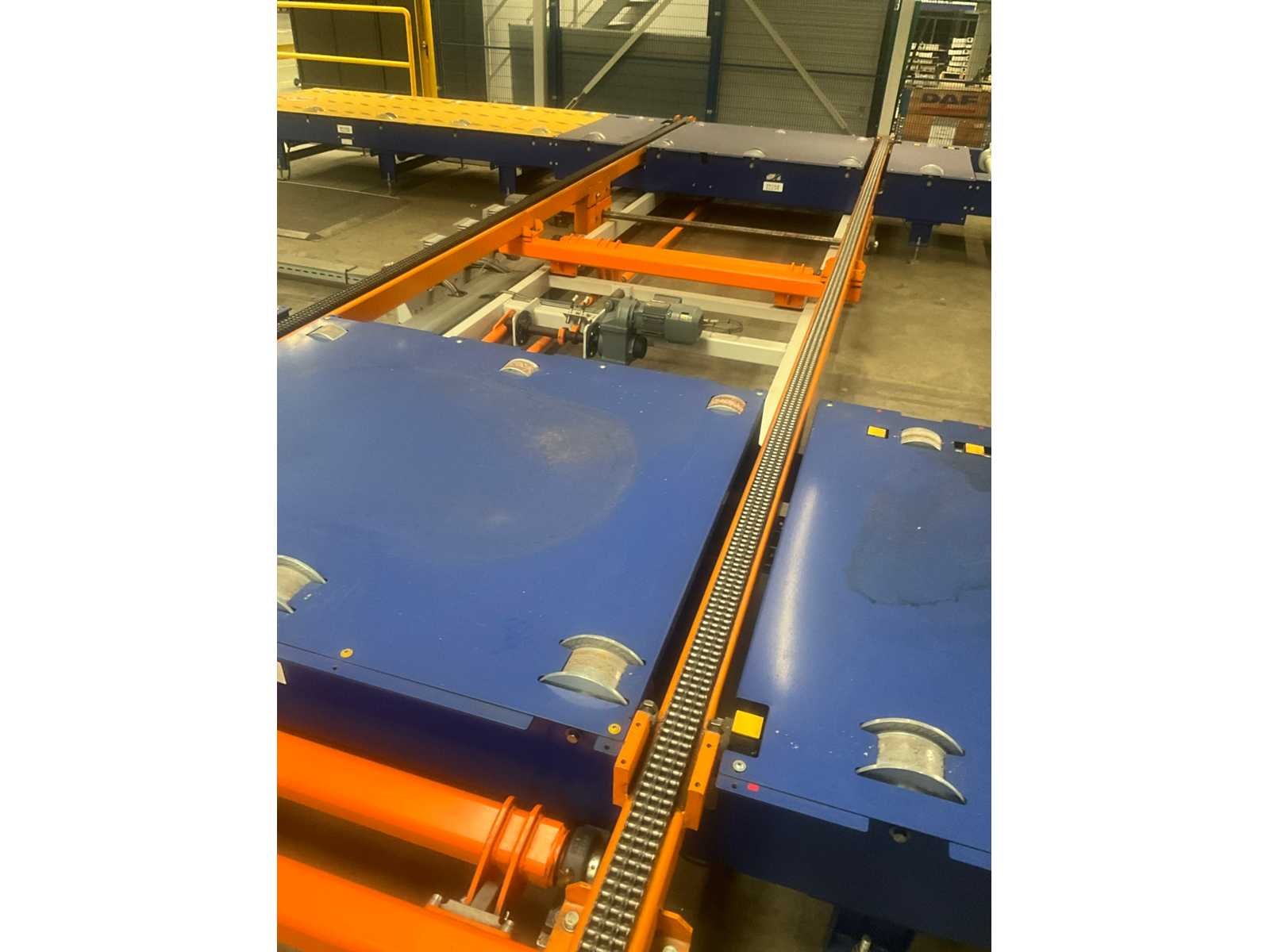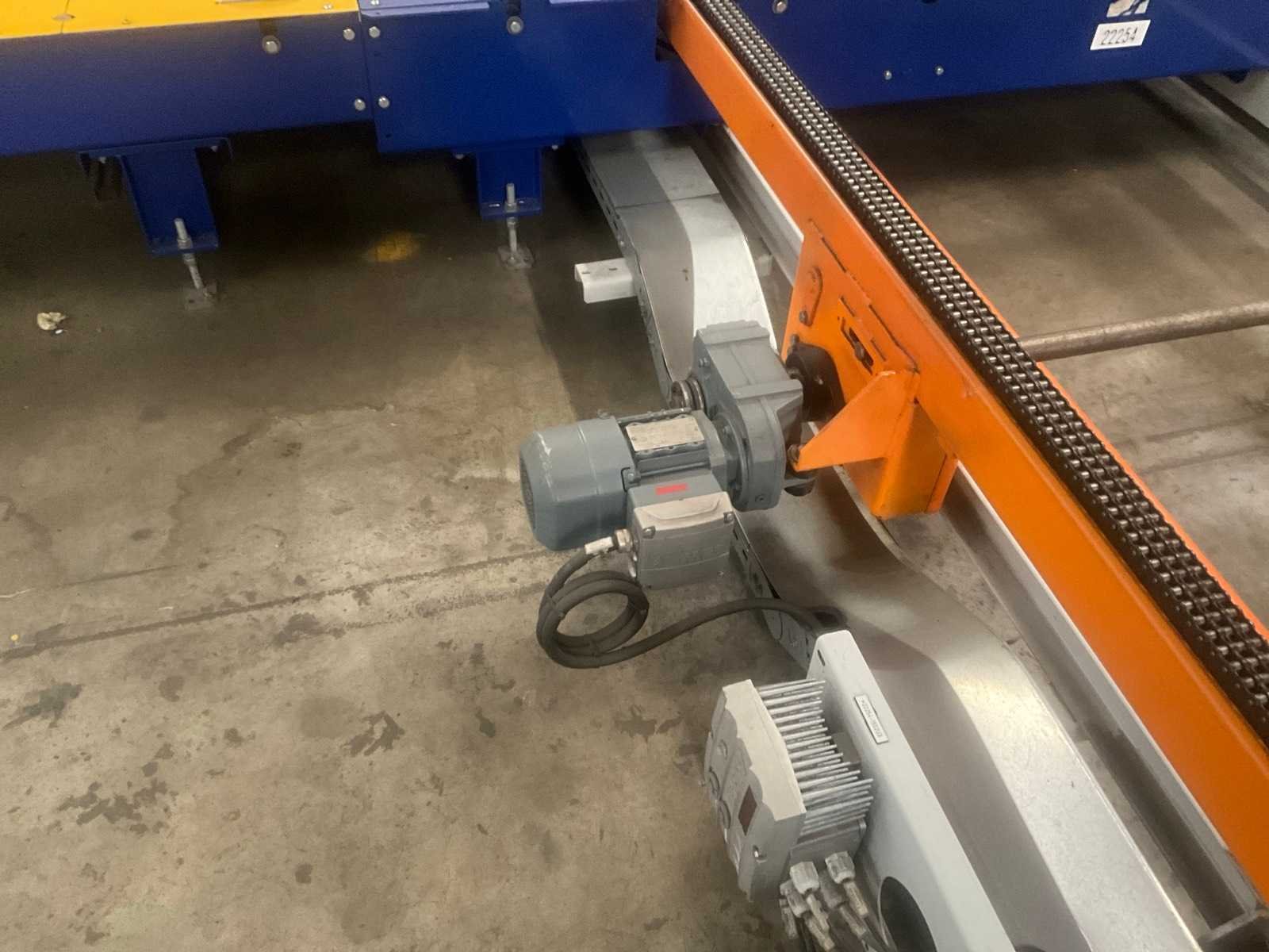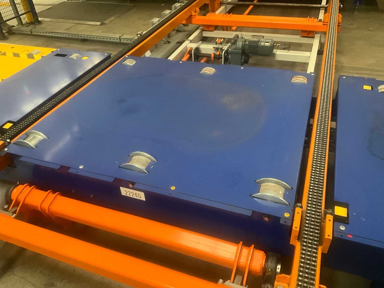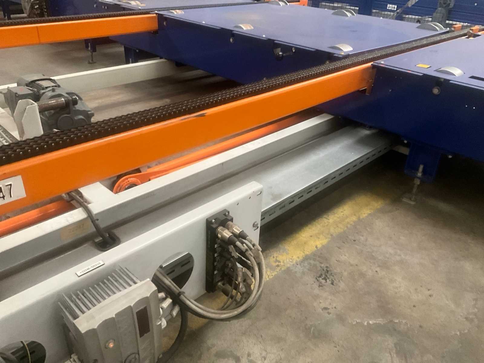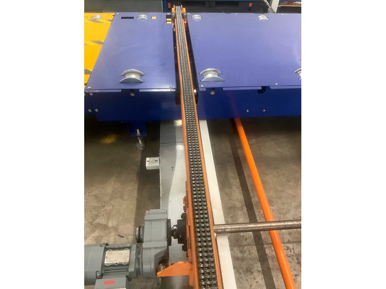 Voorzien van 2 diverse aandrijfmotoren SEW Eurodrive FH37 en kettinglijn/band langs beide zijden over de hele lengte. Nee Elektrisch aangedreven: true Totale afmeting L: 6500mm Totale afmeting Breedte: 2000mm Totale afmeting Hoogte: 570mm