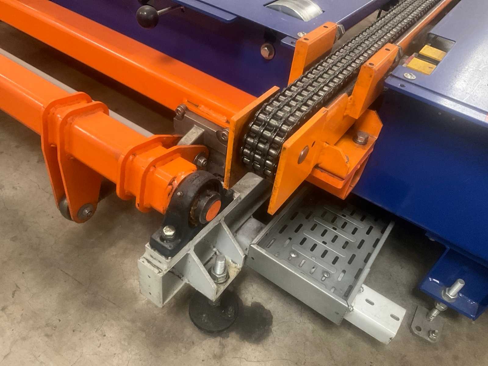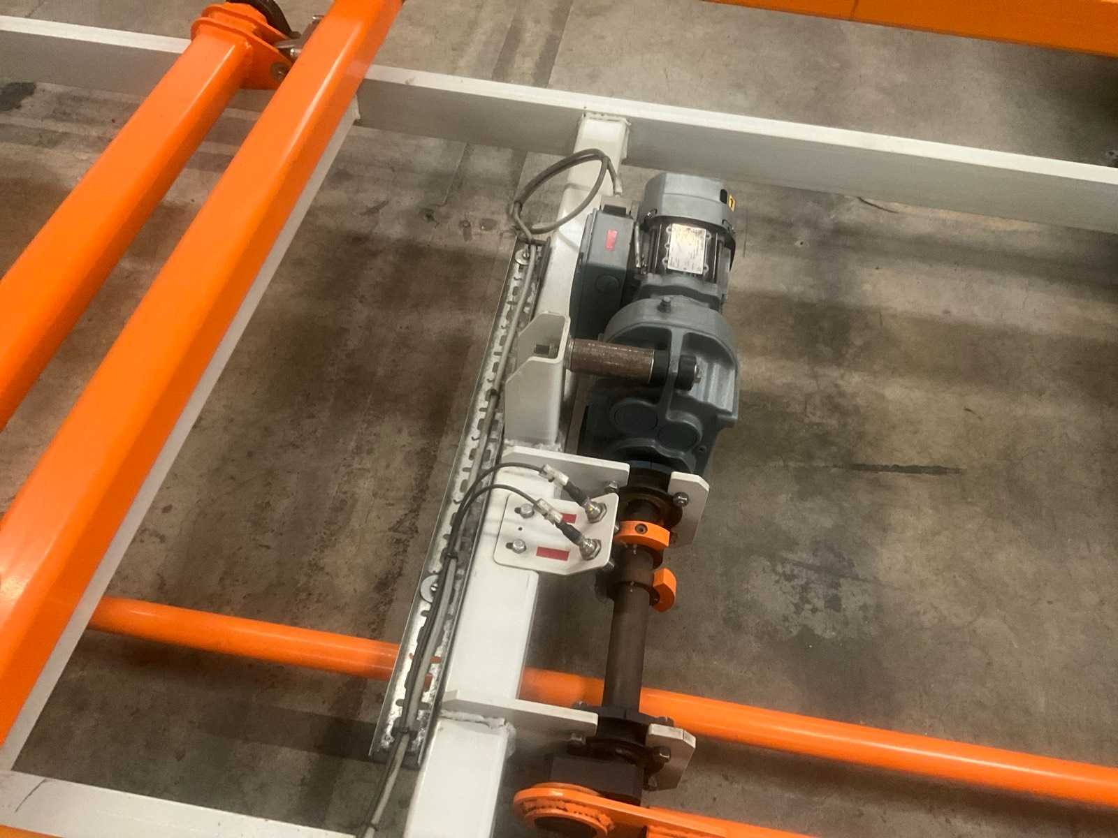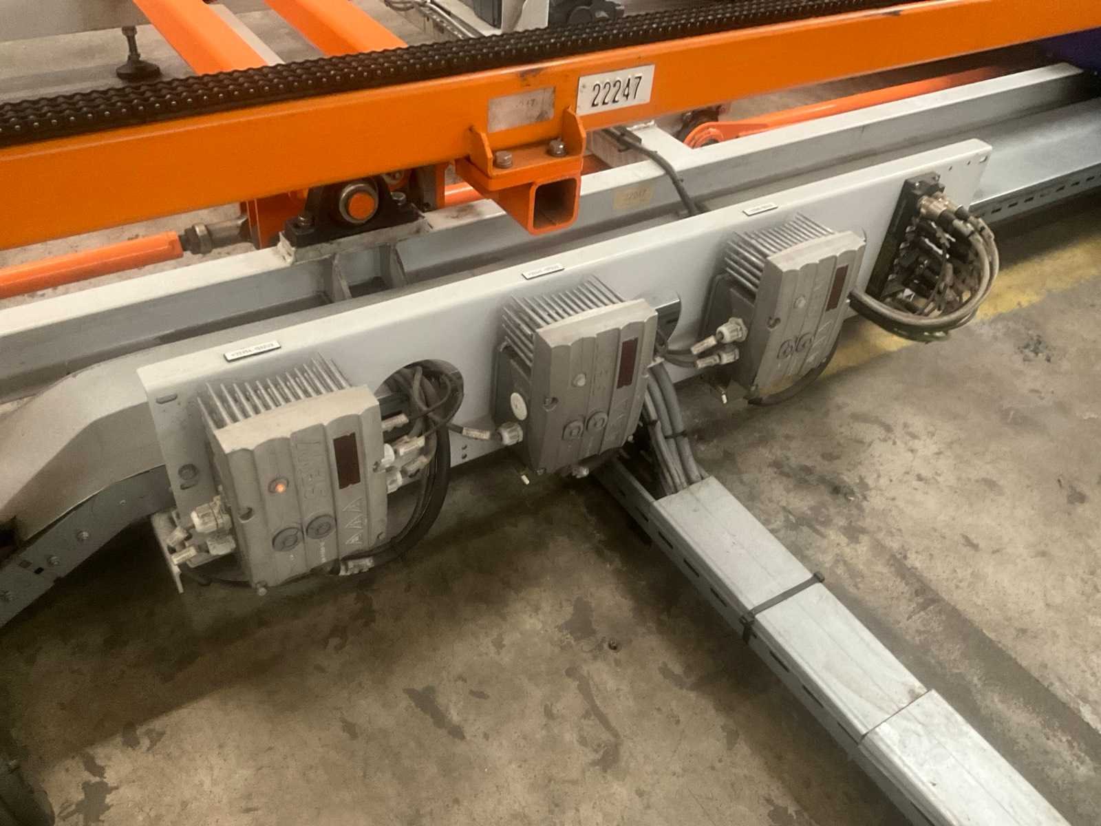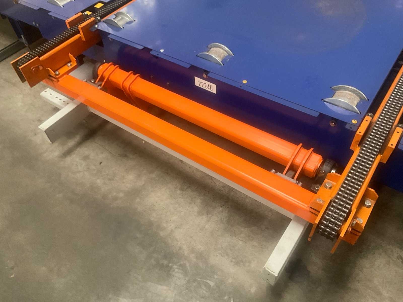 Voorzien van 2 diverse aandrijfmotoren SEW Eurodrive FH37 en kettinglijn/band langs beide zijden over de hele lengte. Nee Elektrisch aangedreven: true Totale afmeting L: 6500mm Totale afmeting Breedte: 2000mm Totale afmeting Hoogte: 570mm