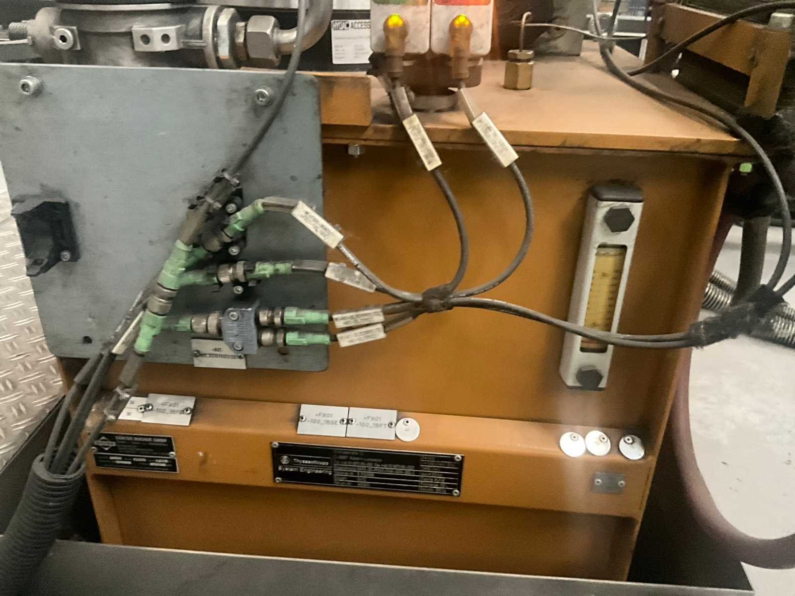 Type KAPG-90-PVD046-11kW-400V-350-2, getekend BUCHER - MMT, voorzien van HYDAC heat exchanger en motor Siemens. Nee Merk: ThyssenKrupp Type: KAPG-90 Bouwjaar: 2012 Aansluiting: 400V Vermogen: 11kW Werkdruk: 350bar Tankinhoud: 100l Totale afmeting L: 700mm Totale afmeting Breedte: 650mm Totale afmeting Hoogte: 1100mm