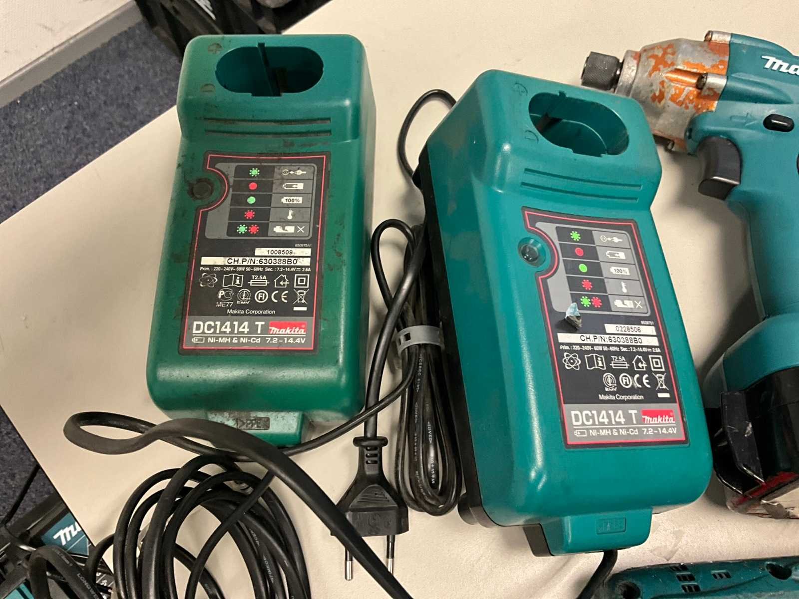 Elk toestel voorzien van een batterij 12 V en compleet met in totaal 2 batterijladers DC1414 T, die gebruikt kunnen worden om al deze toestellen op te laden. Nee Merk: MAKITA Type: 6916FD