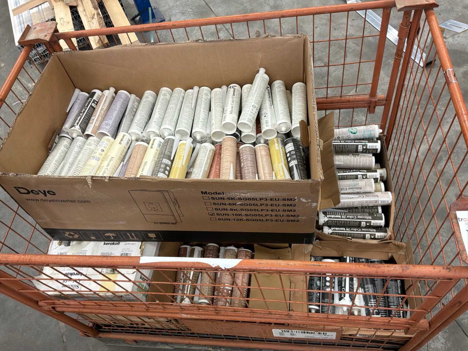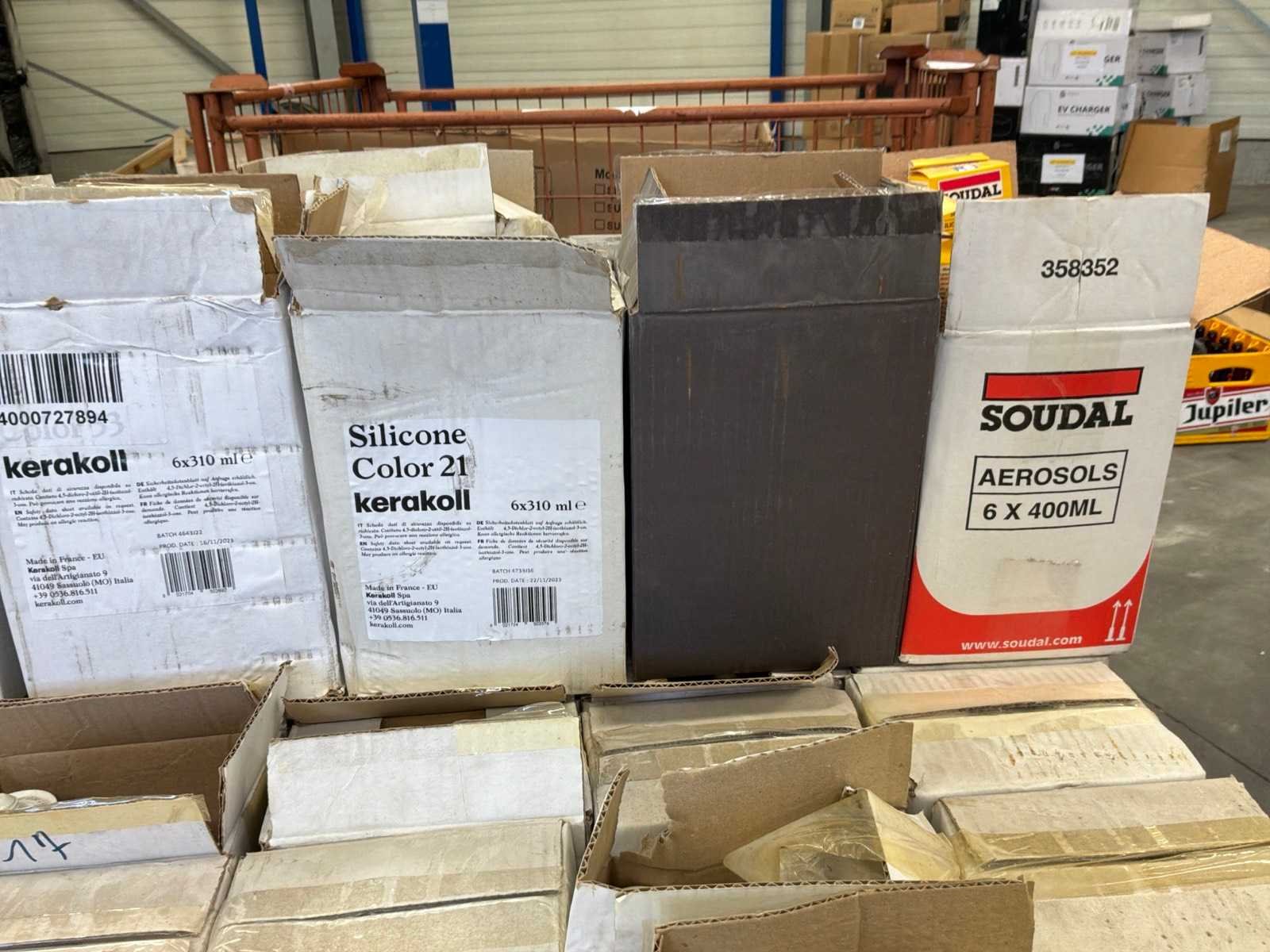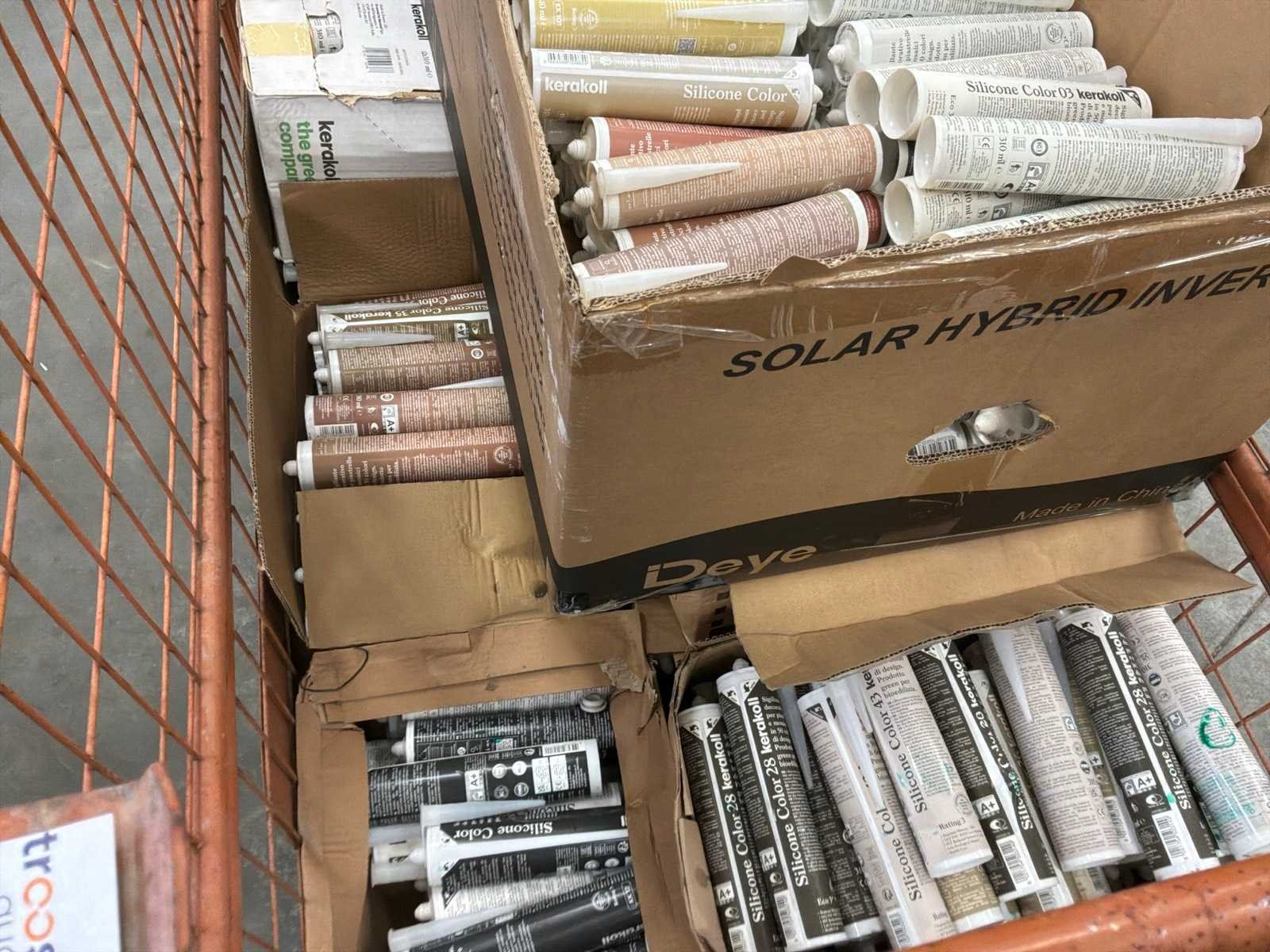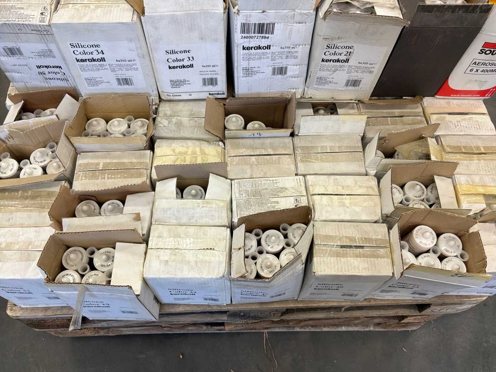 Verdeeld over 1 draadcontainer en pallet. Inclusief 1x draadcontainer, exclusief pallet. ENVIRON 875 CARTOUCHES SILICONE CARRELAGE DIVERSES TEINTES Non Merk: KERAKOLL