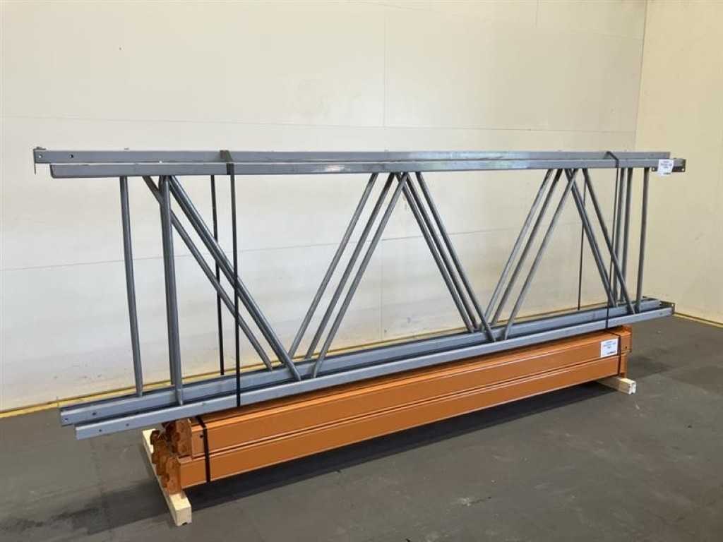 Electrolux palletstelling (OCCASIE) Lengte: 5875mm (2 modules van 2795mm) Hoogte: 3700mm (voorzien van 3 niveaus) Diepte: 1050mm 3 ladders 3700 x 1050 12 liggers 2795 x 120 No Merk: Electrolux Type: Palletstelling Aantal secties: 2 Sectie afm. b: 2795mm Sectie diepte: 1050mm Sectie afm. h: 3700mm Aantal staanders: 3 Aantal liggers: 12