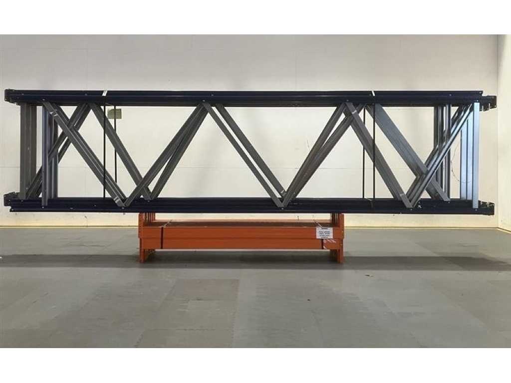 Kimer palletstelling (OCCASIE) Lengte: 9670mm (5 modules van 1850mm) Hoogte: 4500mm (voorzien van 2 niveaus) Diepte: 1100mm 6 ladders 4500 x 1100 20 liggers 1850 x 100 No Merk: Kimer Type: Palletstelling Aantal secties: 5 Sectie afm. b: 1850mm Sectie diepte: 1850mm Sectie afm. h: 4500mm Aantal staanders: 6 Aantal liggers: 20