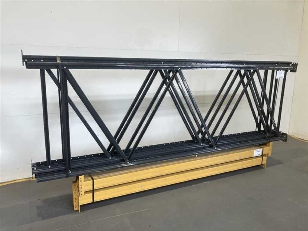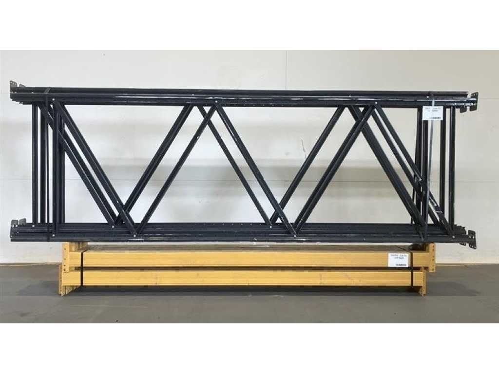 Link 51 palletstelling (OCCASIE) Lengte: 8420mm (3 modules van 2700mm) Hoogte: 3460mm (voorzien van 2 niveaus) Diepte: 1100mm 4 ladders 3460 x 1100 12 liggers 2700 x 100 No Merk: Link 51 Type: Palletstellling Aantal secties: 3 Sectie afm. b: 2700mm Sectie diepte: 1100mm Sectie afm. h: 3460mm Aantal staanders: 4 Aantal liggers: 12