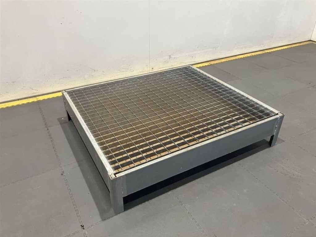 Opvangbak voor onder stelling 1200mm x 1060mm x 240mm occasie Galva staalplaat met rooster No Aantal secties: 1 Sectie afm. b: 1200mm Sectie diepte: 1060mm Sectie afm. h: 240mm