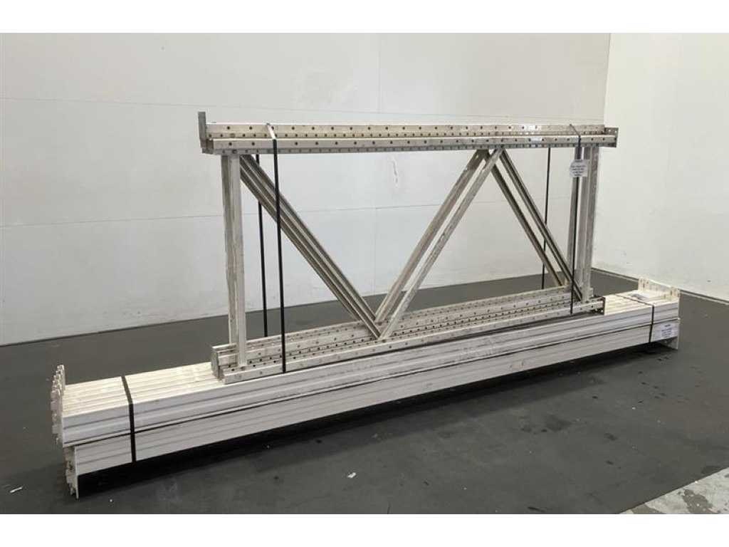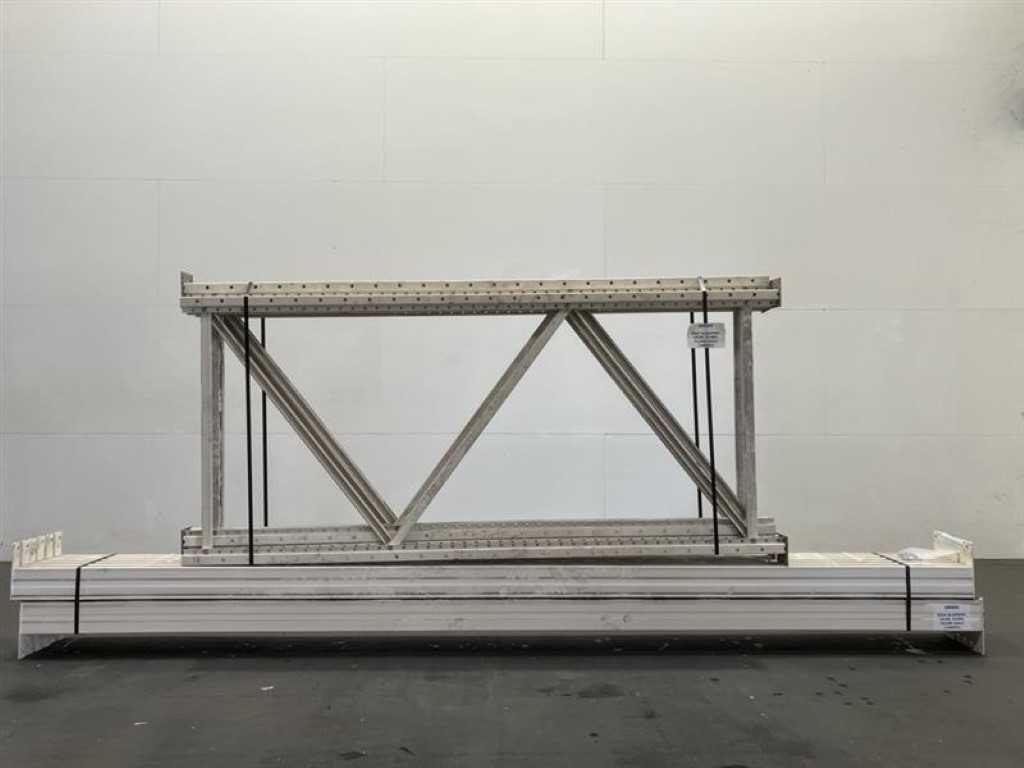 Stow op palletstelling (OCCASIE) Lengte: 8100mm (2 modules van 3900mm) Hoogte: 2480mm (voorzien van 3 niveaus) Diepte: 1100mm 3 ladders 2480 x 1100 12 liggers 3900 x 130 No Merk: Stow OP Type: Palletstelling Aantal secties: 2 Sectie afm. b: 3900mm Sectie diepte: 1100mm Sectie afm. h: 2480mm Aantal staanders: 3 Aantal liggers: 12