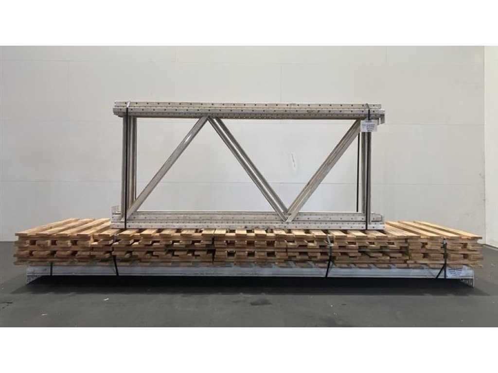 Stow op palletstelling (OCCASIE) Lengte: 12100mm (3 modules van 3900mm) Hoogte: 2500mm (voorzien van 2 niveaus) Diepte: 1100mm 4 ladders 2500 x 1100 12 liggers 3900 x 140 + Half open massief vloeren No Merk: Stow OP Type: Palletstelling Aantal secties: 3 Sectie afm. b: 3900mm Sectie diepte: 1100mm Sectie afm. h: 2500mm Aantal staanders: 4 Aantal liggers: 12 Aantal legborden: 6 Totale afmeting L: 12100cm Totale afmeting Breedte: 1100cm Totale afmeting Hoogte: 2500cm
