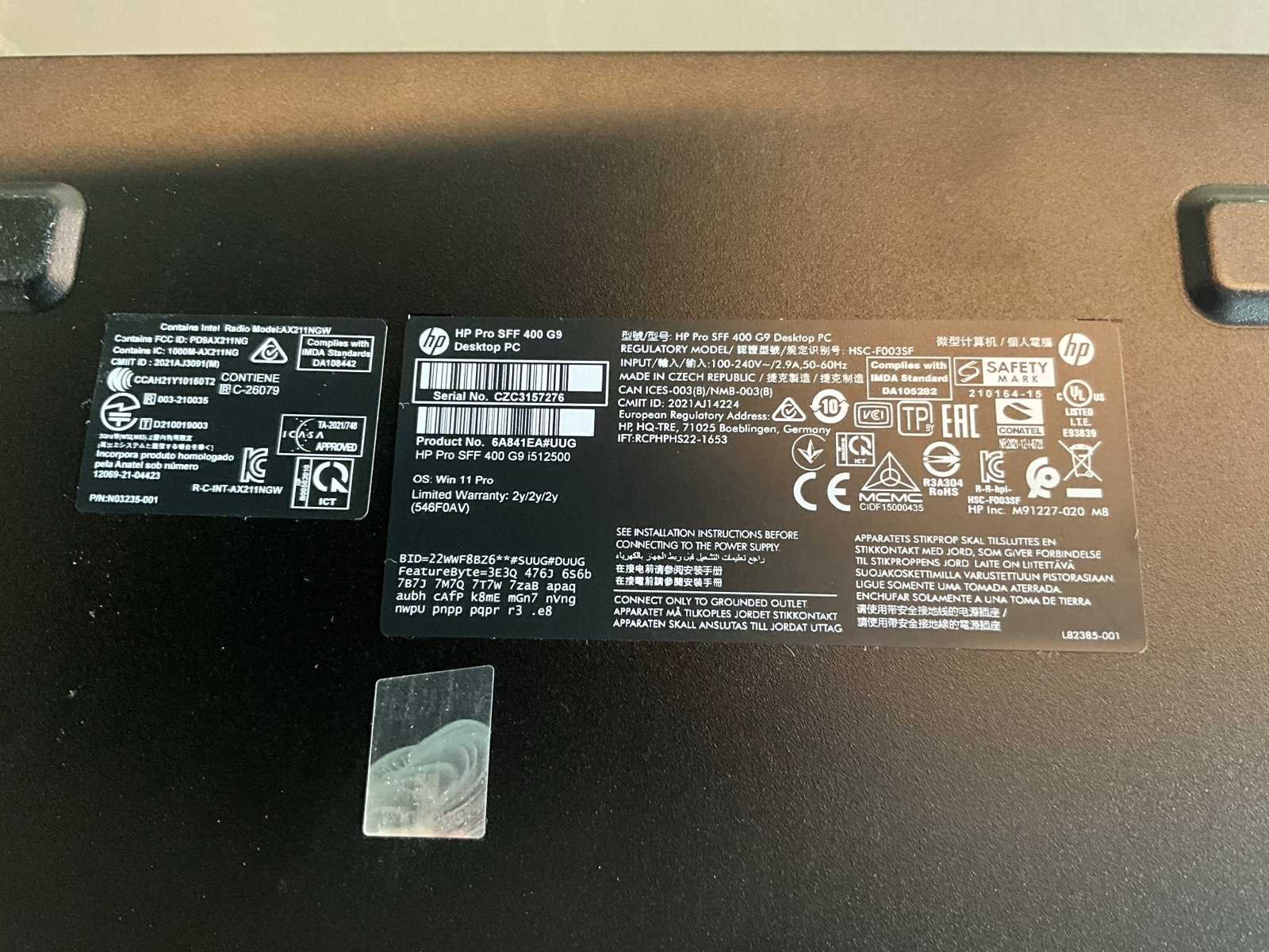 Volledig gereset en vrij van data, geen operating systems (OS) meer aanwezig. No Merk: HP Type: Pro SFF 400 G9 Met voedingskabel: true