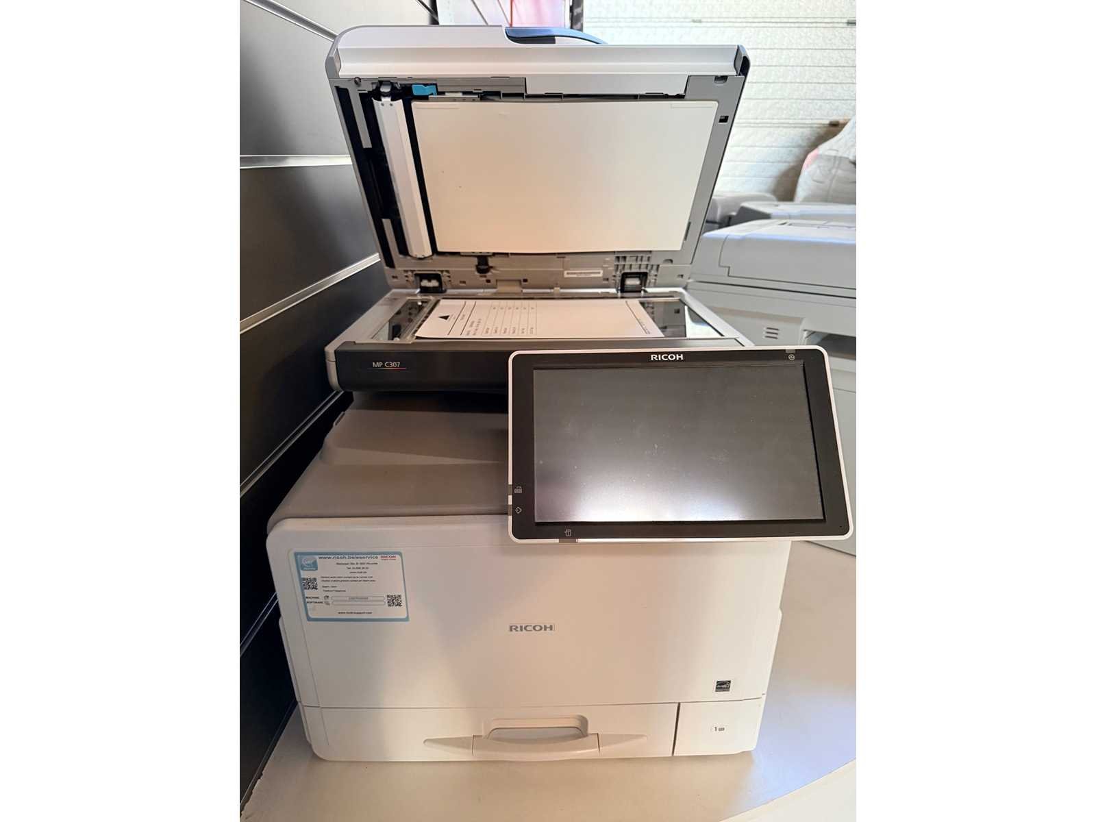 Copieur - imprimante - scanner professionnel Ricoh MPC 307 en très bel état de fonctionnement et très peu utilisée. Vitesse d'impression 30 ppm. vitesse de Scan 80 ipm ( recto-verso ). No Merk: Ricoh Model: MPC 307 Product type: Copieur-imprimante -scanner Max. scan format: A4 Aantal of cartridges: 4 Maximale printresolutie: 2400dpi Kleurenprinter: true Gewicht: 40g Lengte: 52cm Breedte: 52cm Hoogte: 45cm Met voedingskabel: true