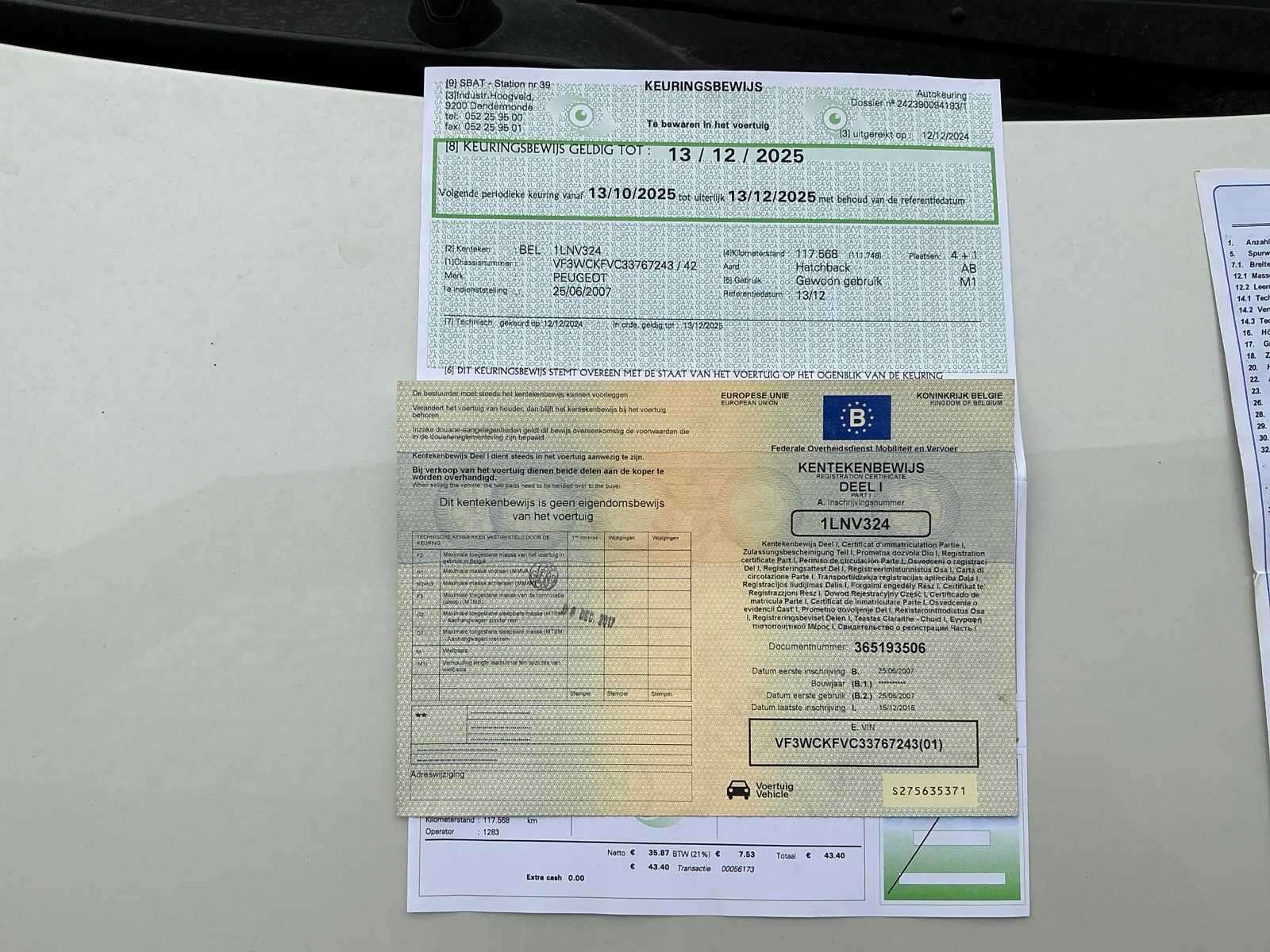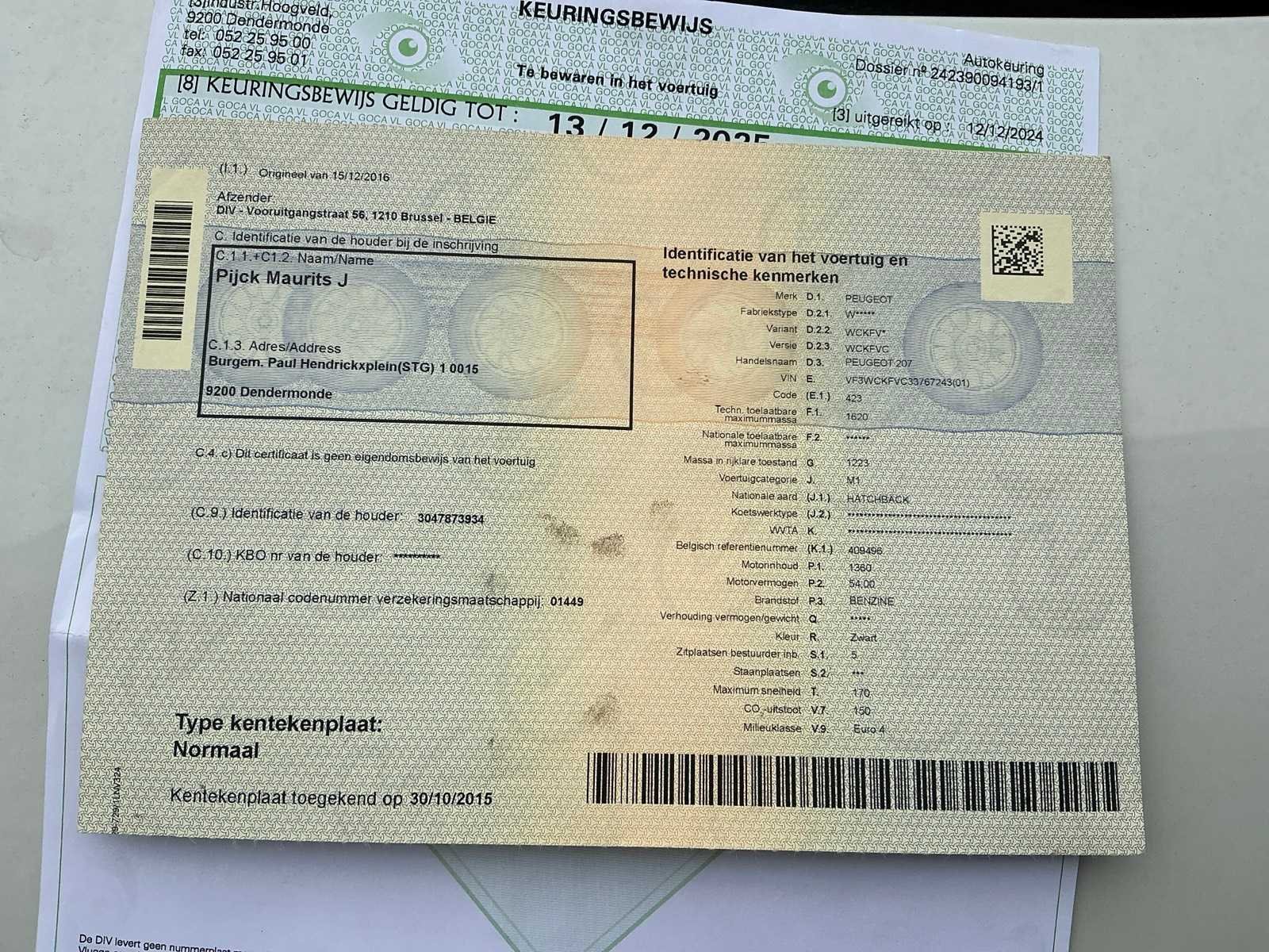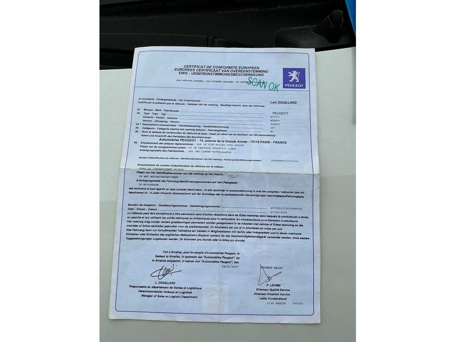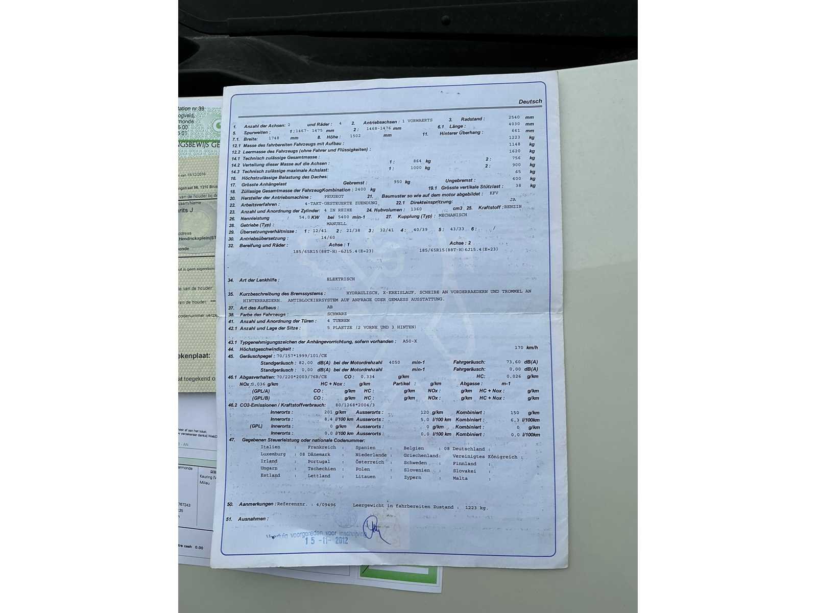 Inschrijvingsbewijs deel 1, niet aanwezig, gelijkvormigheidsattest niet aanwezig Nee Merk: Peugeot Model: 207 Bouwjaar: 2007 Afgelezen kilometerstand: 118996km Cilinderinhoud: 1360cc Vermogen (kW): 54kW Brandstof: benzine Chassisnummer: Vf3wckfvc33767243 Aantal deuren: 5 Technische fiche: true Inschrijvingsbewijs - deel 1 : Aanwezig Inschrijvingsbewijs - deel 2: Aanwezig
