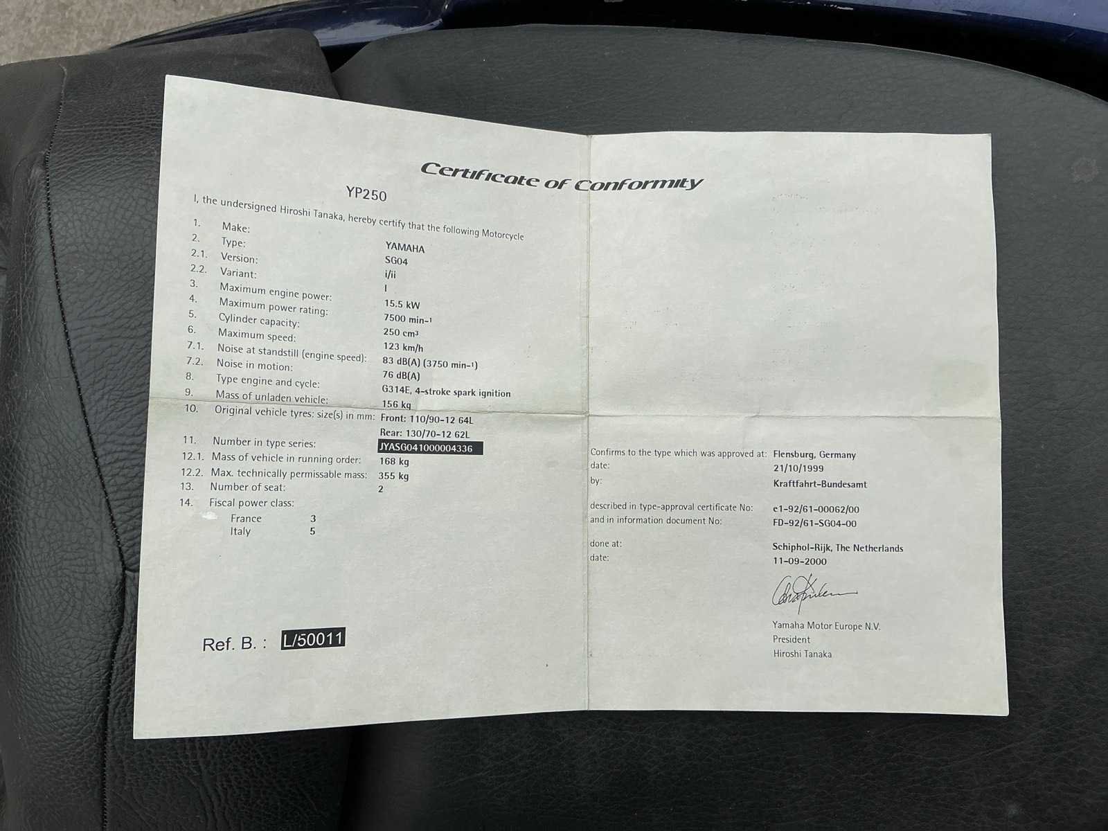 Nee Merk: Yamaha Model: Majesty Type: Sg04 Chassisnummer: Jyasg041000004336 Datum eerste toelating: 03/07/2001 Brandstof: Benzine