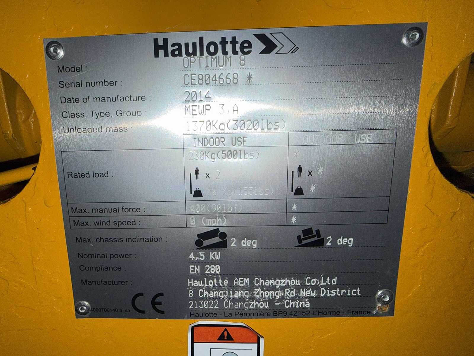 Nee Merk: Haulotte Type: Optimum 8 Bouwjaar: 2014 Serienummer: CE804668 Elektrisch: true Motorvermogen (kW): 4.5kW Schaarhoogwerker: true Werkhoogte: 7750mm Plateau afm. l: 1900mm Plateau afm. b: 700mm Platform capaciteit: 230kg Accu lader: true Afgelezen urenstand: 540 Eigen gewicht: 1320kg Totale afmeting L: 1900mm Totale afmeting Breedte: 760mm Totale afmeting Hoogte: 2000mm Leveringsvoorwaarden: Geladen op vrachtwagen