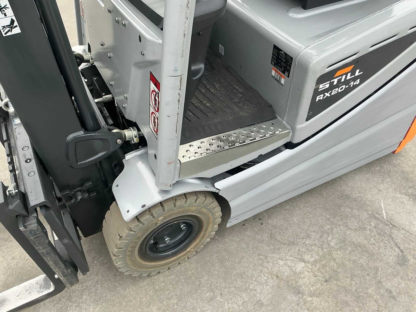 Led werklichten voor en achter , blue spot , flash light ,verlichte documenten houder , no marking banden Nee Merk: Still Type: RX20-14C Bouwjaar: 2020 Serienummer: 516219X00191 Brandstof: Elektrisch Mast: Single Soort band: Volrubber banden Aantal wielen: 4 Afgelezen urenstand: 6350 Free-lift: true Side-shift: true Eigen gewicht: 2910kg Hefvermogen: 1400kg Lepellengte: 1150mm Min. hefhoogte: 0mm Max. hefhoogte: 3400mm Vol rubber banden: true Totale afmeting L: 1950mm Totale afmeting Breedte: 1120mm Totale afmeting Hoogte: 2150mm Leveringsvoorwaarden: Gratis op vrachtwagen