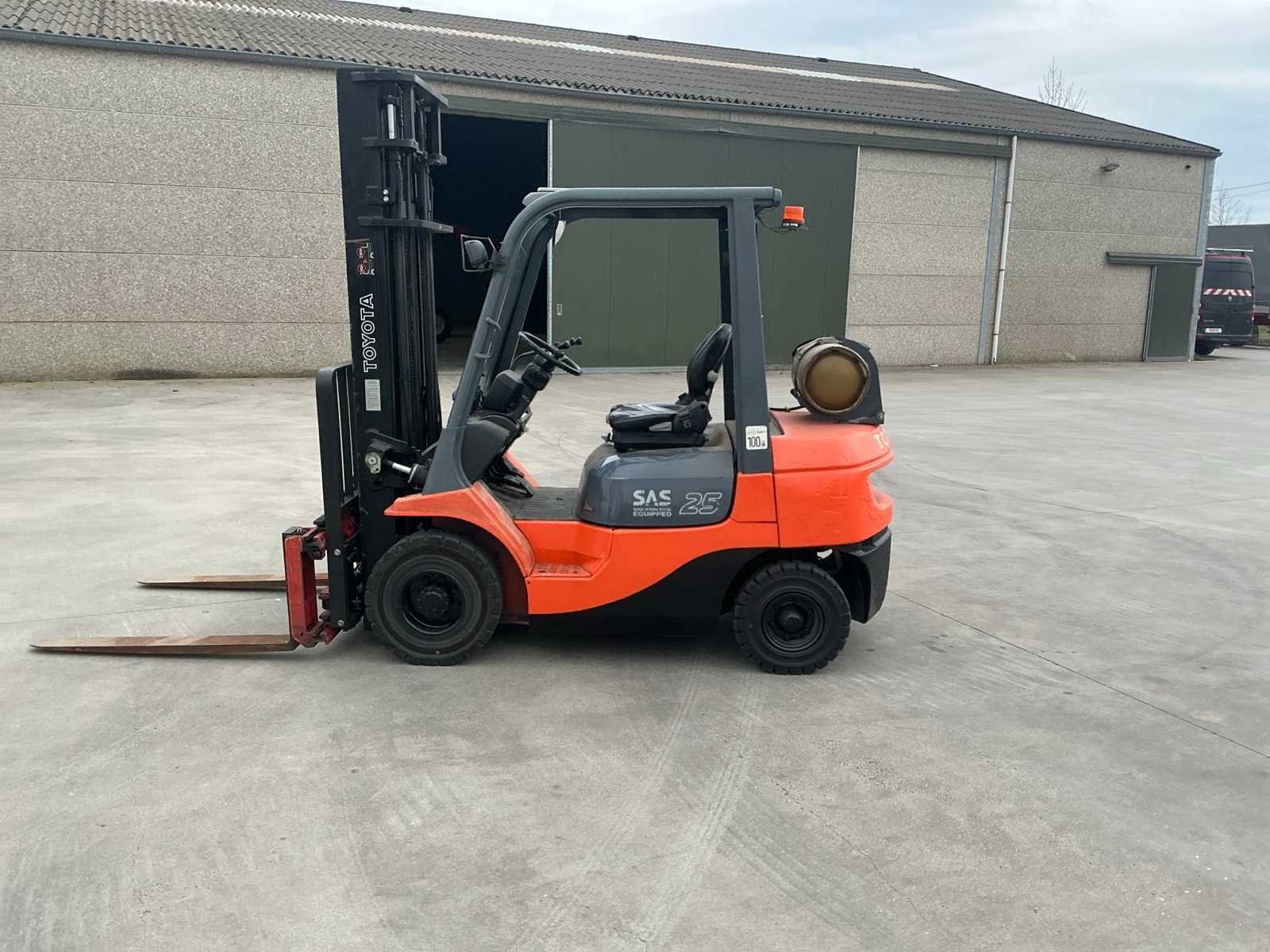 Bolzoni Auramo side shift vorkversteller, werklichten voor , flash light , gold edition Nee Merk: Toyota Type: 42-7FGF25 Bouwjaar: 2007 Serienummer: 407FGF25 19606 Brandstof: LPG Mast: Duplex Soort band: Volrubber banden Aantal wielen: 4 Afgelezen urenstand: 6700 Side-shift: true Hydraulisch verstelbare lepels: true Duplex mast: true Eigen gewicht: 3960kg Hefvermogen: 2500kg Lepellengte: 1200mm Min. hefhoogte: 0mm Max. hefhoogte: 4000mm Vol rubber banden: true Totale afmeting L: 2600mm Totale afmeting Breedte: 1150mm Totale afmeting Hoogte: 2500mm Leveringsvoorwaarden: Gratis op vrachtwagen