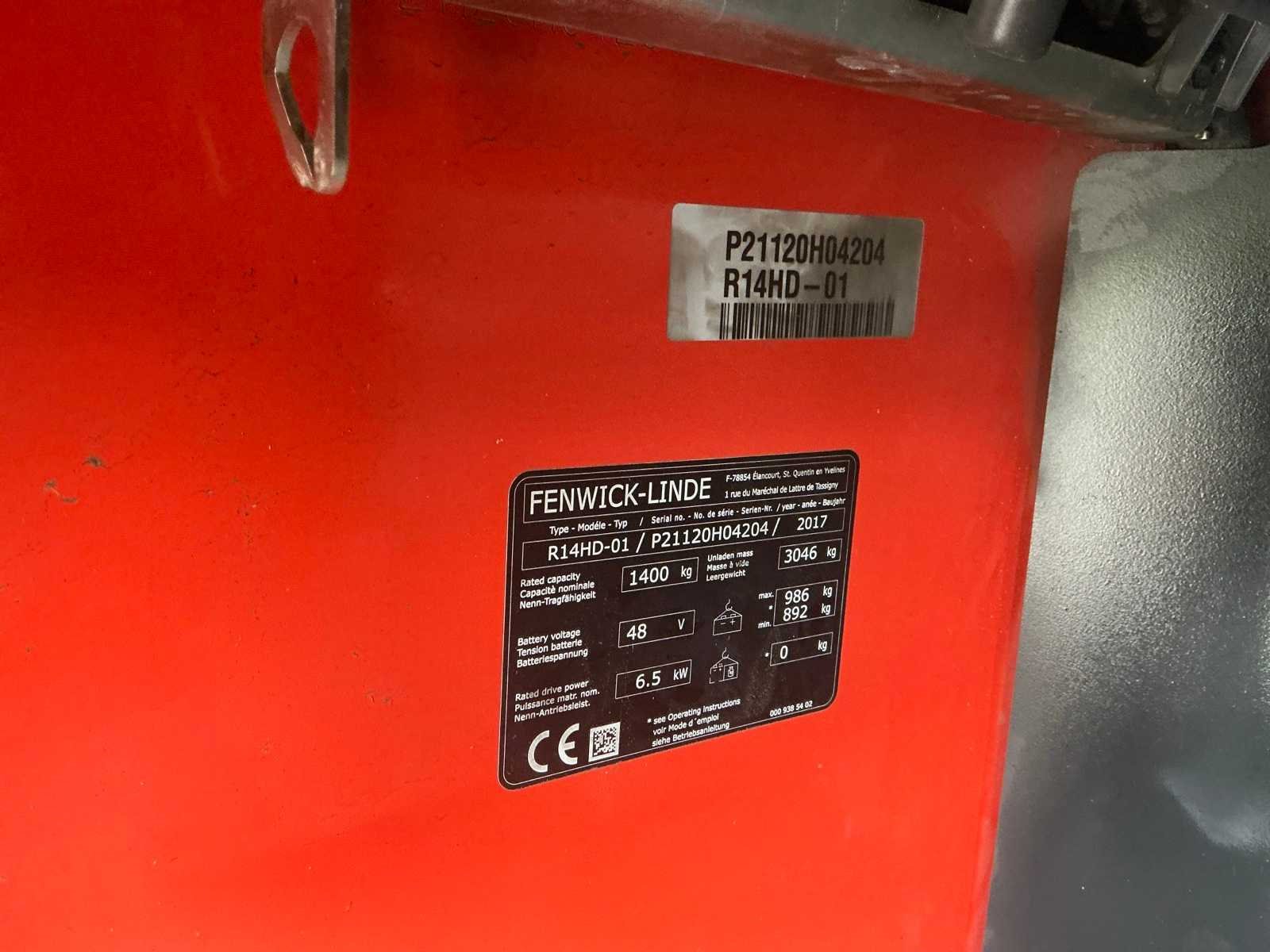 Accu met automatische vulling , blue spot , flash light , 12V voeding , Nee Merk: Linde Type: R14HD-01 Bouwjaar: 2017 Serienummer: P21120H04204 Afgelezen urenstand: 1530 Side-shift: true Triple mast: true Eigen gewicht: 4000kg Hefvermogen: 1400kg Lepellengte: 1150mm Min. hefhoogte: 0mm Max. hefhoogte: 8950mm Totale afmeting L: 1800mm Totale afmeting Breedte: 1270mm Totale afmeting Hoogte: 3700mm Elektrisch: true Vol rubber banden: true Leveringsvoorwaarden: Gratis op vrachtwagen