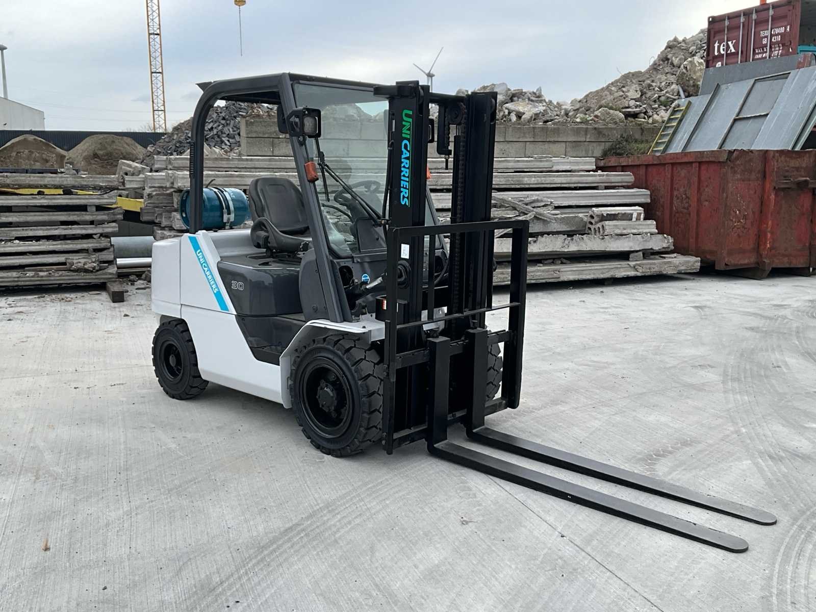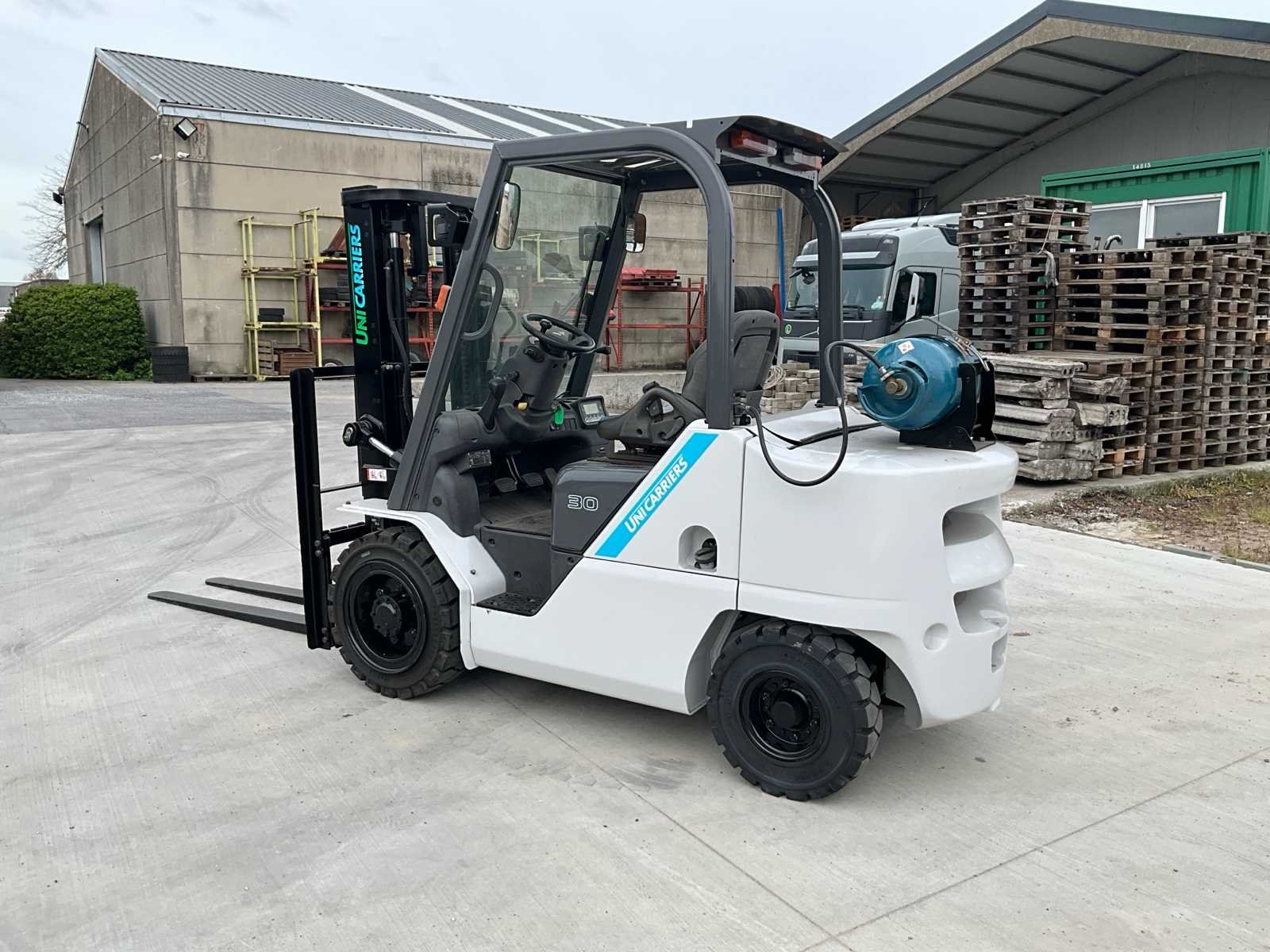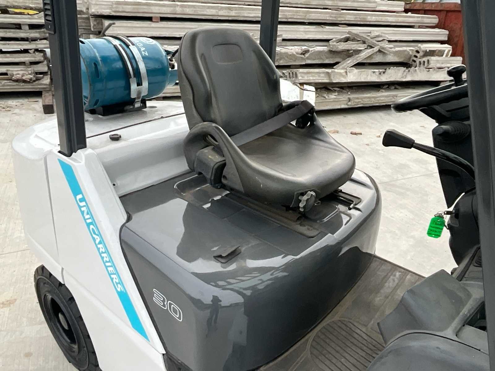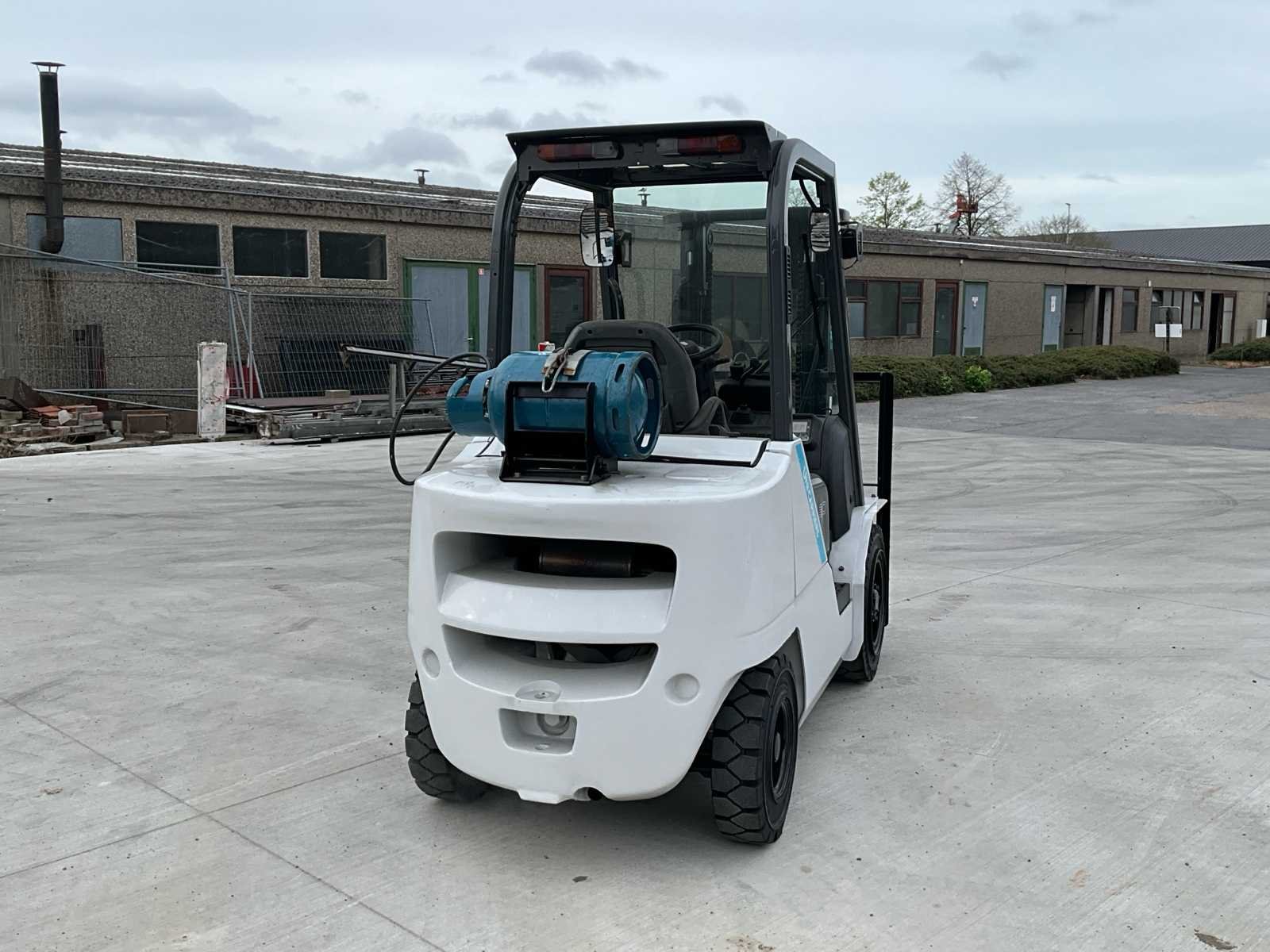 Unicarriers TCM FHGE30T5 LPG heftruck in werkende staat. -Volledig nagezien en gekeurd -Bouwjaar 2016 -Hefvermogen 3000kg -Hefhoogte 3 mtr -Duplex mast -Nieuwe volle banden No Merk: Uni Carriers Type: FHGE30T5/EBT-F186L Bouwjaar: 2016 Brandstof: LPG Aantal wielen: 4 Afgelezen urenstand: 12600 Duplex mast: true Eigen gewicht: 4340kg Hefvermogen: 3000kg Hefhoogte: 3000mm Vol rubber banden: true LPG: true
