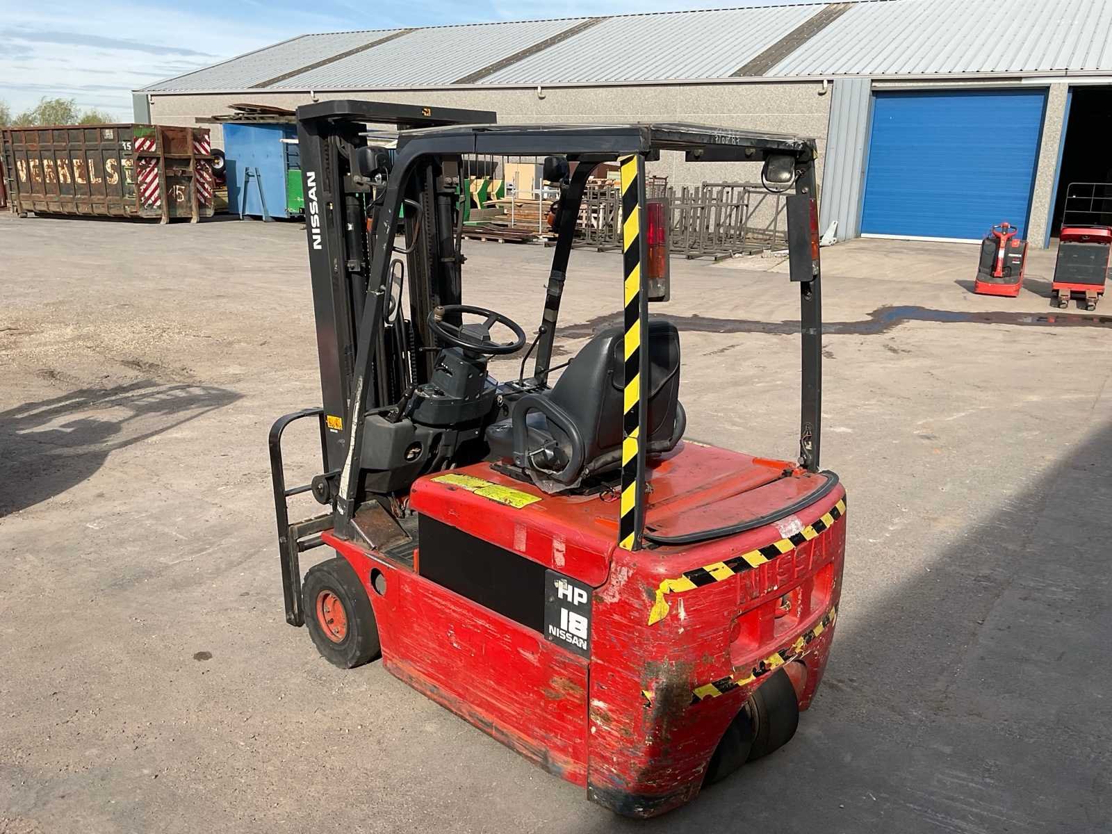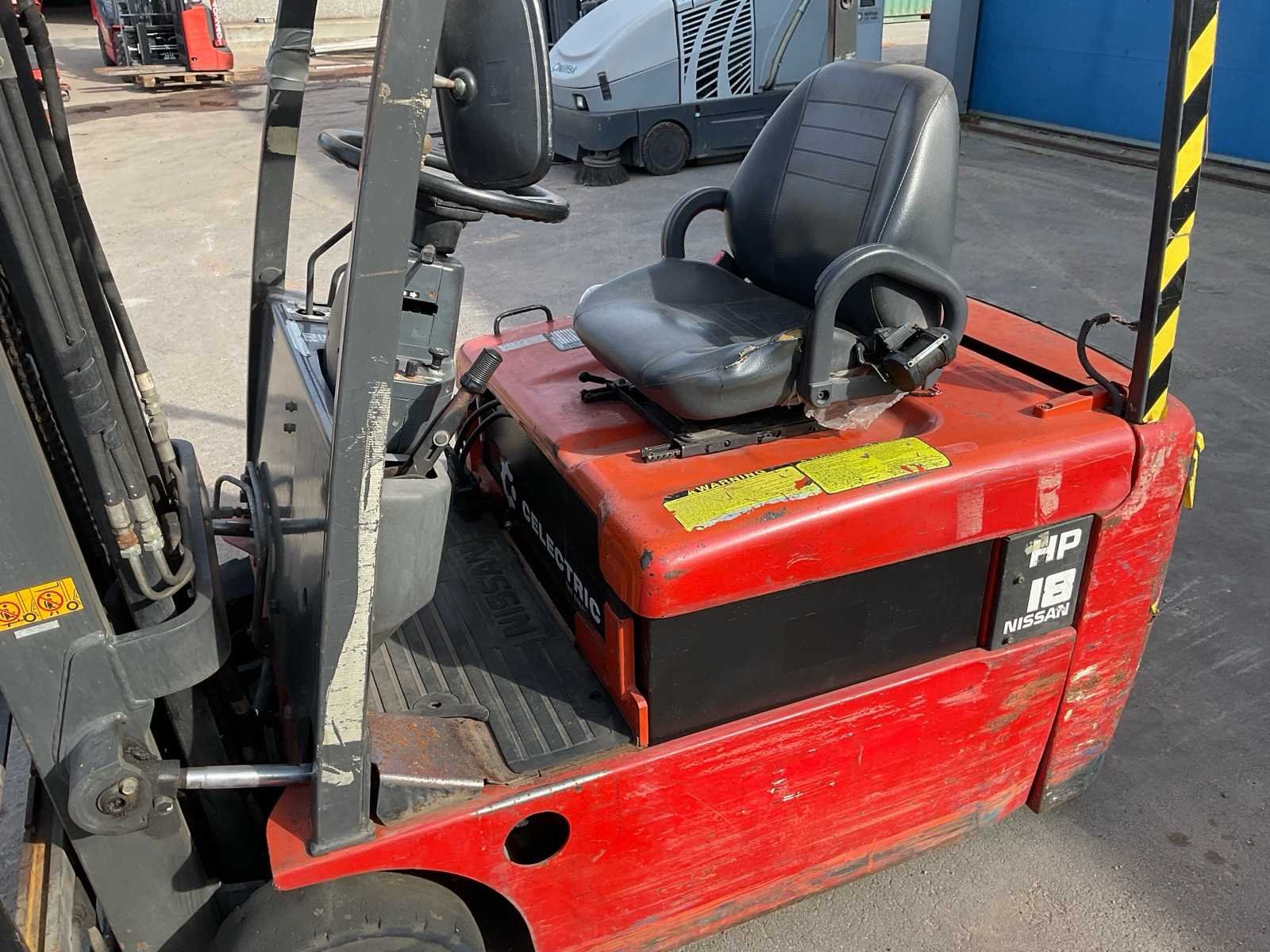 Nieuwe batterij, stuurloos defect No Merk: Nissan Type: HP18 Bouwjaar: 2000 Serienummer: E710087 Brandstof: Electisch Mast: Duplex Soort band: Vol Aantal wielen: 3 Afgelezen urenstand: 6773