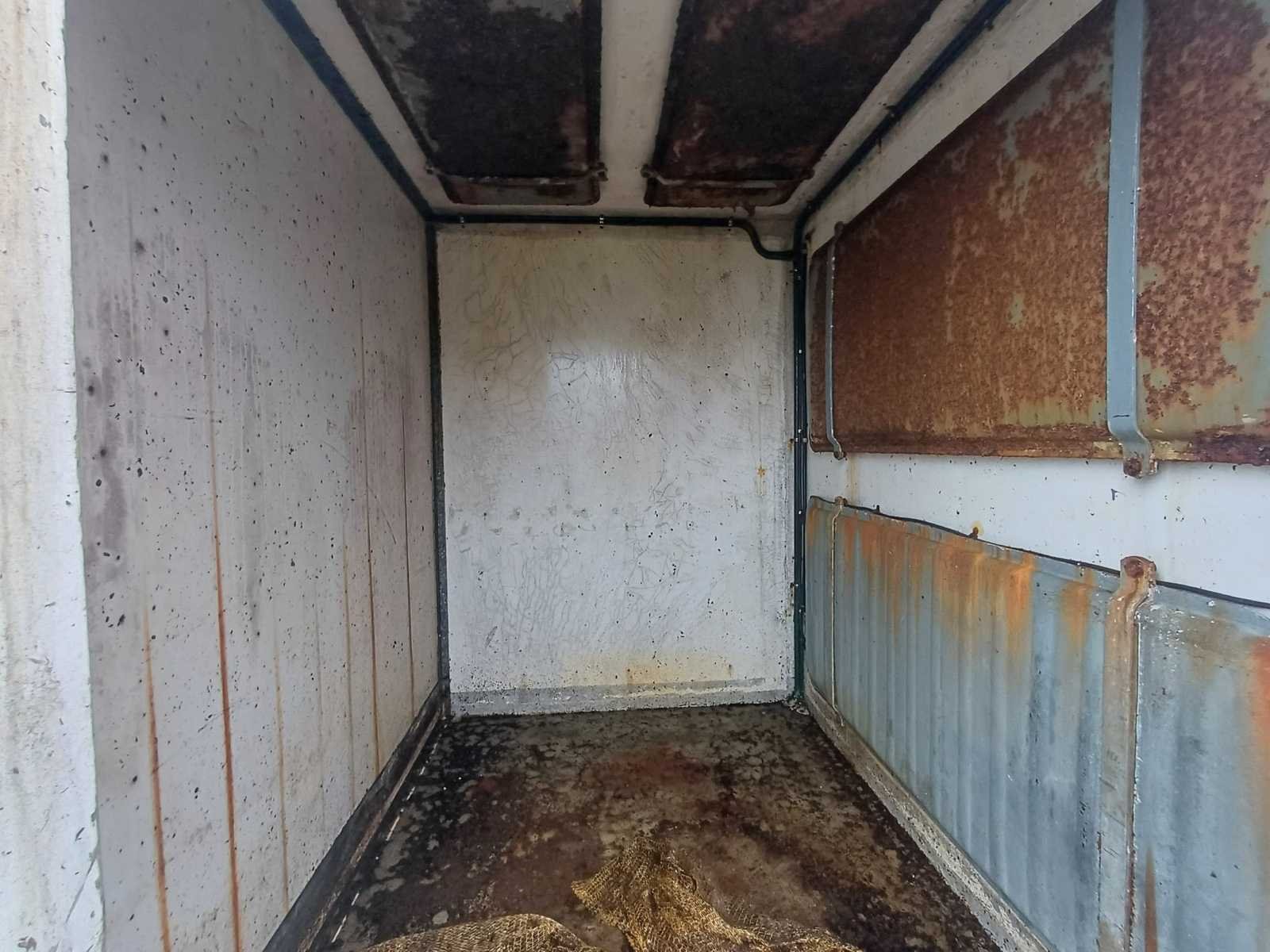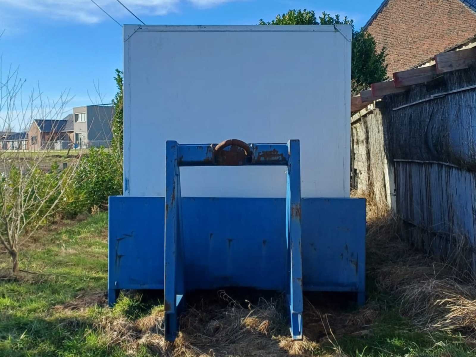 Dit lot wordt verkocht in combinatie. Containerplateau + opslagunit. (Unit bestaat uit 2 compartimenten, kan nog gebruikt worden als opslagunit of ombouw naar keuze.)// van op de grond gemeten tot bovenkant van de box is het 2m65cm hoog en de lengte van de container is +- 5m50 Nee Totale afmeting L: 5500mm Totale afmeting Hoogte: 2650mm