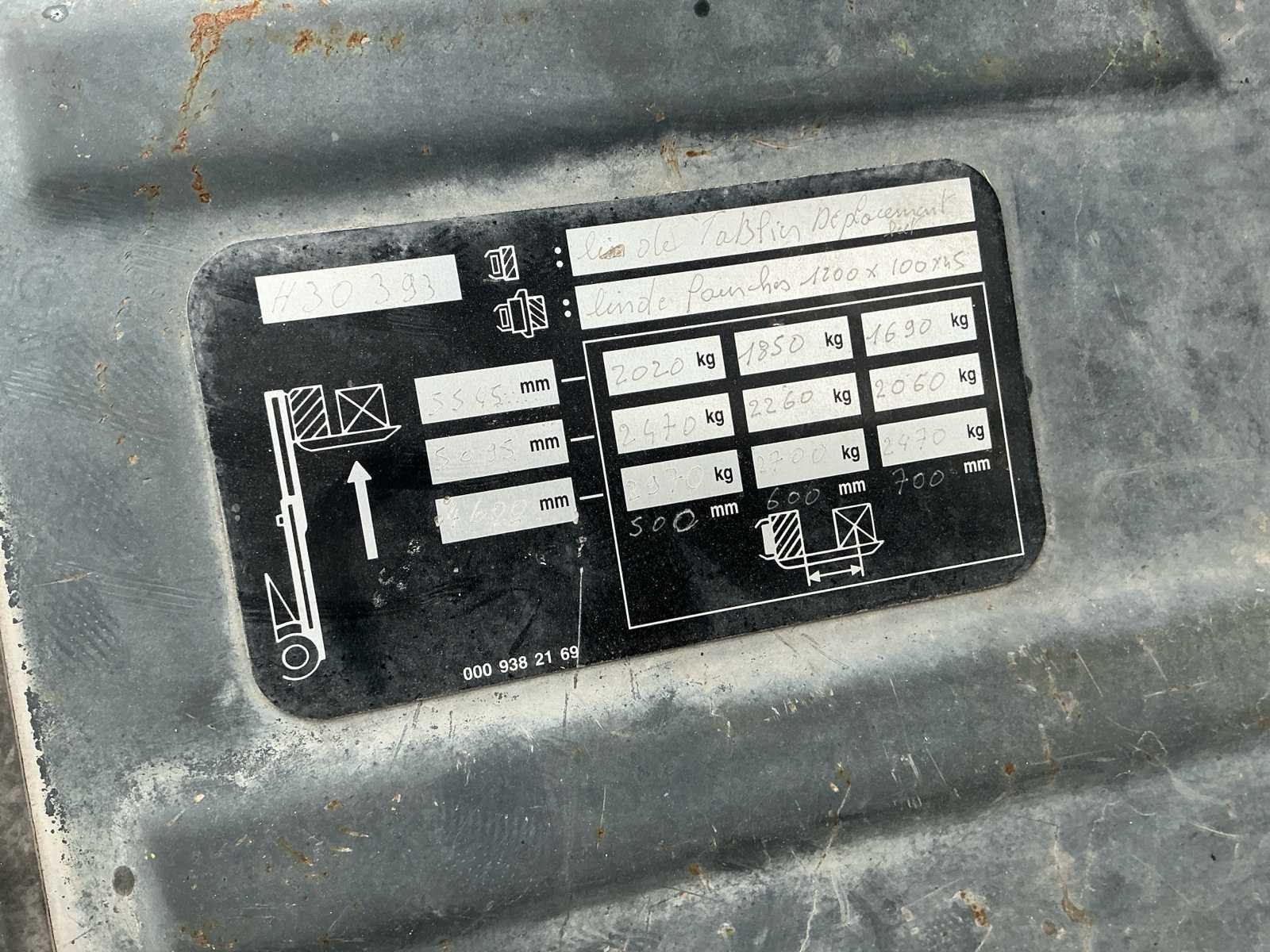 No Merk: Linde Type: H30D-02 Bouwjaar: 2016 Serienummer: 03001 Brandstof: Diesel Mast: Tripple Soort band: Volrubber Aantal wielen: 4 Afgelezen urenstand: 7372 Eigen gewicht: 4860kg Hefvermogen: 3000kg Max. hefhoogte: 5545mm Vol rubber banden: true Minimale doorrijhoogte: 2500mm Diesel: true