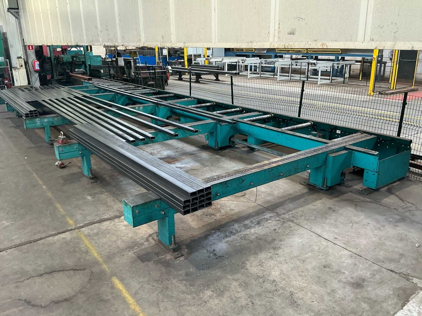Te koop aangeboden: complete Kaltenbach profielbewerkingslijn bestaande uit bandzaag en boorinstallatie, geschikt voor staalconstructie en seriematige bewerking van profielen. (VIDEO toegevoegd!) 🔧 Samenstelling van de lijn • Bandzaag: Kaltenbach KBS 620 DG • Boorunit: Kaltenbach KDE 603 (3-assig) • Besturing: Kaltenbach Profiline III • Inclusief rollenbanen / transportsysteem Aanvoerband van 13 meter + Afvoerband van 12 meter (Totale lengte ongeveer 35 meter). ⚙️ Technische kenmerken • Zaagcapaciteit: tot ca. 620 mm • Verstekzagen mogelijk ( 45° & 30° ) • Boorunit met 3 onafhankelijke assen (X/Y/Z) - Elektrisch nazicht nodig! • Geschikt voor H-, I-, U-profielen en kokers • CNC-aansturing (DSTV compatibel) • Voeding: 3x 400V / 50 Hz ✅ Staat van de machine • Bandzaag: operationeel (video) • Rollenbanen / transport: operationeel • Besturingssysteem: functioneel – software vernieuwd ca. 2 jaar geleden • Boorunit: mechanisch in orde, elektrisch defect (na te kijken) 🔍 Algemene conditie Machine is gebruikt in productieomgeving en vertoont normale gebruikssporen. Robuuste industriële uitvoering, geschikt voor revisie of directe inzet (zaaglijn). ⚠️ Bijzonderheden • Boorunit momenteel niet operationeel wegens elektrisch defect • Verdere technische controle aanbevolen voor ingebruikname • Koper verantwoordelijk voor afbraak en transport! Liften en transportmachines aanwezig ter plaatsen als hulp. <b> • OPGELET!! AFHALING MOET VOORZIEN WORDEN WEEK 34 - 35 (augustus) of bespreekbaar met verkoper. No Merk: Kaltenbach Type: KBS 620 DG + KDE 603 Bouwjaar: 2005 Max. werkstukhoogte: 500mm Werkbreedte: 1010mm Digitale uitlezing: true Aansluiting: 400V