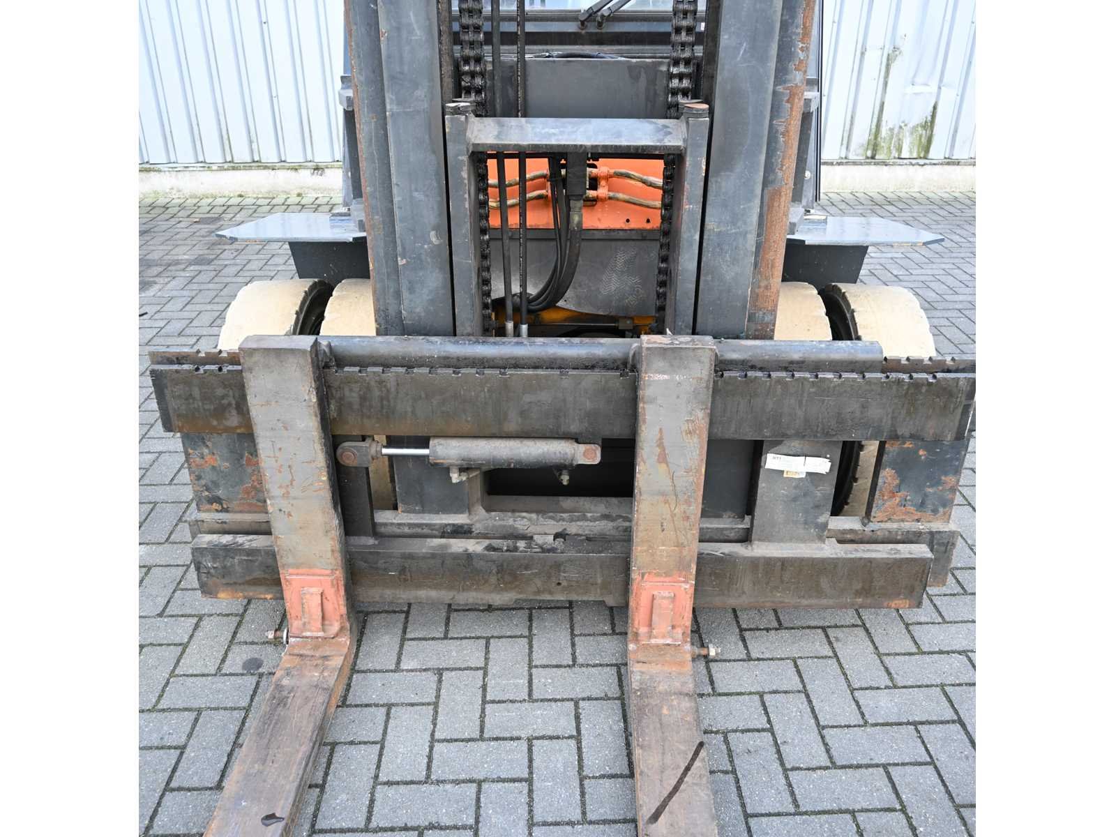 Nee Merk: Jungheinrich Type: TFG 80 Bouwjaar: 1997 Brandstof: LPG Mast: Standaard Aantal wielen: 4 Afgelezen urenstand: 7226 Side-shift: true Hefvermogen: 8000kg Max. hefhoogte: 4500mm Vol rubber banden: true Minimale doorrijhoogte: 3400mm LPG: true Leveringsvoorwaarden: Gratis op vrachtwagen