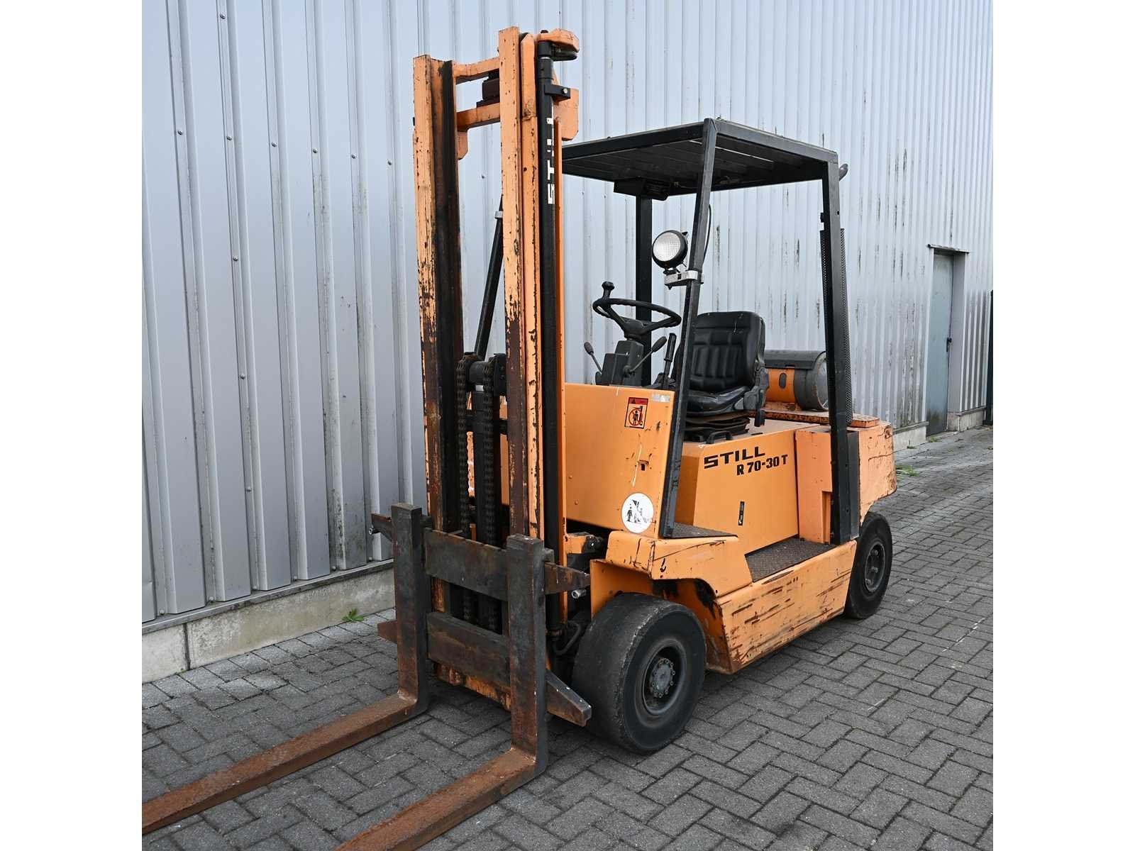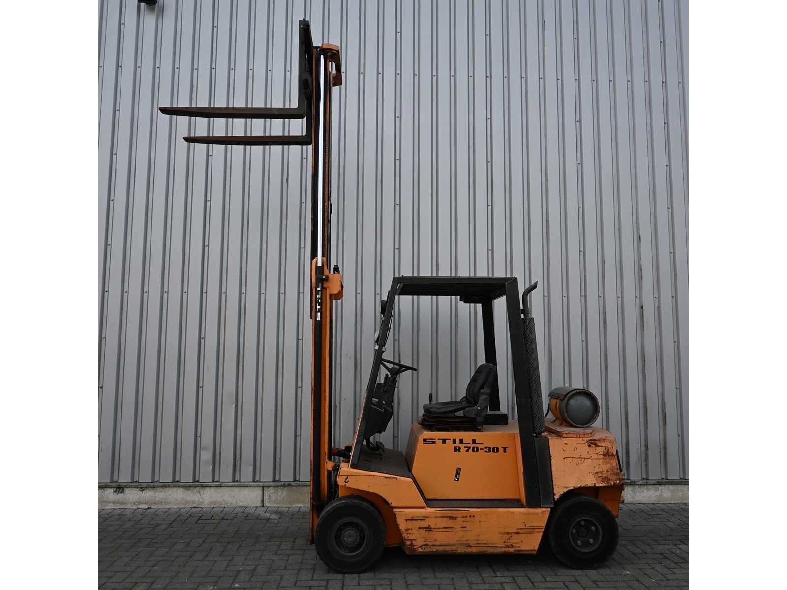 - 2 Delige duplex mast Nee Merk: Still Type: R70-30T Bouwjaar: 1990 Brandstof: LPG Mast: Duplex Soort band: Vol rubber Aantal wielen: 4 Afgelezen urenstand: 7959 Free-lift: true Hefvermogen: 3000kg Hefhoogte: 3550mm Minimale doorrijhoogte: 2400mm LPG: true Leveringsvoorwaarden: Gratis op vrachtwagen