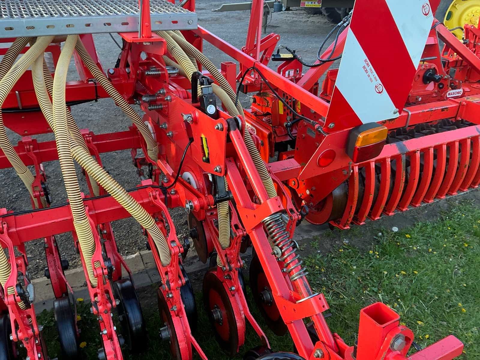 Nieuwe tanden , aftakas met nokken koppeling , combi packerwals , lift ( niet voor zaaimachine ) , verlichting , drukwieltjes , 24 uitgangen , goeie lei vrije rotoreg voor tractoren tot 300Pk Nee Merk: Maschio Type: Orso 3000 Serienummer: 1398R0323 Werkbreedte: 3000mm Markeur: true Sectie afsluiting: true Zaaicomputer: true Eigen gewicht: 2866kg Totale afmeting L: 3500mm Totale afmeting Breedte: 3100mm Totale afmeting Hoogte: 2800mm