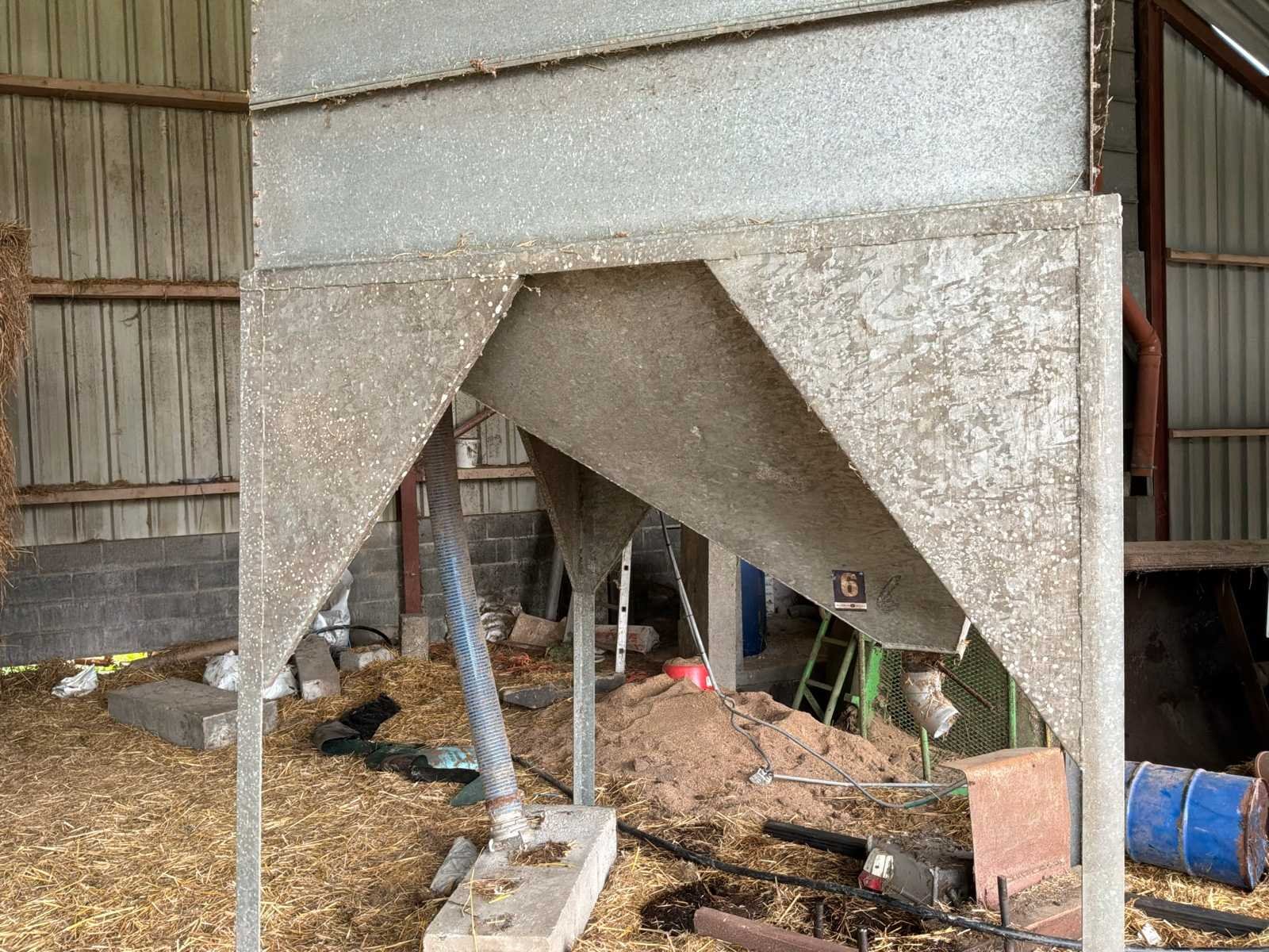 Metalen silo 2m Capaciteit: 10 m² (7 ton) Non Totale afmeting L: 2000mm Totale afmeting Breedte: 2000mm Totale afmeting Hoogte: 5000mm