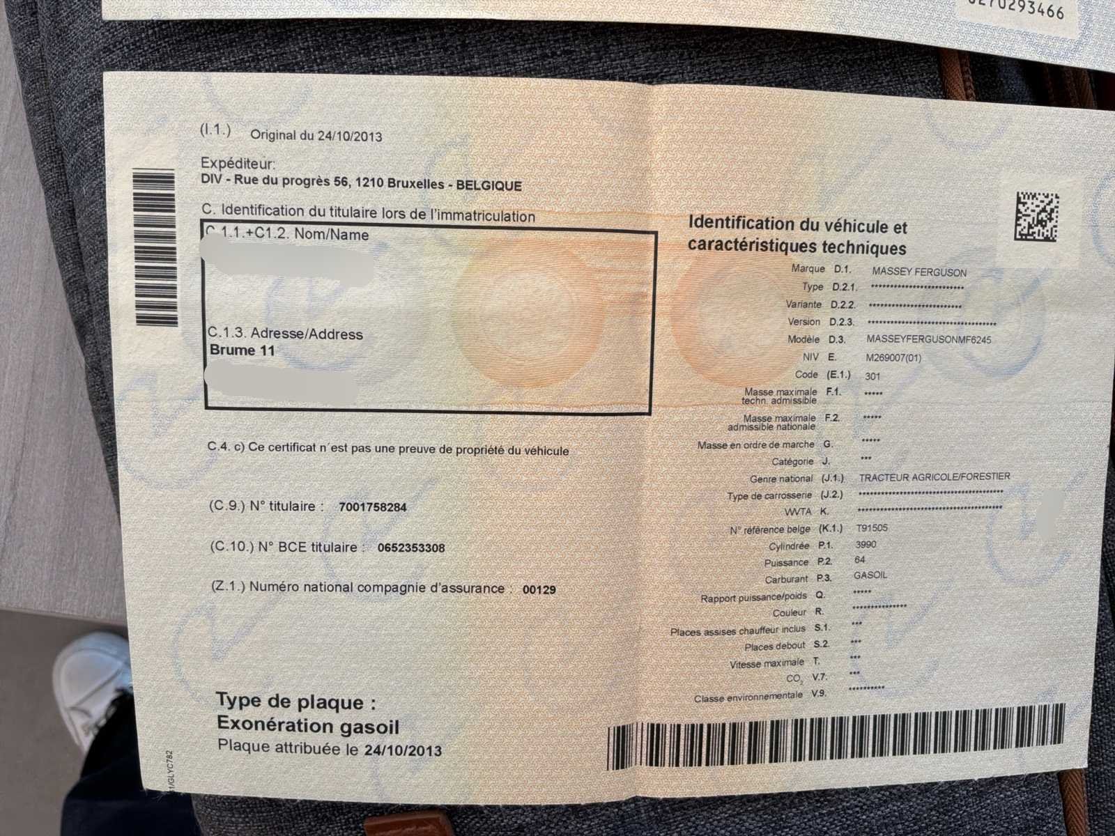 +- 5500h (nieuwe meter geplaatst in 2026) 2 achterste dubbelwerkende spoelkleppen Michelin 600/65R38 en 480/65R28 banden No Merk: Massey-Ferguson Type: 6245 Power control Bouwjaar: 2003 Serienummer: M269007 Motorvermogen (kW): 64kW Afgelezen urenstand: 5500 Bandenmaat voor: 480/65R28 Bandenmaat achter: 600/65R38 Cabine: true