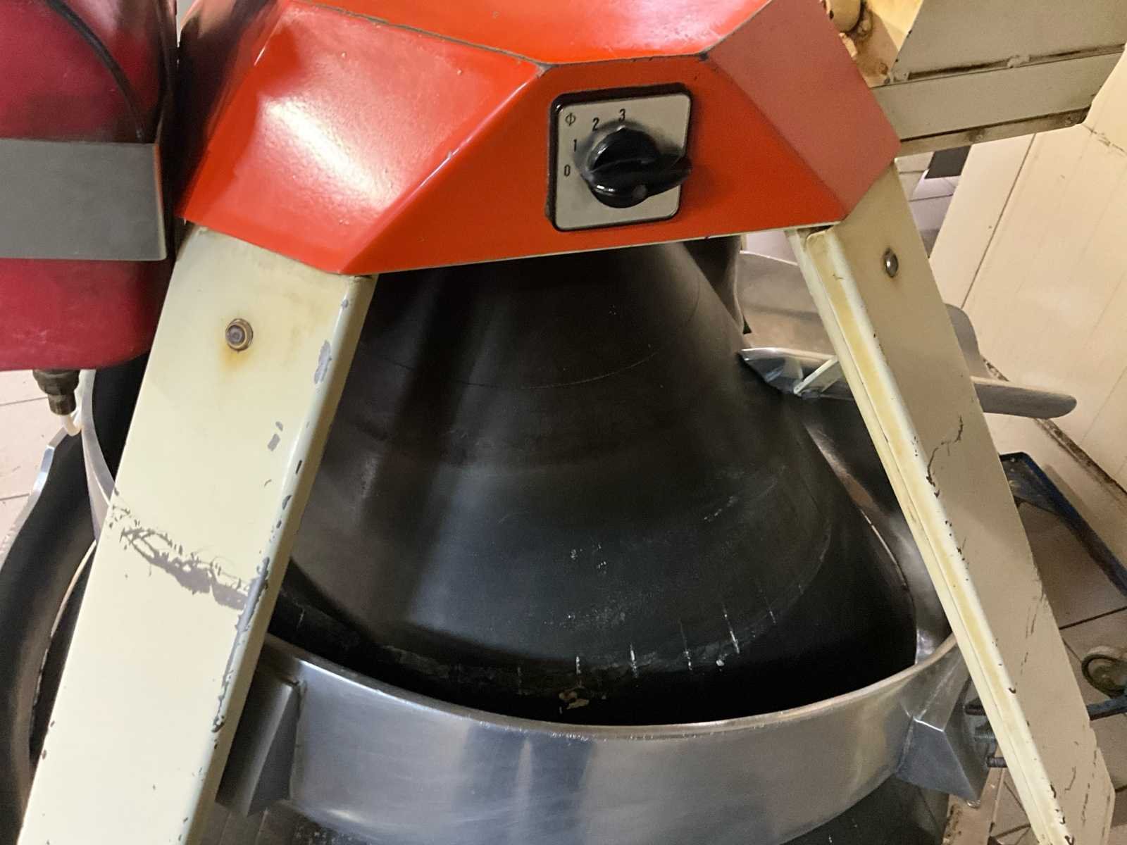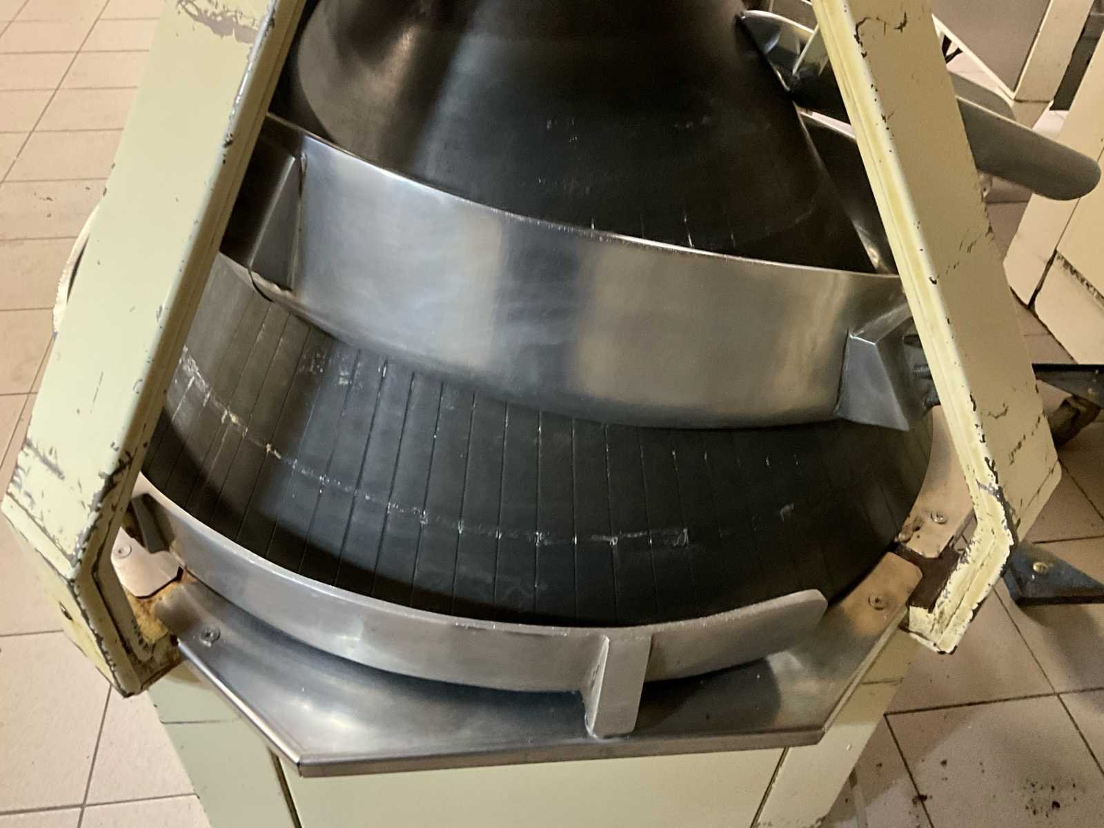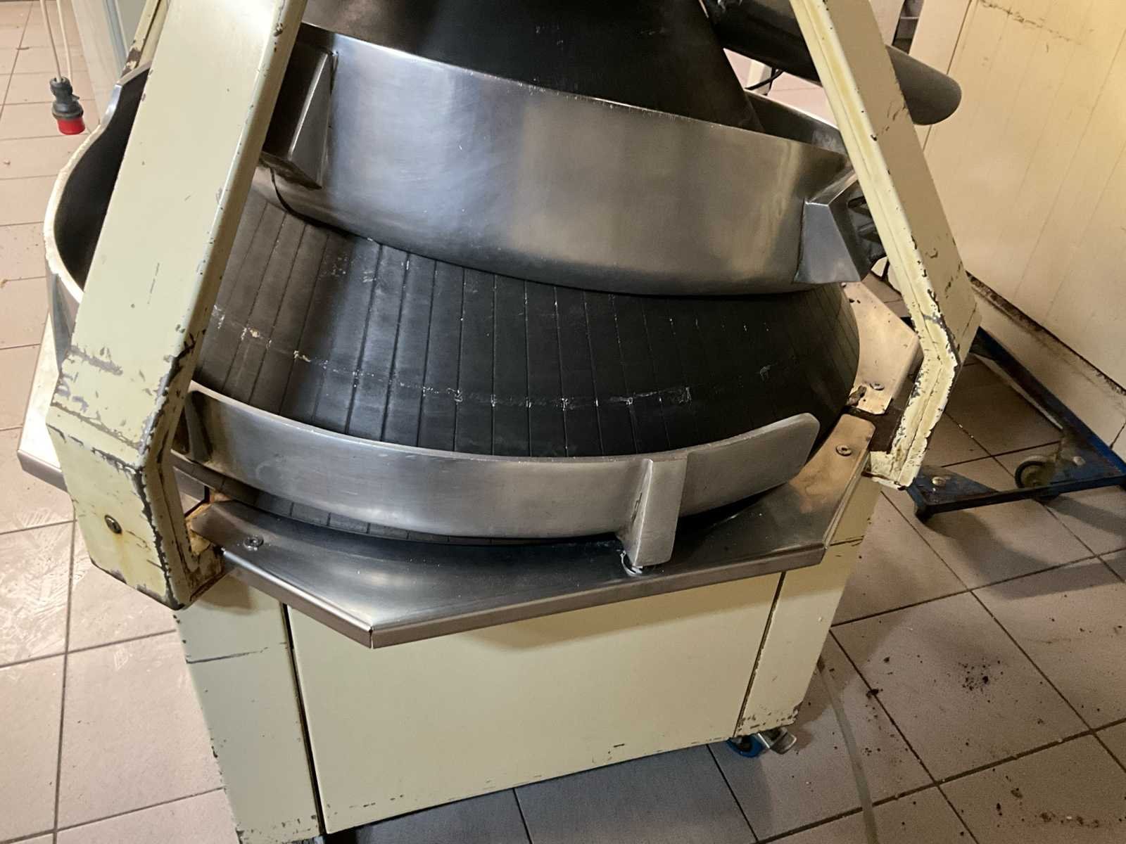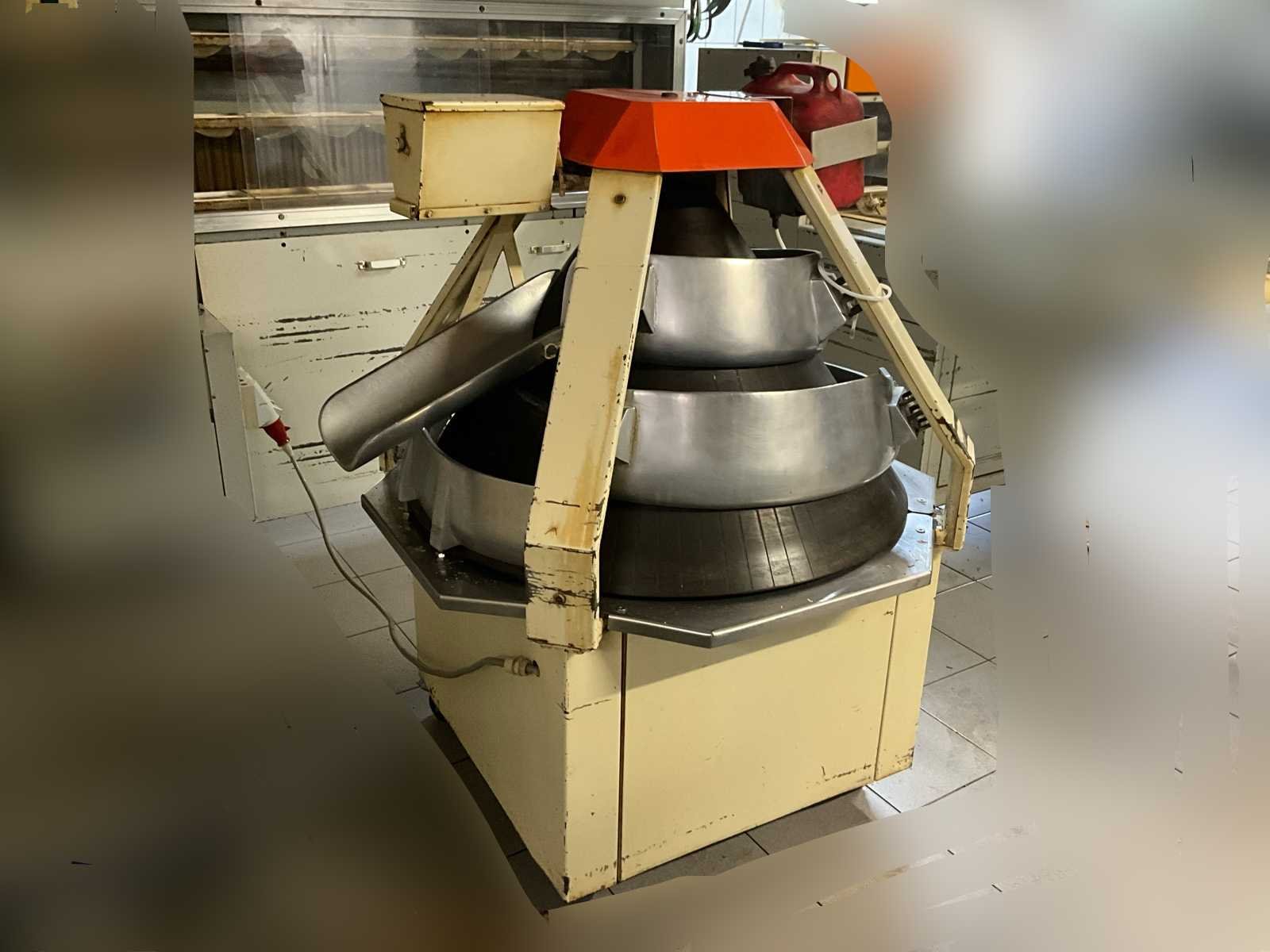 Professionele kegelopboller (deegopboller) voor het automatisch opbollen van deegstukken tot mooie, egale bollen. Machine is werkend en direct inzetbaar, ideaal voor gebruik in een bakkerij of productieomgeving. 👉 Perfect te combineren met een deegafweger voor een volledige productielijn. ⚙️ Technische gegevens Type: Kegelopboller / deegopboller Voeding: 380V (krachtstroom) Vermogen: ± 2.0 kW Typeplaat: CR 21 (zie foto) Herkomst: Bakkerijtechniek (NL) 🔧 Eigenschappen ✔️ Kegelvormige opbolbaan voor gelijkmatige bolvorming ✔️ Instelbare snelheid (draaischakelaar aanwezig) ✔️ Automatische smering (olievoorziening aanwezig) ✔️ RVS geleiders en baan ✔️ Compact en robuust industrieel model ✔️ Verrijdbaar 📦 Staat Gebruikt, maar functioneel Normale gebruikssporen (zie foto’s) Mechanisch in orde No Aansluiting: 380V
