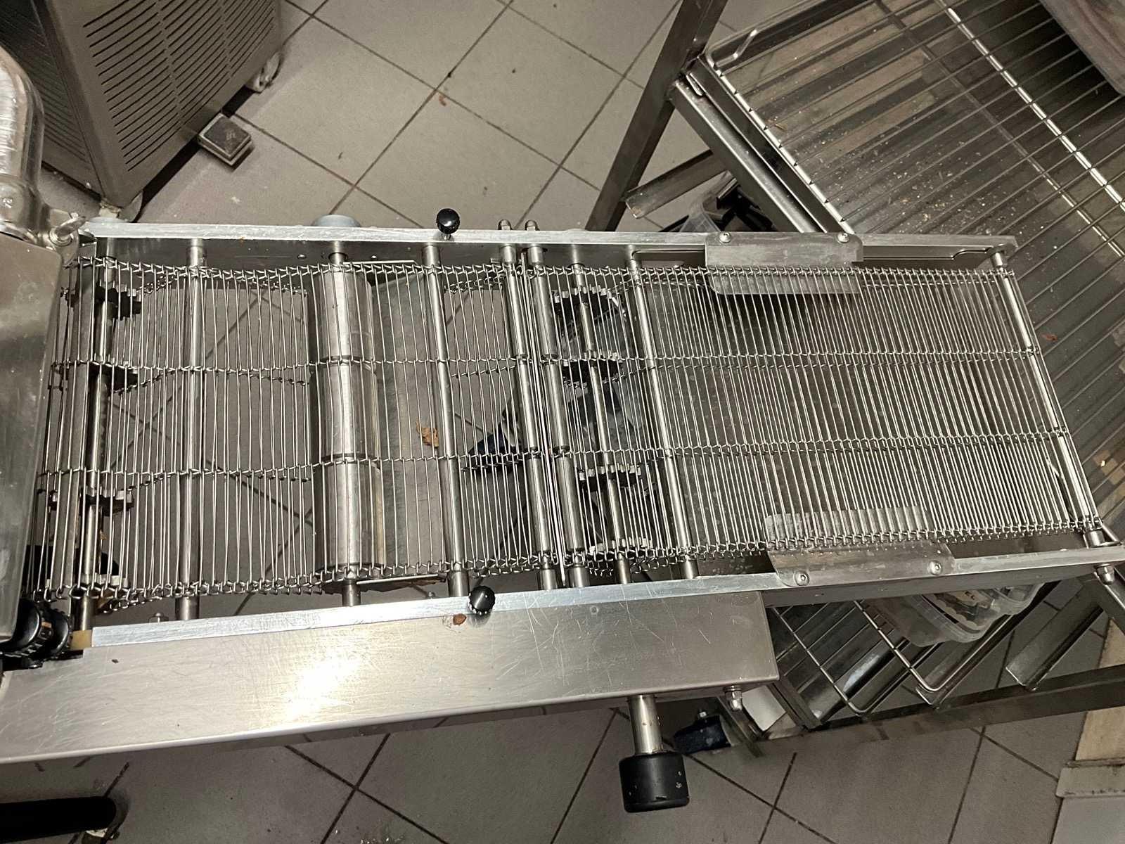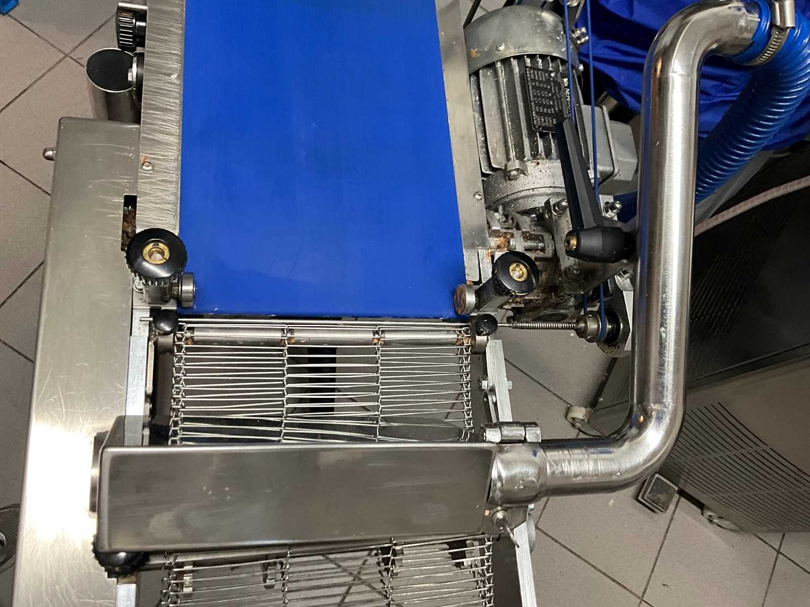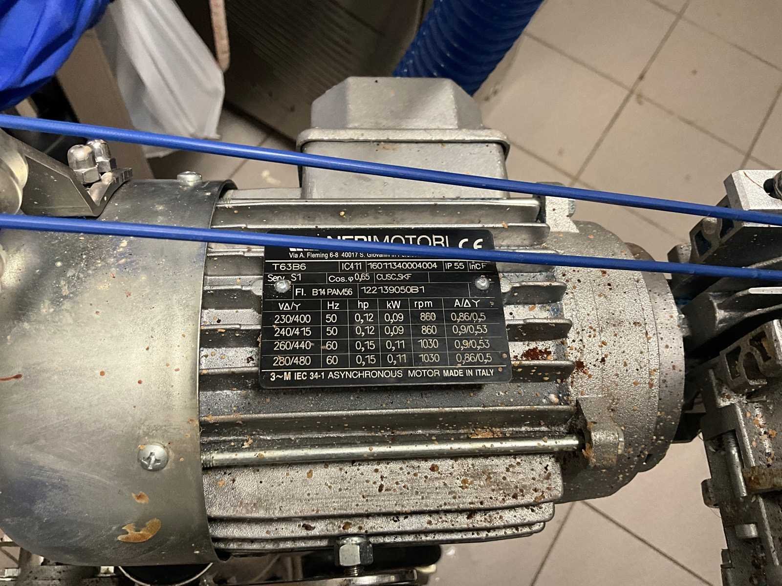 Professionele Selmi R200 Legend enrobeerband voor chocolade, geschikt voor gebruik in chocolaterie, patisserie of ambachtelijke productie. Deze machine wordt gebruikt in combinatie met een tempereermachine voor het omhullen (enroberen) van pralines, koekjes en andere producten met chocolade. Professionele Selmi R200 enrobeerband (±120-140 cm lengte, 20 cm werkbreedte), geschikt voor aansluiting op Selmi tempereermachines. Compact formaat, volledig RVS uitgevoerd, ideaal voor pralines, koekjes en klein banket.” 👉 Machine is werkend en in gebruikte staat. ⚙️ Specificaties & kenmerken: Merk: Selmi Type: R200 Legend Toepassing: chocolade enroberen / overgieten Band: transportband (blauw) met gaasband voor doorvoer Materiaal: RVS (inox) constructie Verrijdbaar: ja, op wielen - Inclusief: Enrobeerband, Aansluitstukken / slangen, Doseer- en opvangdelen - 2 nieuwe rollen papier 🔌 Technische gegevens (volgens typeplaatjes) Motor (Neri Motori): Vermogen: ca. 0,09 – 0,11 kW Voltage: 230V Frequentie: 50/60 Hz Toerental: ± 860 – 1030 rpm Bescherming: IP55 Pomp/motor (C.E.P.): Capaciteit: tot ca. 36–40 m³/u max Bedrijfstemperatuur: tot 40°C omgeving - Professionele industriële uitvoering 🧰 Functie & gebruik: Gelijkmatig overtrekken van chocoladeproducten Ideaal voor: Pralines, Koekjes, Gebak - Regelbare doorvoer via transportband - Geschikt voor continue productie Nee Merk: Selmi Type: R200 Legend