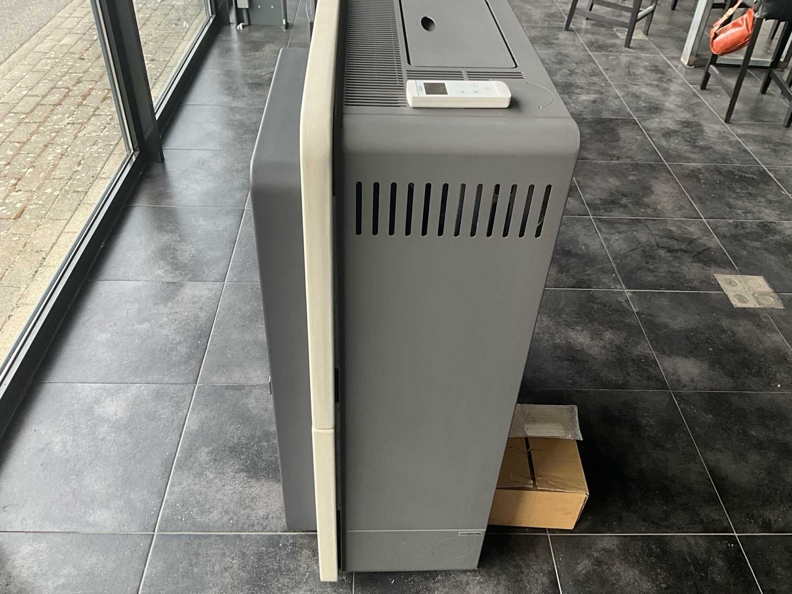Tweedelige pelletkachel, met bekleding in maiolica en deurafdeklijst in één element. Door de optie van warme lucht uitstroom aan de zijkant en de rookgasafvoer aan de bovenkant, achterkant of zijkant, biedt deze kachel een opmerkelijke installatieflexibiliteit. Eigenschappen: stalen constructie uit één stuk met deur in staal/gietijzer en brandkorf in gietijzer, maiolica bekleding, multifuoco system, dual power system, multifunctionele afstandsbediening, programmering, pelletniveausensor, luchtuitstroom aan voorkant of zijkant, rookgasafvoer achterkant, zijkant of rechts boven, energy-saving functie, eco-functie, ingebouwde bevochtiger, air glass system, easy cleaning, remote control system No Merk: Piazzetta Type: P937 Vrijstaand: true Achteraansluiting: true Lengte: 45 Breedte: 88 Hoogte: 120
