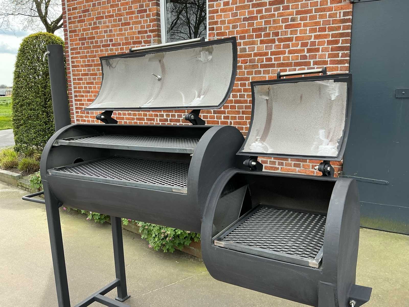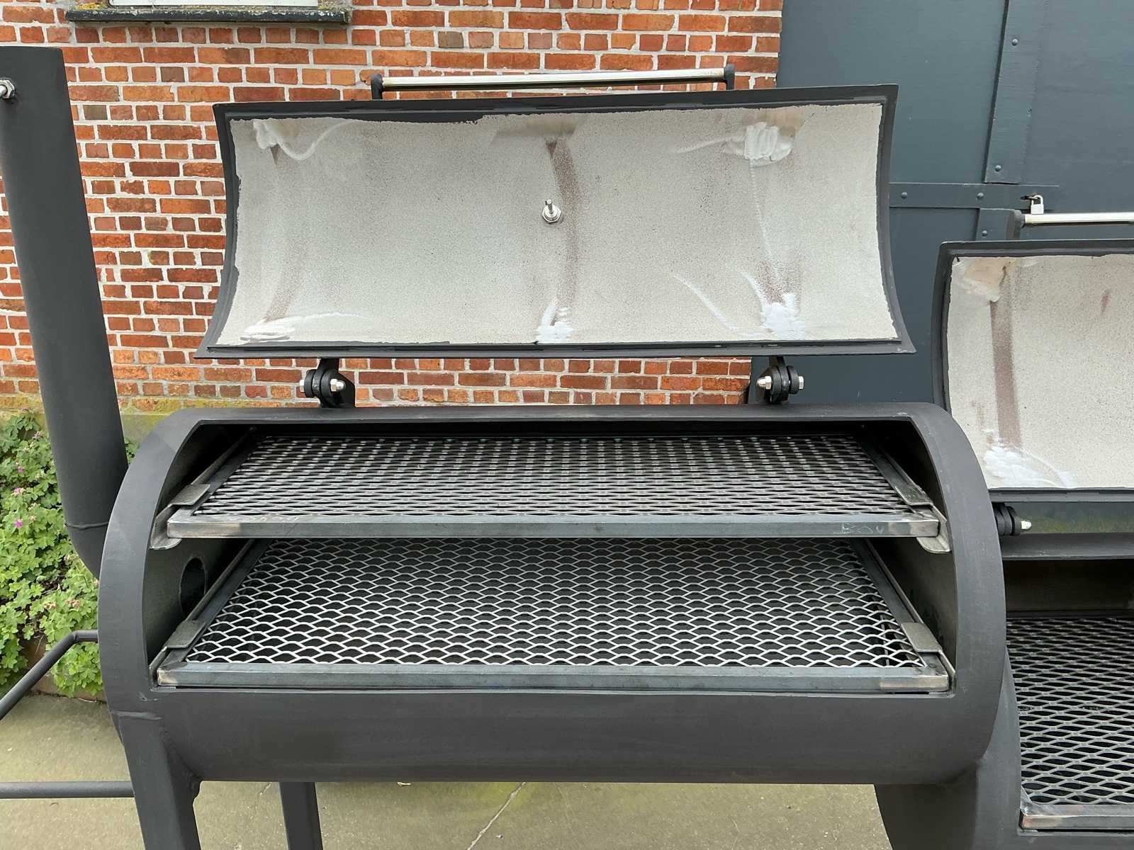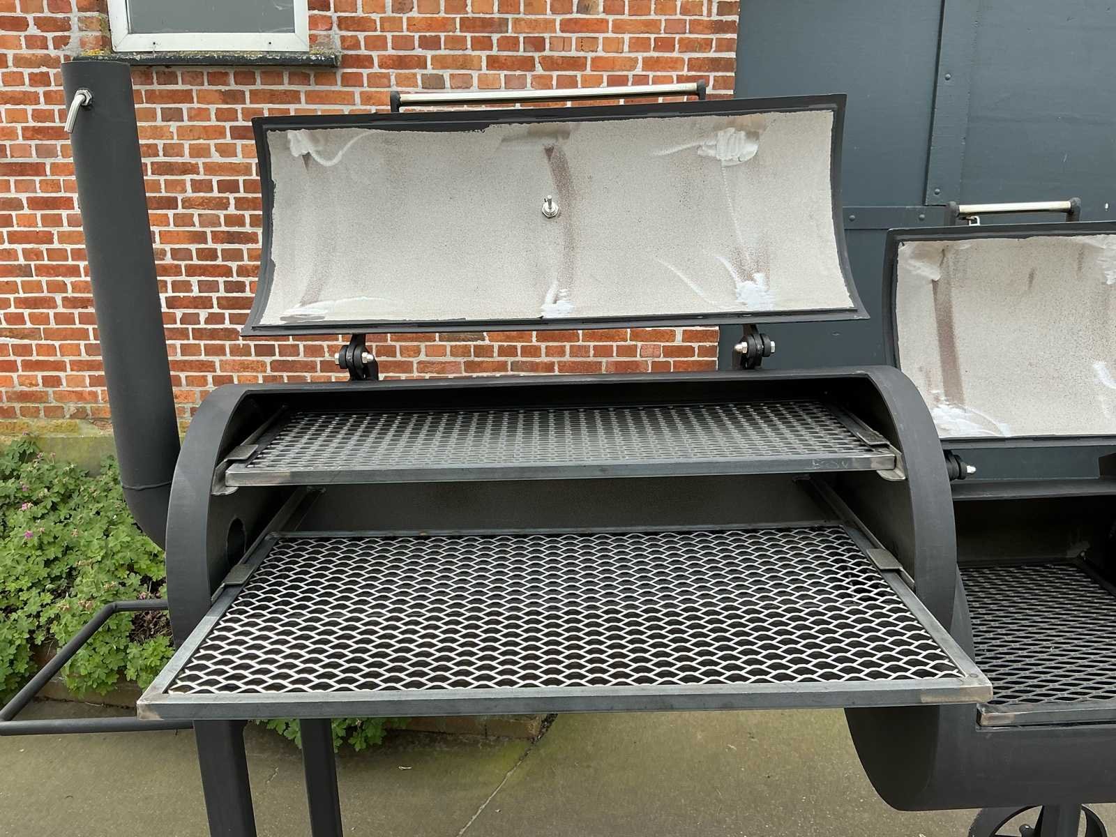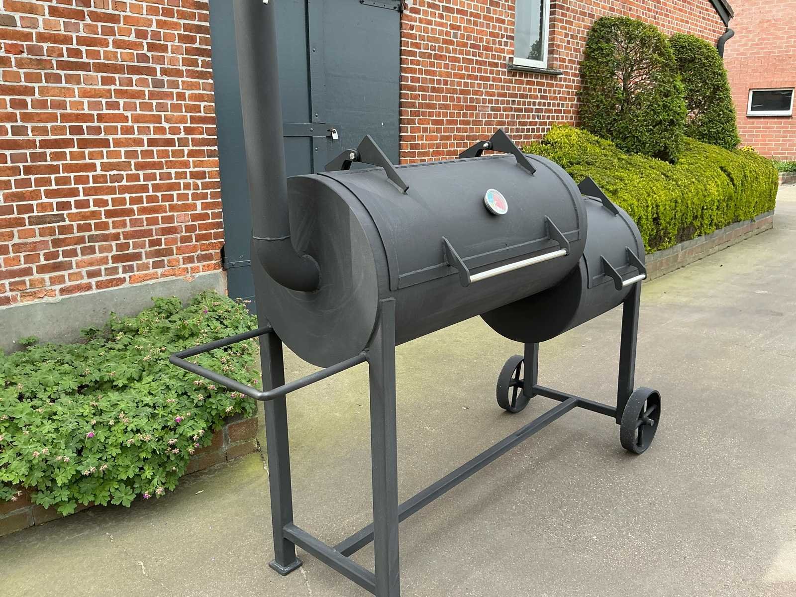 SOW medium type - BBQ/ Smoker - Nieuwstaat ( niet gebruikt) - Temperatuur meter Broilfire -Wanddikte 6mm - Dubbele grill Grote grill: 48,5/ 91cm Kleine grill: 33/91cm Vuurbox: 49/40cm ( directe grill extra) - opvang kolen bak aanwezig - Luchtcirculatie kleppen afregelbaar Volledig in inoxen handvaten , bouten/moeren , roestvrij ! No Merk: SOW Model: Type medium Type: Smoker Kleur: Mat zwart Lengte: 193cm Breedte: 50cm Hoogte: 172cm