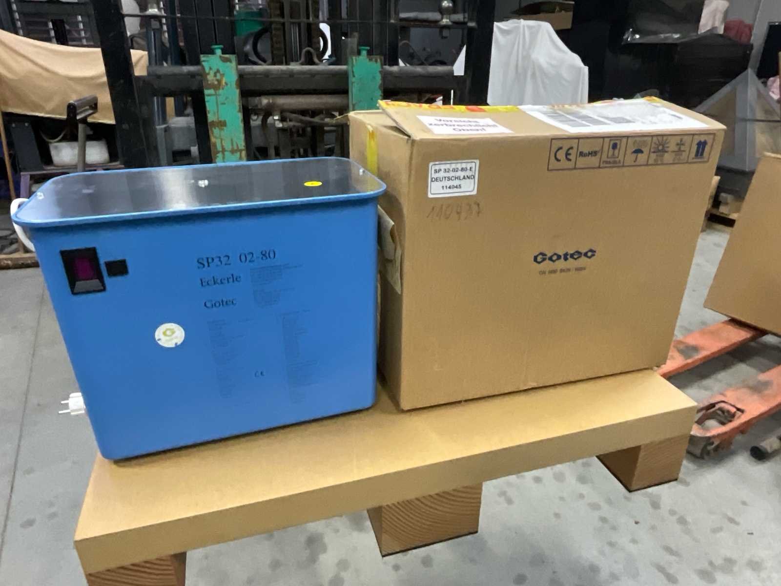 Eckerle Gotec SP32 02-80 Stoetoliezuigpomp Beschrijving: Eckerle Gotec zuigpomp model SP32 02-80, ideaal voor het overbrengen of leveren van huishoudelijke stookolie / stookolie (DIN 51603). Professioneel apparaat gemaakt in Duitsland en Zwitserland, bekend om zijn betrouwbaarheid en duurzaamheid. Technische kenmerken: Model: SP32 02-80 Merk: Eckerle / Gotec Spanning: 230 V / 50 Hz Vermogen: 85 W Maximale debietsnelheid: 0,85 l/min (≈ 51 l/u) Maximaal zuigkop: 7 m (20 l/h) Tankcapaciteit: 7,3 liter Voor stookolie / stookolie Ingebouwde niveau-indicator en alarmen CE-conform Status: Apparaat in uitstekende staat, visueel nieuw, wordt geleverd met de originele Gotec-verpakking. Wisselstroomkabel en stroomschakelaar aanwezig. Klaar om te gebruiken. No Merk: Gotec Type: SP32 02-80