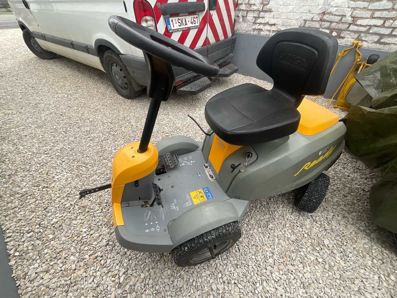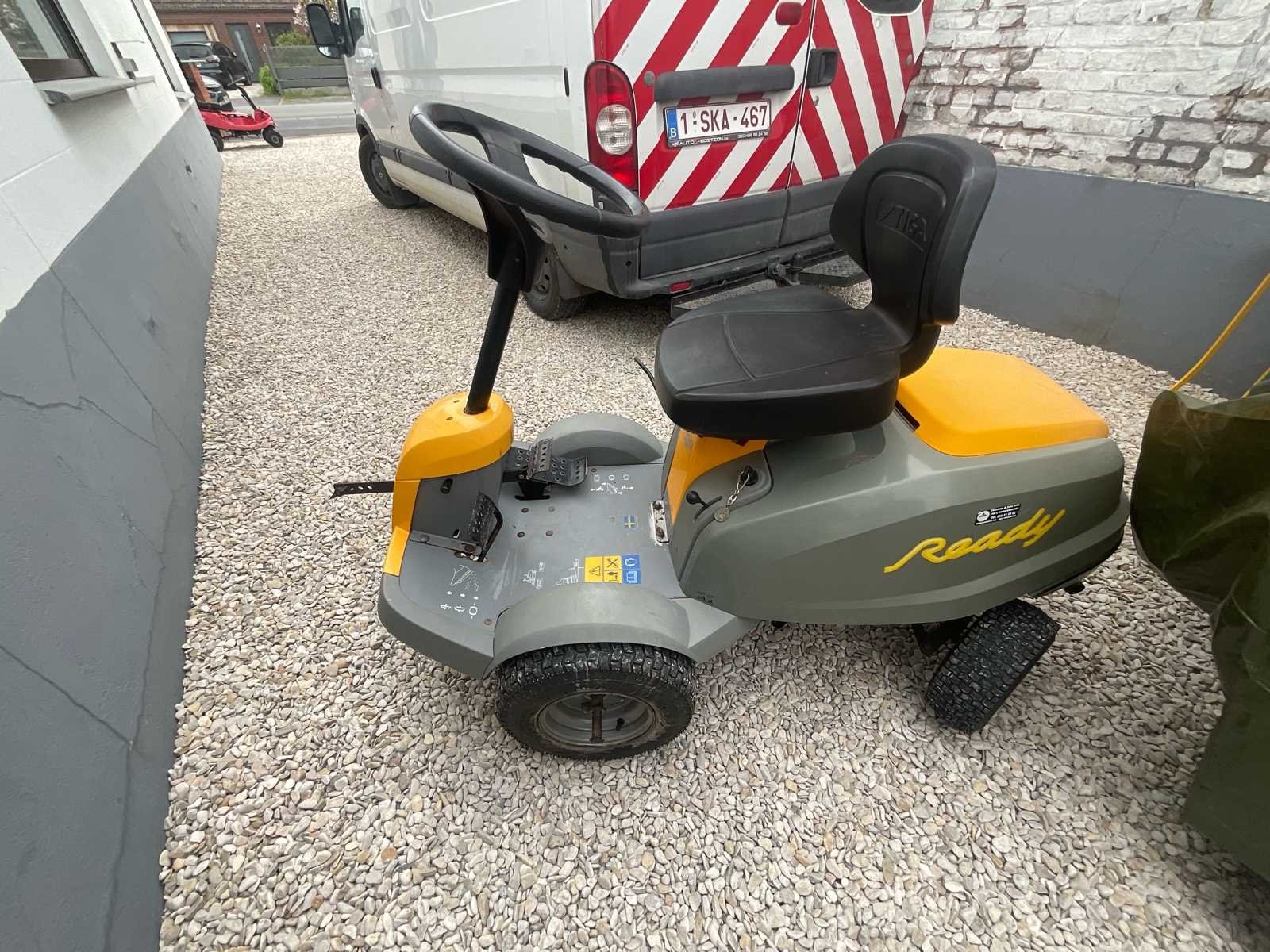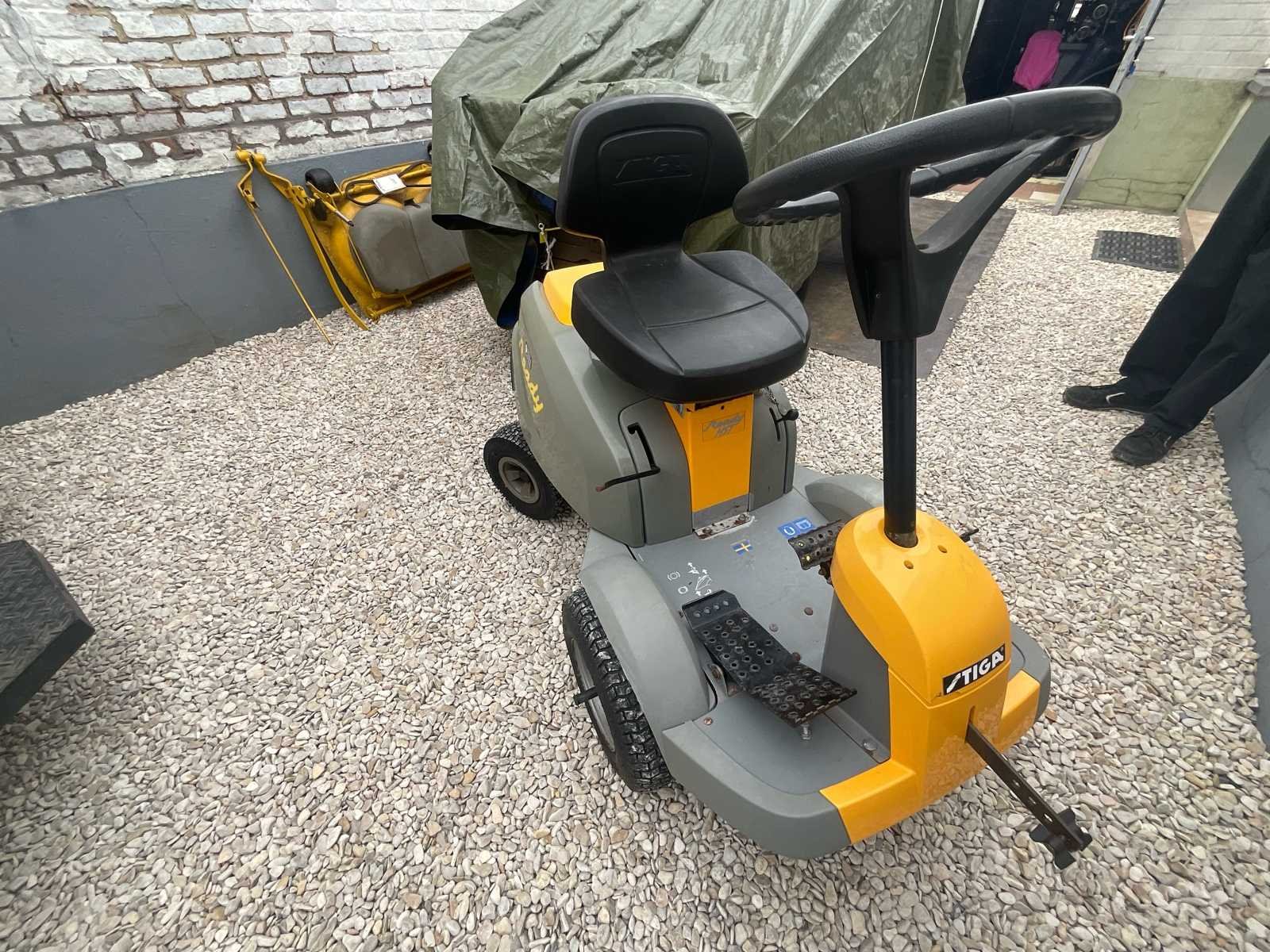STIGA Ready HST zitmaaier met voorste maaidek STIGA zitmaaier, Ready HST model, uitgerust met een 10 kW Briggs & Stratton motor. Een machine met hydrostatische transmissie en gearticuleerde besturing die uitstekende wendbaarheid garandeert. Uitgerust met een voorste snijdek met twee bladen (werkbreedte ca. 85 cm). Dienblad met nieuwe messen. Demonteerde snijband (huidig). Voorste montagesysteem inbegrepen. Gebruikte staat met tekenen van slijtage en oppervlaktecorrosie. Snijdek in de juiste staat. Batterij aanwezig. Aanvullende informatie: * Merk: STIGA * Model: Ready HST * Jaar: 2005 * Serienummer: 0511220204 * Locomotief: Briggs & Stratton * Vermogen: 10 kW * Transmissie: hydrostatisch * Snijbreedte: ca. 85 cm * Sleutel: Heden Notities: Geteste en functionele machine No Merk: STIGA Type: Ready HST (hydrostatique) Bouwjaar: 2005 Serienummer: 05112202 Werkbreedte: 850mm Zitmaaier: true Benzinemotor: true Brandstof: Benzine Motorvermogen (kW): 10kW