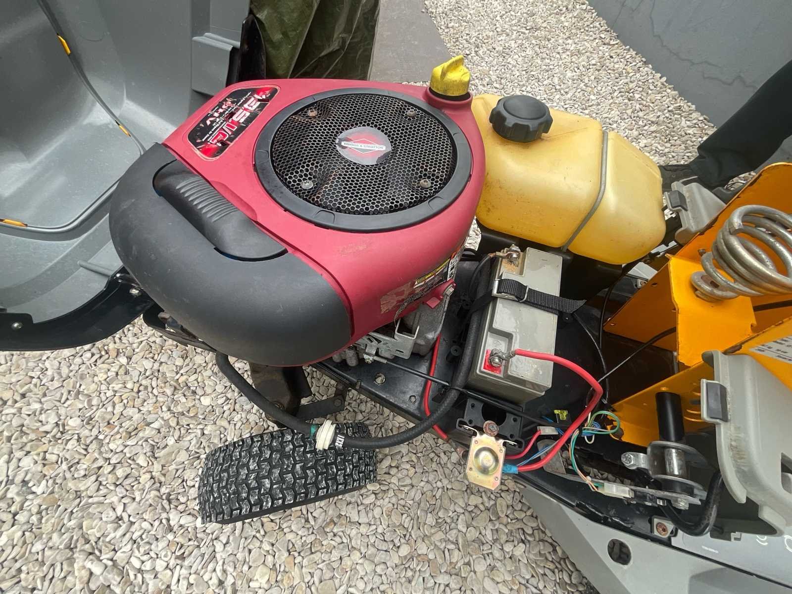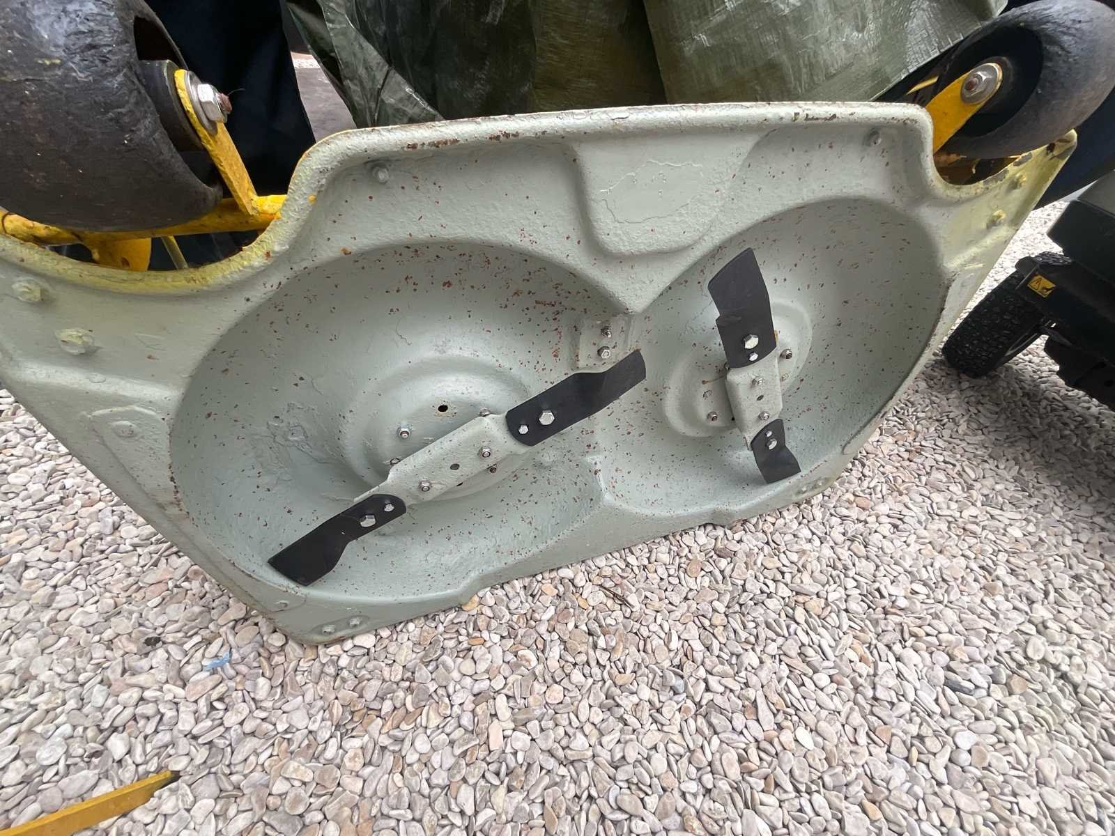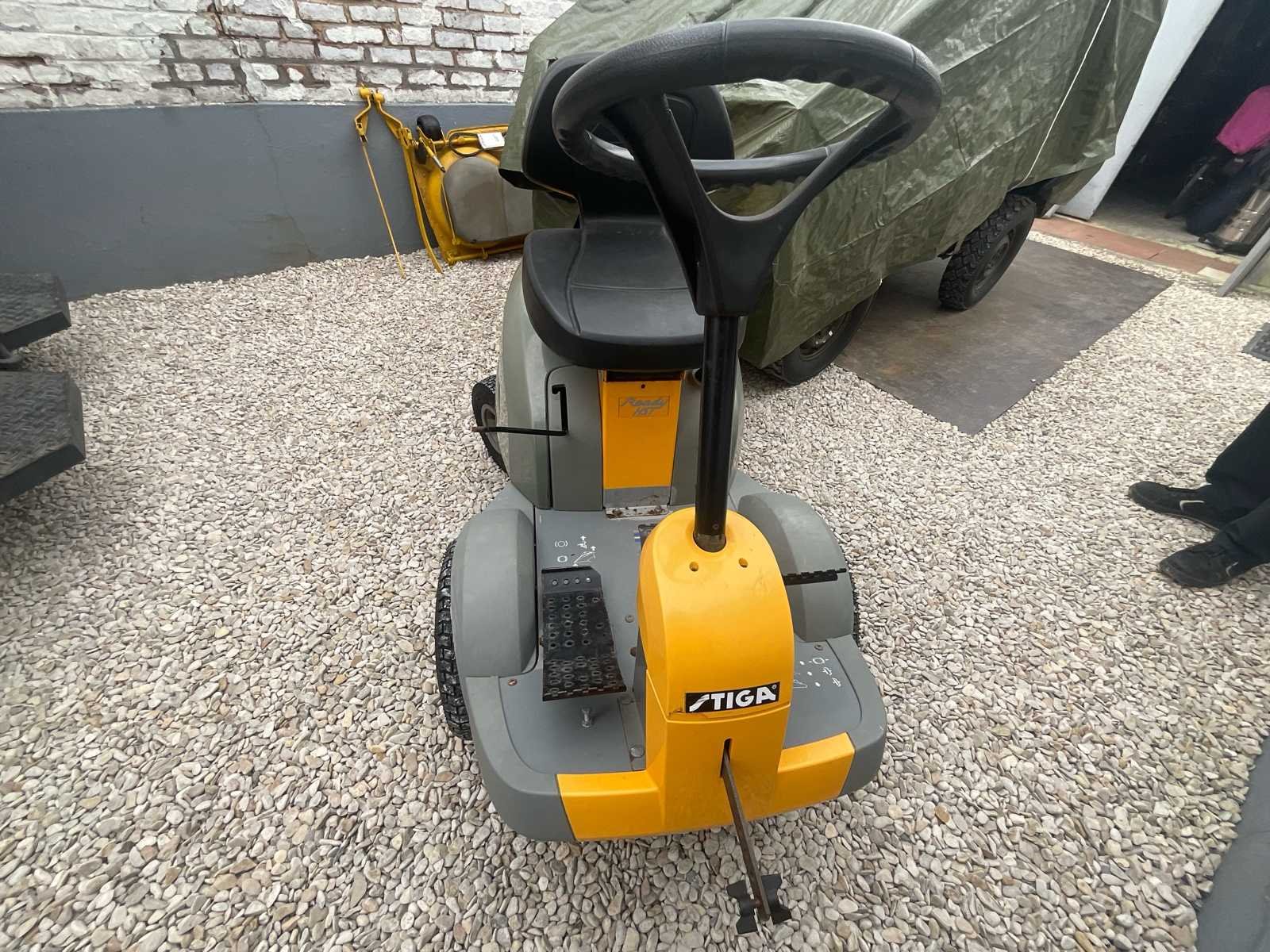 STIGA Ready HST zitmaaier met voorste maaidek STIGA zitmaaier, Ready HST model, uitgerust met een 10 kW Briggs & Stratton motor. Een machine met hydrostatische transmissie en gearticuleerde besturing die uitstekende wendbaarheid garandeert. Uitgerust met een voorste snijdek met twee bladen (werkbreedte ca. 85 cm). Dienblad met nieuwe messen. Demonteerde snijband (huidig). Voorste montagesysteem inbegrepen. Gebruikte staat met tekenen van slijtage en oppervlaktecorrosie. Snijdek in de juiste staat. Batterij aanwezig. Aanvullende informatie: * Merk: STIGA * Model: Ready HST * Jaar: 2005 * Serienummer: 0511220204 * Locomotief: Briggs & Stratton * Vermogen: 10 kW * Transmissie: hydrostatisch * Snijbreedte: ca. 85 cm * Sleutel: Heden Notities: Geteste en functionele machine No Merk: STIGA Type: Ready HST (hydrostatique) Bouwjaar: 2005 Serienummer: 05112202 Werkbreedte: 850mm Zitmaaier: true Benzinemotor: true Brandstof: Benzine Motorvermogen (kW): 10kW