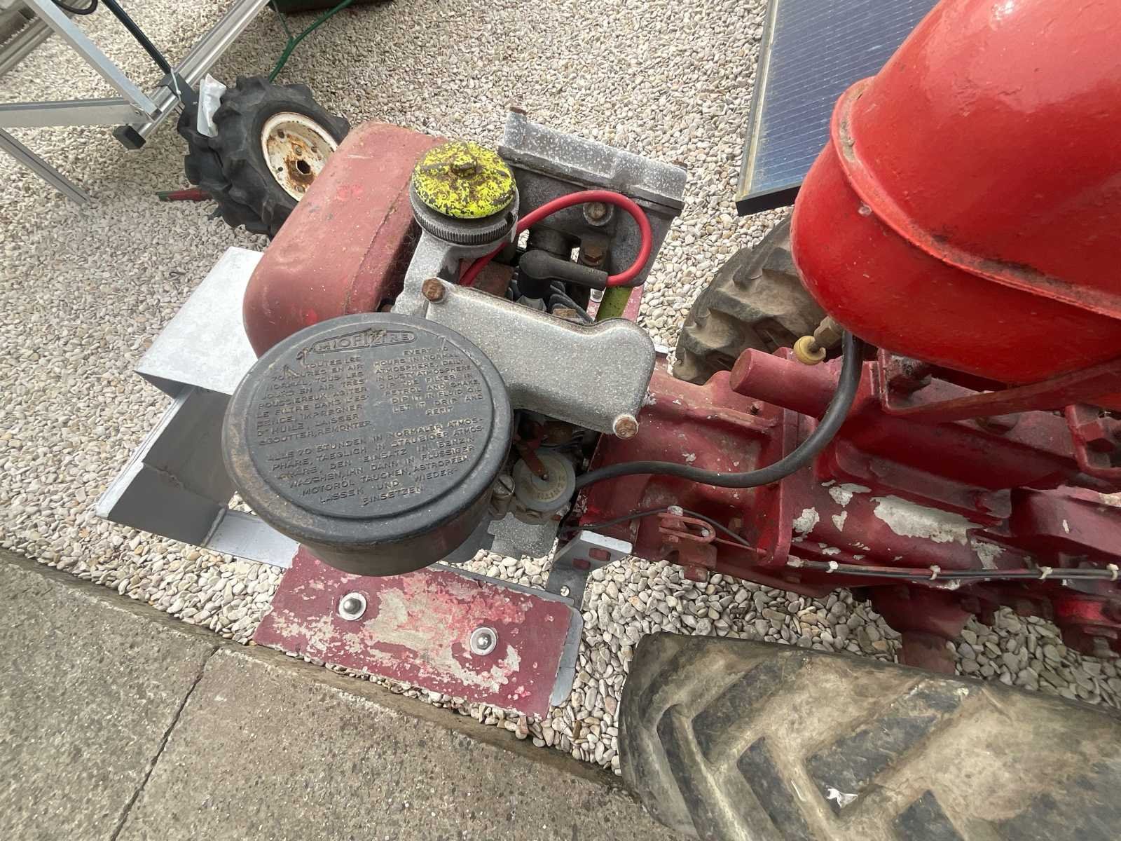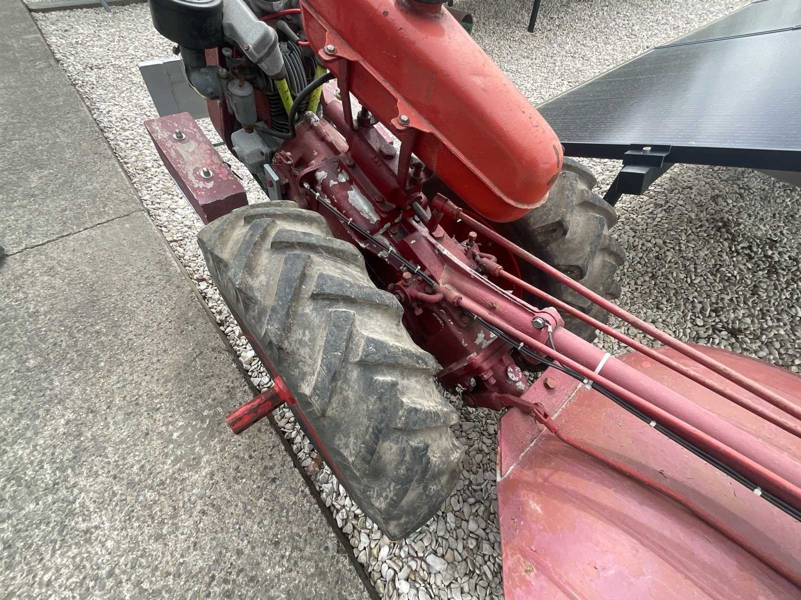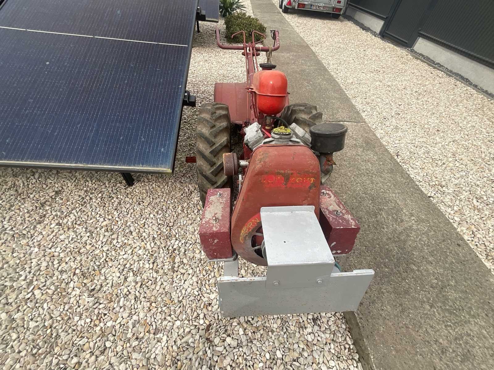 Oude tweewielige tractor uitgerust met een Bernard-benzinemotor en een achterste roterende roer. Status: Motor niet getest, start niet gecontroleerd. Onbekende bedrijfsstatus. Verkocht zoals het is. Machine met tekenen van slijtage, oppervlaktecorrosie en vervaagde verf. Complete set met achterste cutter. Banden in gebruikte staat. Kenmerken: Motor: Bernard benzine Mechanische transmissie Achterste roterende snijder Verstelbaar stuur Agrarische wielen Aanvullende informatie: Merkmerk rototiller niet geïdentificeerd. Oude landbouwmachines die een volledige revisie nodig hadden voordat ze weer in gebruik werden genomen. Aanwezigheid van een metalen aanpassing/beugel aan de voorkant. No Merk: Ancien motoculteur Type: Moteur Bernard