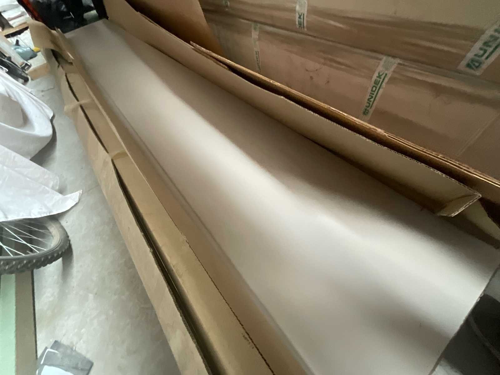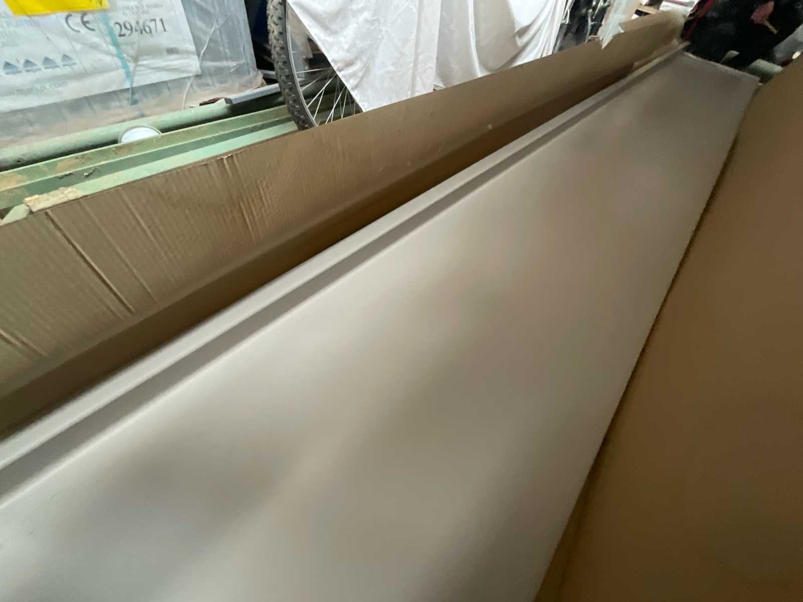 Postformed werkblad – 400 x 60 x 4 cm – Laminaat – Nieuw Postformed laminaat werkblad, lengte 4 meter. Afmetingen: Lengte: 400 cm Breedte: 60 cm Dikte: 4 cm Materiaal: laminaat Afwerking: glad oppervlak, lichte kleur (zie foto's) Conditie: Nieuw, ongebruikt, nog verpakt in de originele verpakking (iets geopend voor controle). Er wordt niet geboord of gezaagd. Geschikt voor keuken, werkplaats, werkbank of professioneel meubilair. No Product type: Postformed werkblad Lengte: 400cm Breedte: 60cm Hoogte: 4cm Materiaal: Laminaat