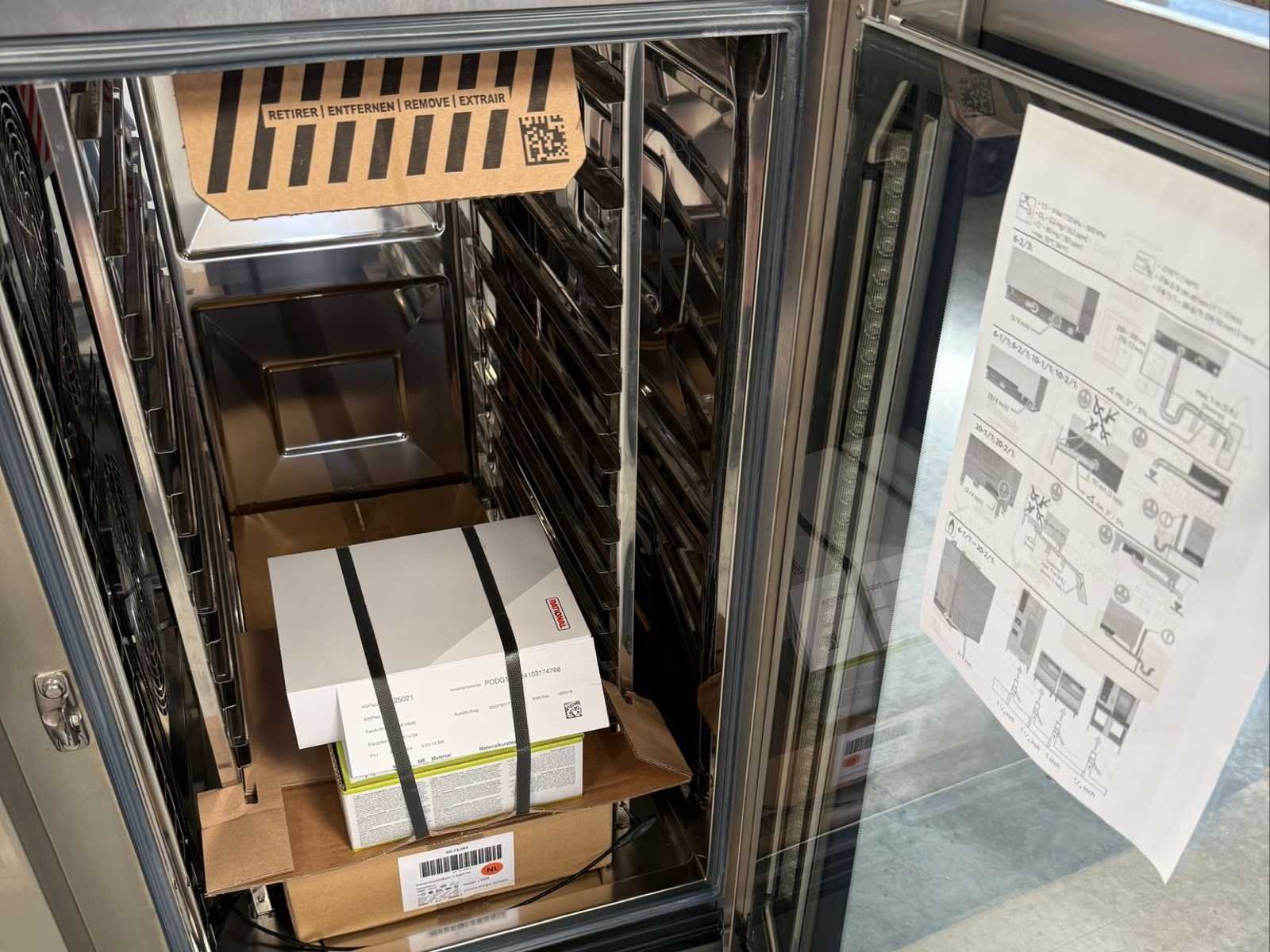 RATIONAL professionele combioven, iCombi Pro LM100DG model, in nieuwe staat (fabrieksverzegeld), nooit gebruikt. Hoogwaardige apparatuur voor professionele keukens (hospitality, aannemers, catering), die stoom, koeldrank en gemengde kookfuncties combineren voor grote veelzijdigheid. 📋 Technische kenmerken Merk: RATIONEEL Model: iCombi Pro LM100DG Type: professionele combioven (combi-stoommachine) Capaciteit: ca. 10 GN 1/1 niveaus Voeding: 230V – 50/60 Hz Elektrisch vermogen: ca. 0,9 kW Energie: aardgas (G25.3) Thermisch vermogen: ca. 22 kW Waterdruk: 150 – 600 kPa Ingressbescherming: IPX5 Jaar: 2024 Productie: Duitsland ⚙️ Kenmerken Slim touchscreen met intuïtieve interface Automatisch kooksysteem (iCookingSuite) Intelligent vochtigheids- en temperatuurbeheer Automatische programma's voor vlees, vis, gebak, enzovoort. Intelligente automatische reiniging (iCareSystem) WiFi-connectiviteit (ConnectedCooking) Gelijkmatige, herhaalbare kookkunst zonder constante monitoring 📦 Status en inhoud Nieuwe machine – nooit gebruikt Aanwezigheid van fabrieksverzegeld Accessoires en documentatie inbegrepen (zie foto's) Originele verpakking gedeeltelijk aanwezig No Merk: RATIONAL Bouwjaar: 2024 Type: iCombi Pro LM100DG Materiaal: Roestvrij staal Aantal niveau's: 10