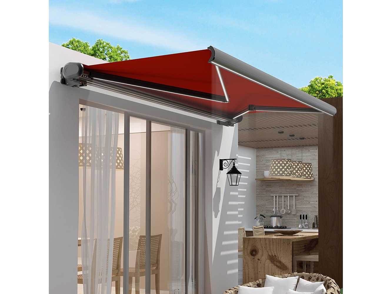 Een zonnescherm voor uw terras en andere plaatsen waar u overdag verkoelende schaduw wilt en ‘s avonds een beschutting tegen de vallende dauw. Dankzij de geïntegreerde motor is de zonwering eenvoudig te bedienen met een afstandsbediening, waardoor je zonder inspanning de gewenste schaduw creëert. Dit maakt het systeem niet alleen praktisch, maar ook ideaal voor dagelijks gebruik. Daarnaast zijn de armen voorzien van geïntegreerde LED-verlichting, wat zorgt voor een aangename sfeer in de avonduren. Hierdoor kun je ook na zonsondergang comfortabel buiten blijven zitten, met zowel beschutting als sfeervol licht. De combinatie van motorisatie en LED-verlichting maakt deze zonwering een moderne en luxe oplossing voor elk terras of balkon. Specificaties: - Gemotoriseerde zonneluifel - LED - verlichting - Stevige, gelakte aluminium constructie met dubbele stalen kabelgeleiding. - Geclassificeerd tot windsnelheid 5 (windklasse 2) - Kwalitatief bordeaux luifeldoek: Polyester + PU Coating (UV50+). - De complete set bestaat uit schroeven, muurmontage profiel, betonankers, geïntegreerde waterpas en handslinger. - Afmeting (Breedte x uitval): 400 x 350cm No Merk: SolidCube Product type: Zonneluifel Kleur: Antraciet Lengte: 400cm Breedte: 350cm Materiaal: Aluminium