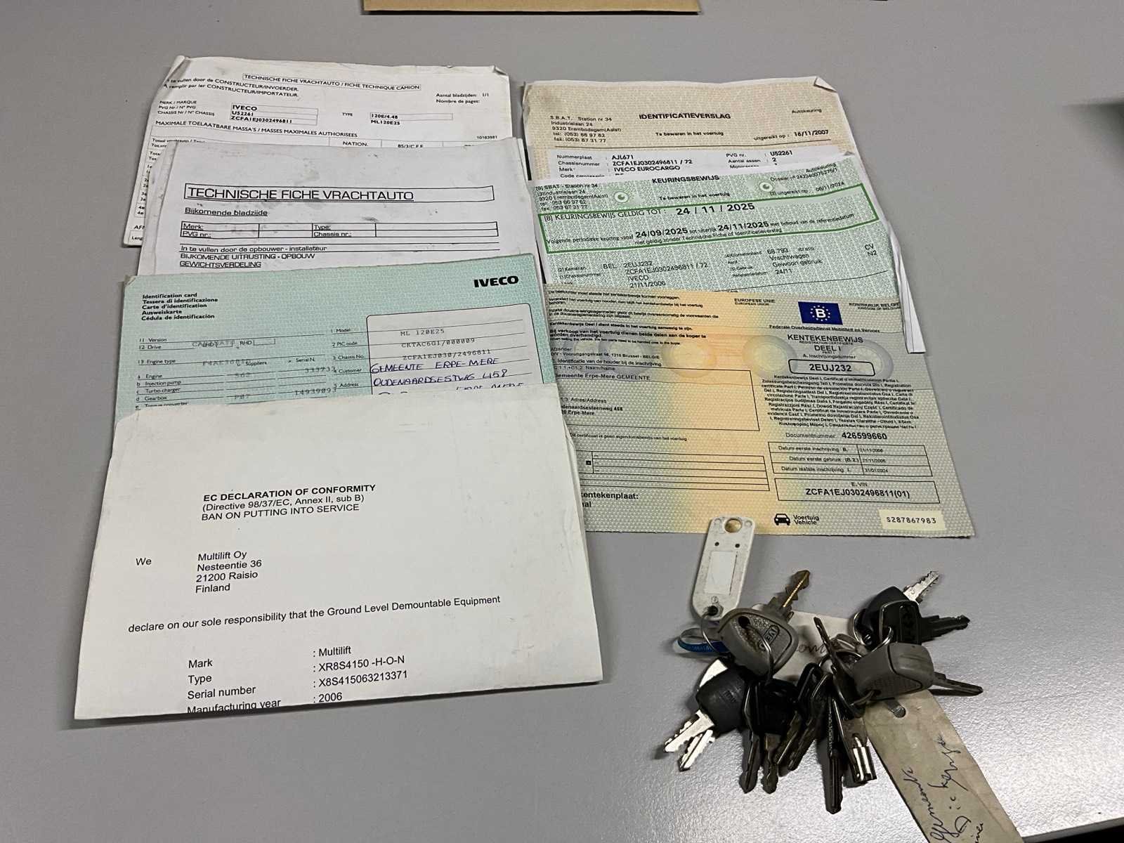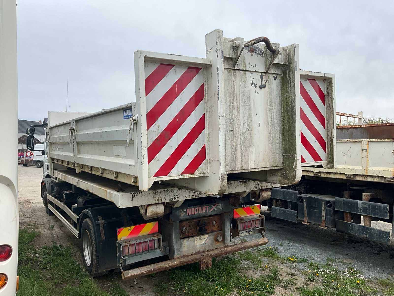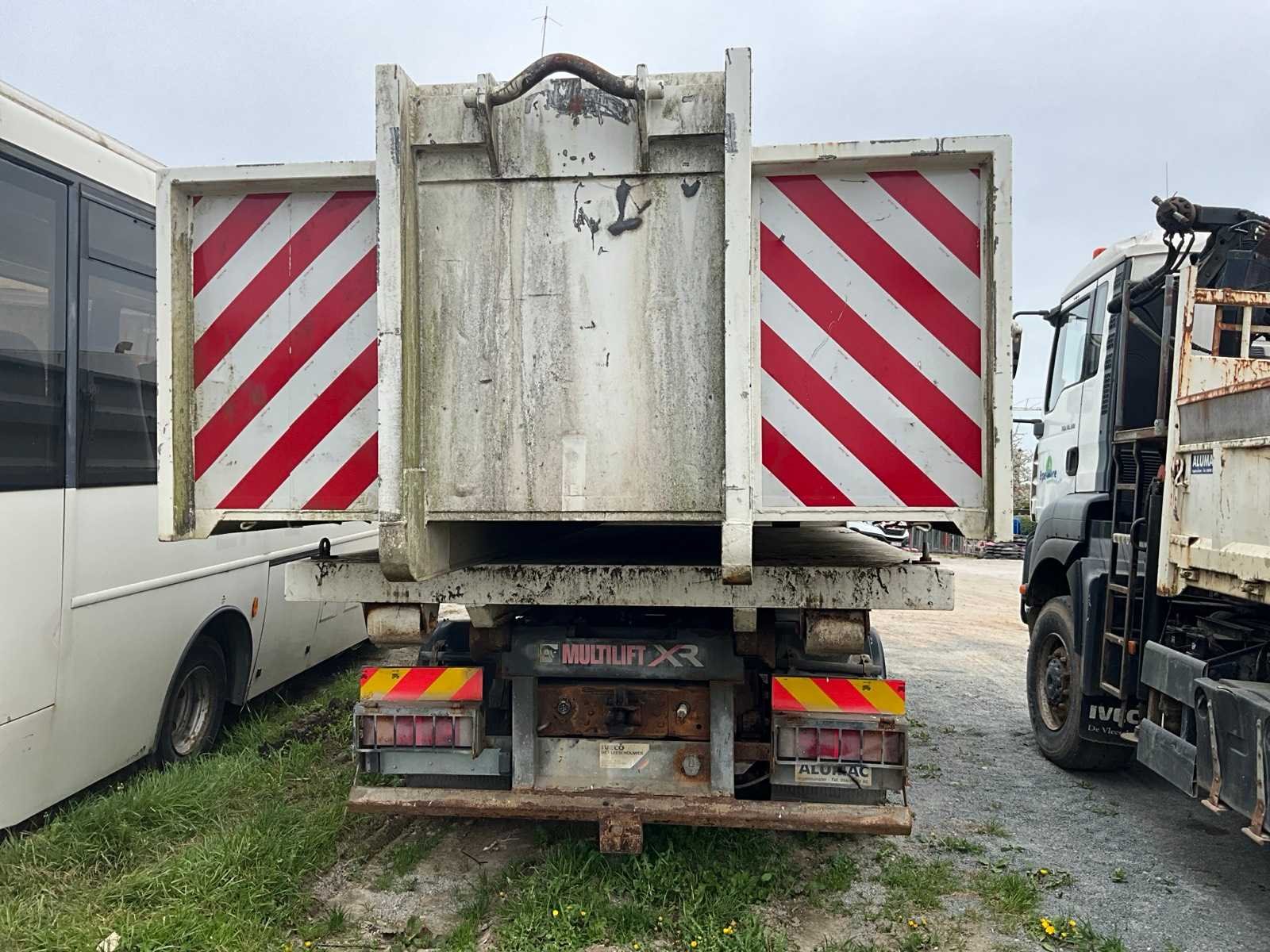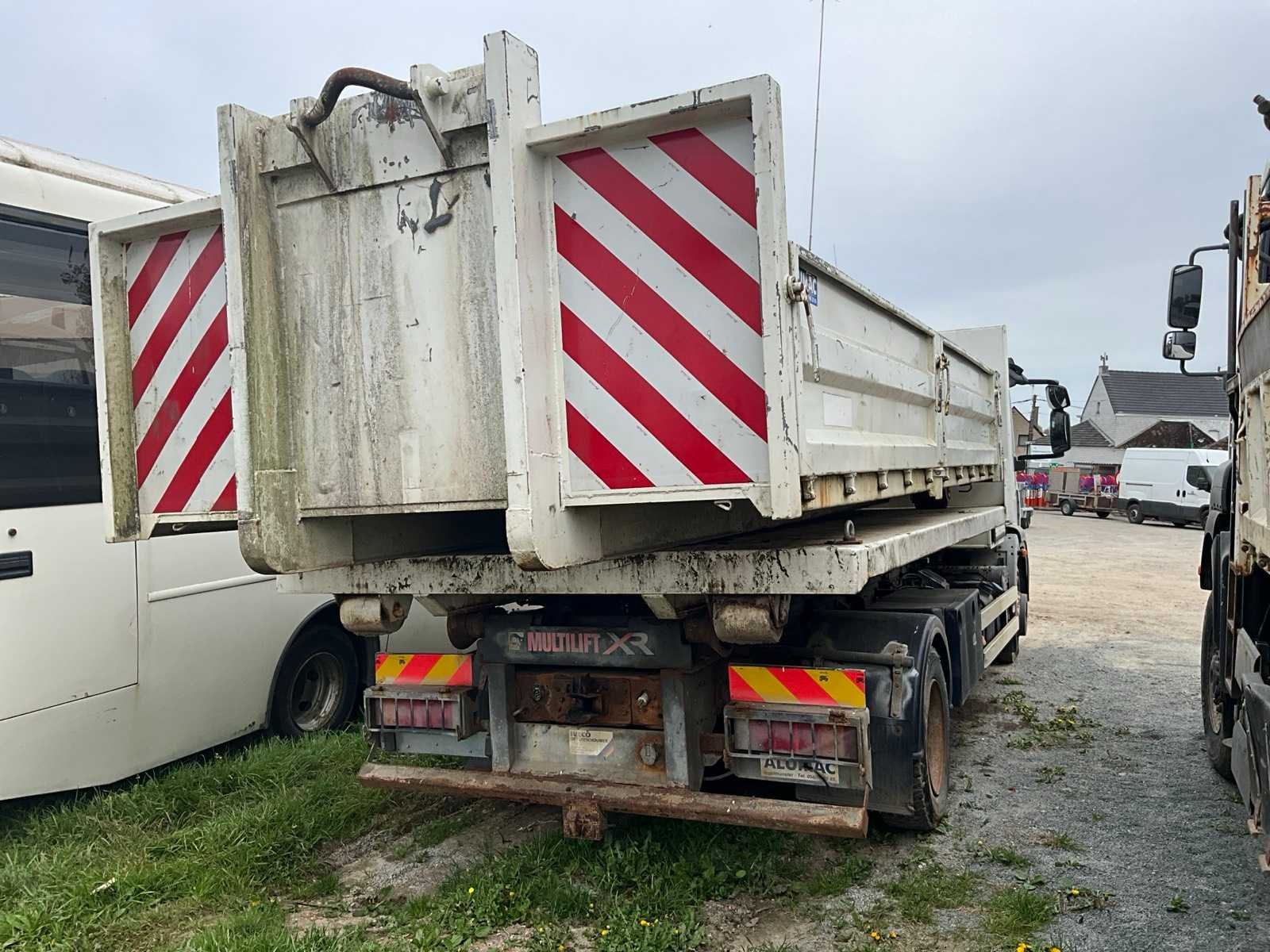 Voorzien van Alumac opbouw en Multimift QR85 containerhaak 8 ton ‘2006, 1x platte container +1x afvalcontainer met zij en achterdeuren, materiaalkast achter bestuurderscabine, Belgische boorddocumenten compleet Nee Merk: Iveco Type: Eurocargo Bouwjaar: 2006 Chassisnummer VIN: ZCFA1EJ0302496811 Cilinderinhoud: 5880cc Kilometerstand bij opname: 70000km Datum eerste toelating: 21-11-2006 Type transmissie: Handmatig Aantal assen: 2 Asconfiguratie: 2x4 Fuel Type: Diesel Laadvermogen: 26000kg Aantal sleutels: 2 Emissieklasse: Euro 5 Totale afmeting L: 7500mm Totale afmeting Breedte: 2500mm Totale afmeting Hoogte: 2650mm Afgelezen kilometerstand: 70000km Nationaliteit documenten: Belgische Aantal zitplaatsen: 2 Handgeschakelde versnellingsbak: true Diesel: true